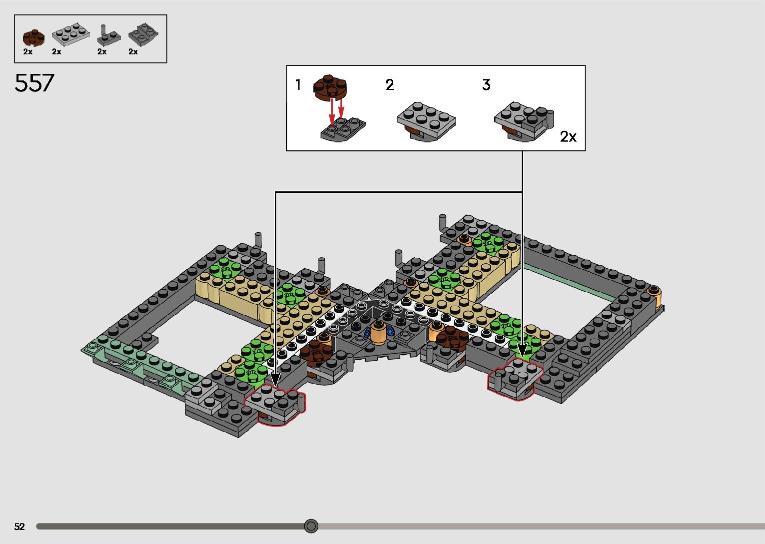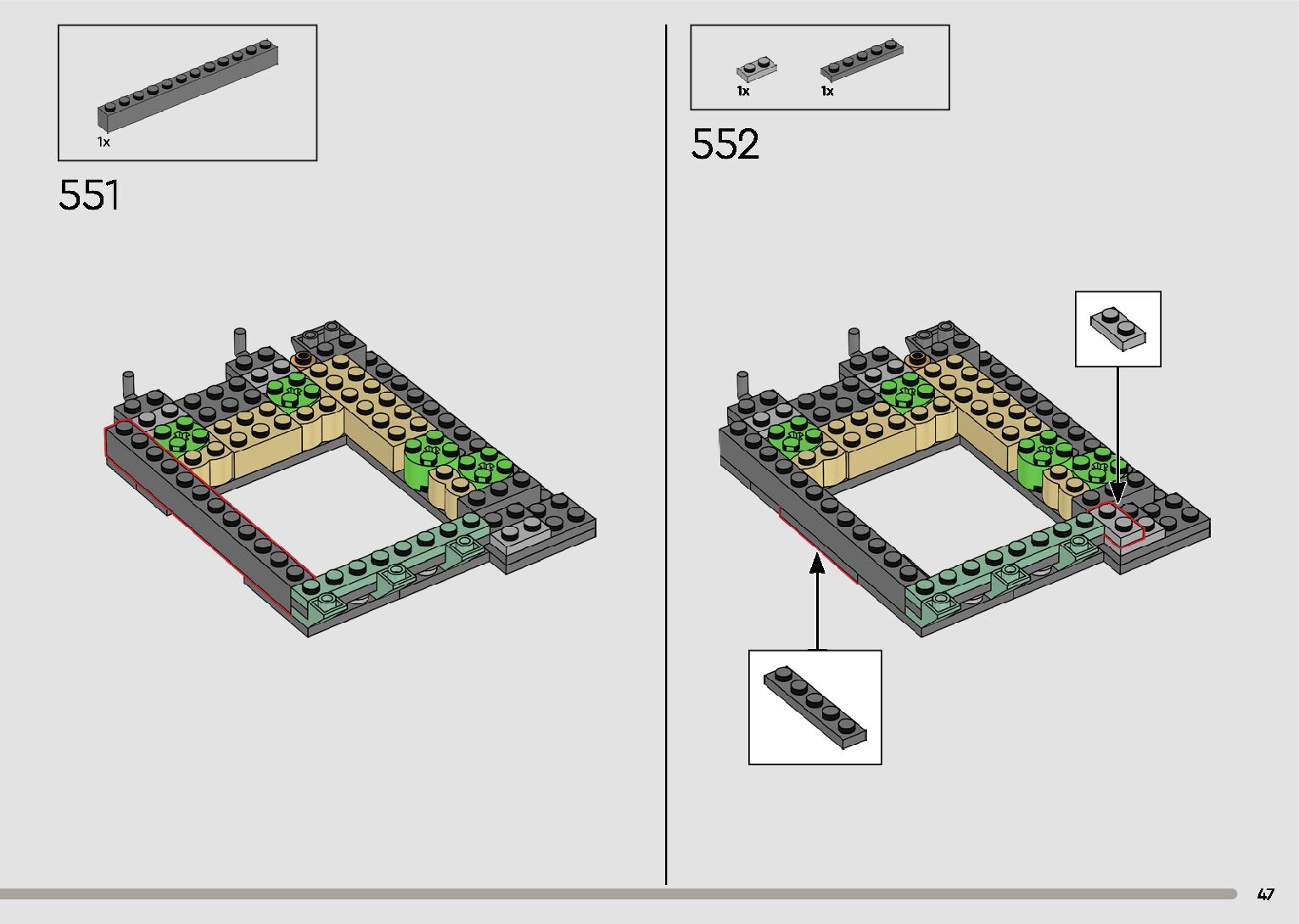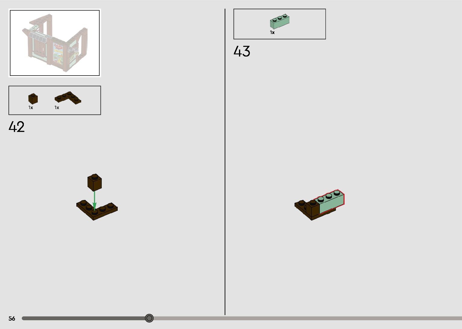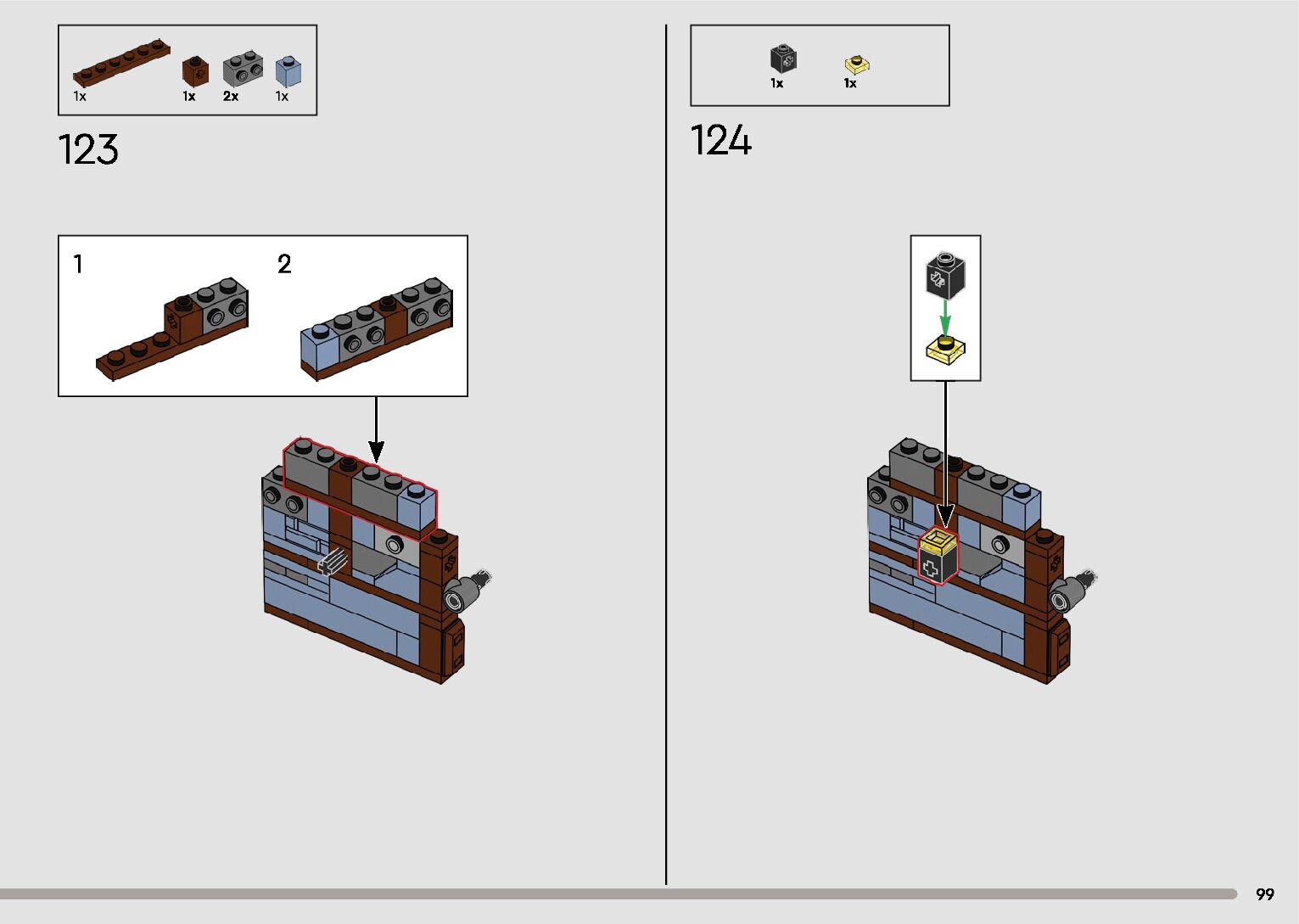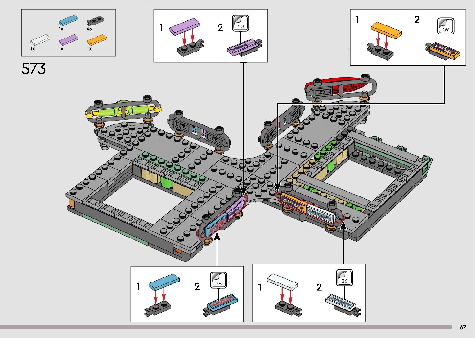 The assembly guide is prepared in a very understandable way for children and adult LEGO enthusiasts. A total of 596 picture galleries are shown, explaining the step-by-step construction stages for 2 different structures.