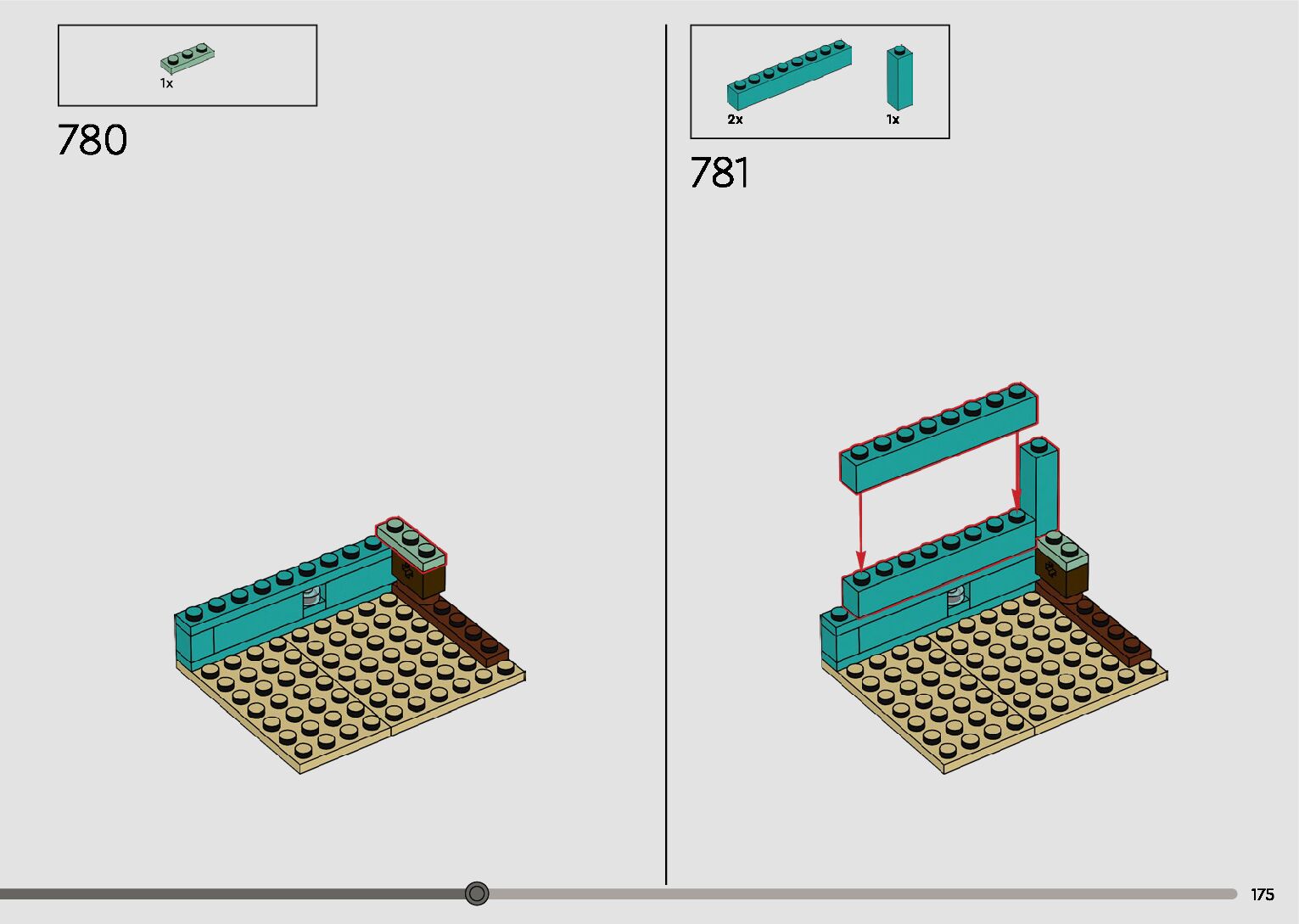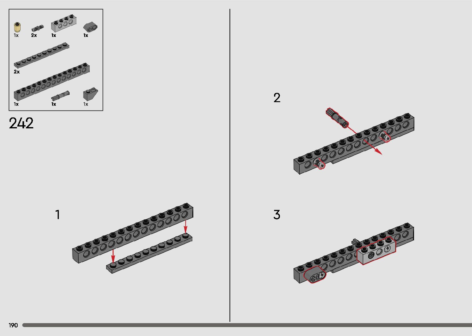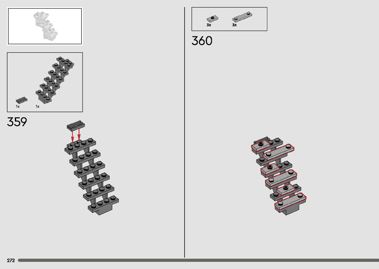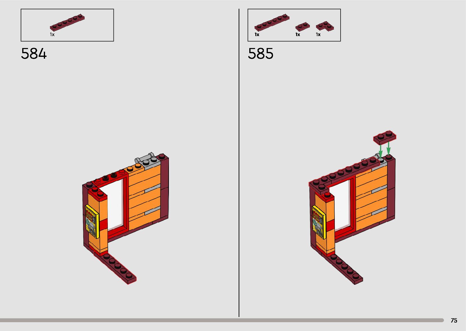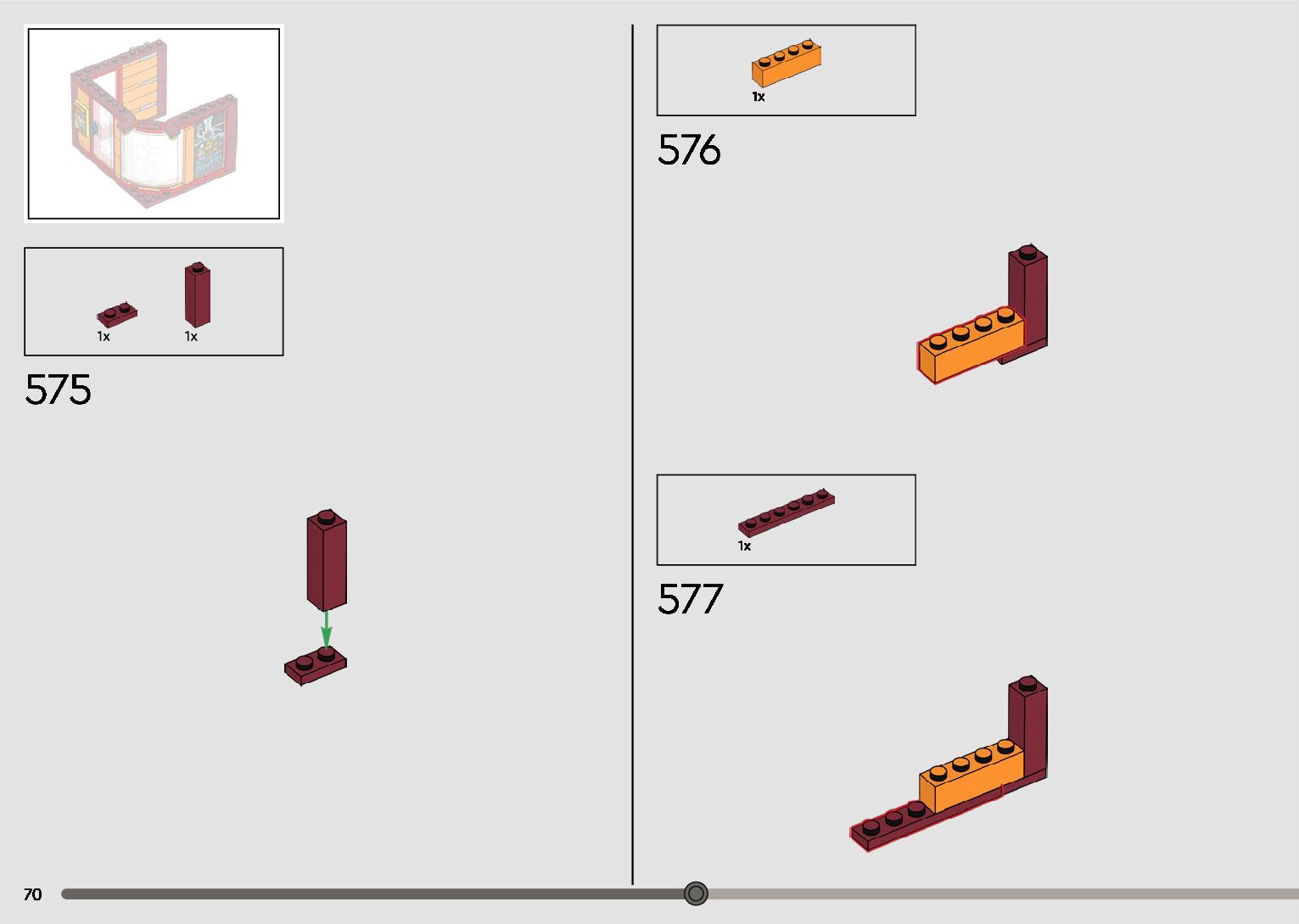 The assembly guide is prepared in a very understandable way for children and adult LEGO enthusiasts. A total of 596 picture galleries are shown, explaining the step-by-step construction stages for 2 different structures.