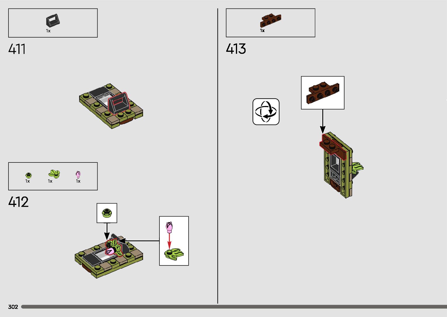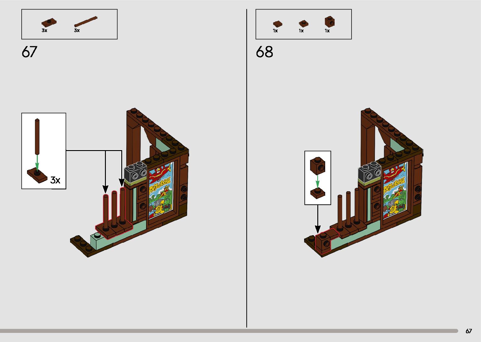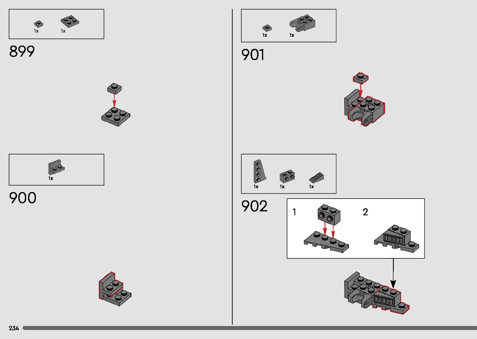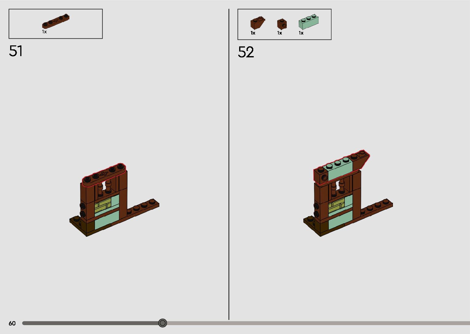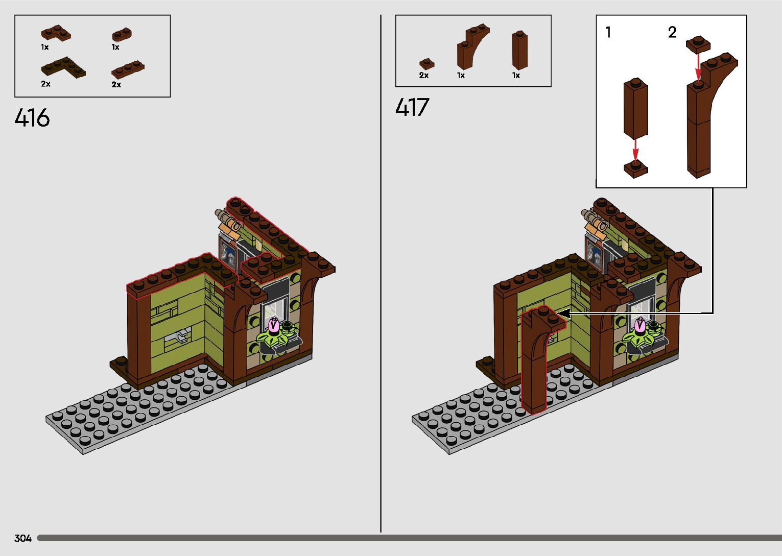 The assembly guide is prepared in a very understandable way for children and adult LEGO enthusiasts. A total of 596 picture galleries are shown, explaining the step-by-step construction stages for 2 different structures.