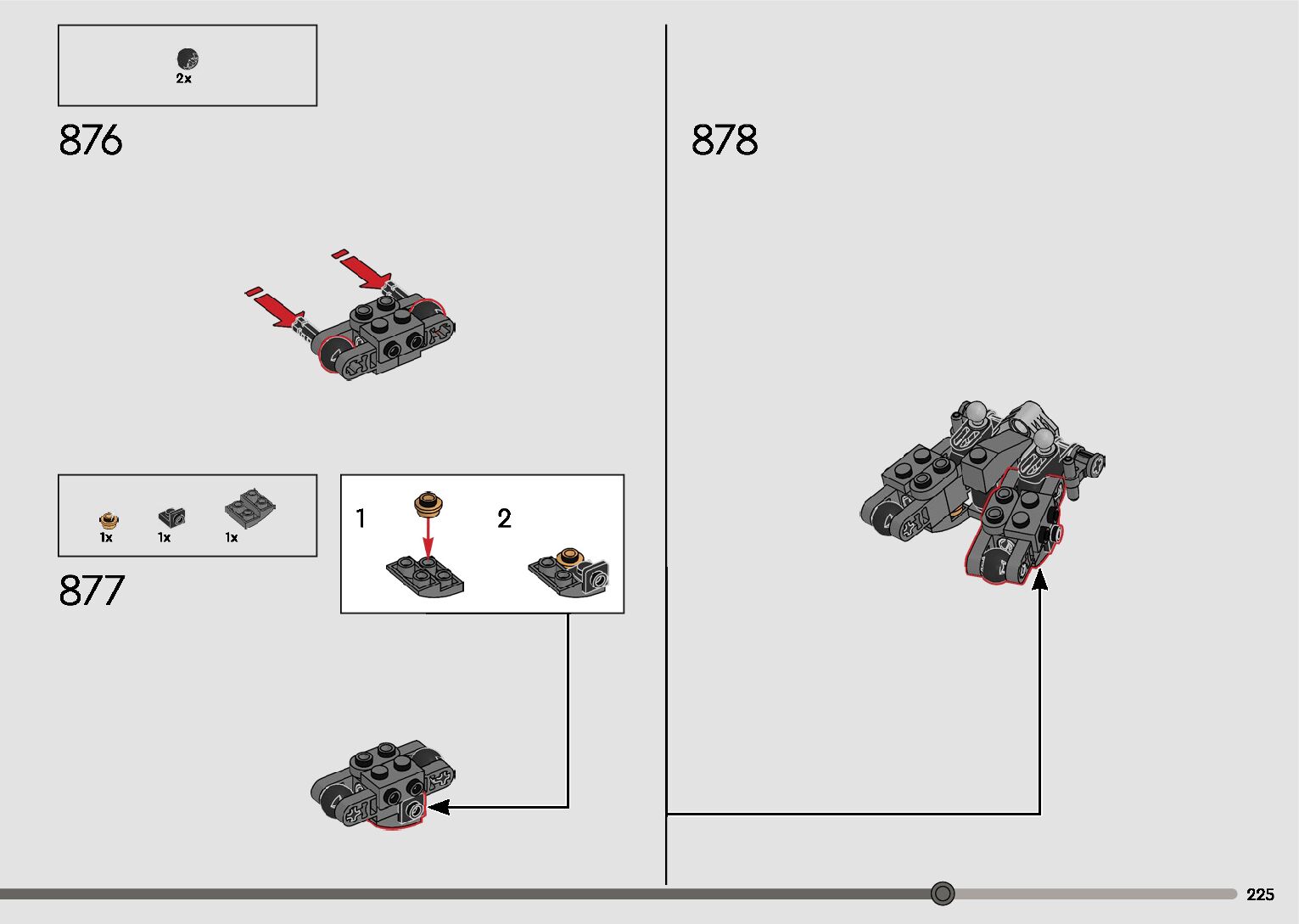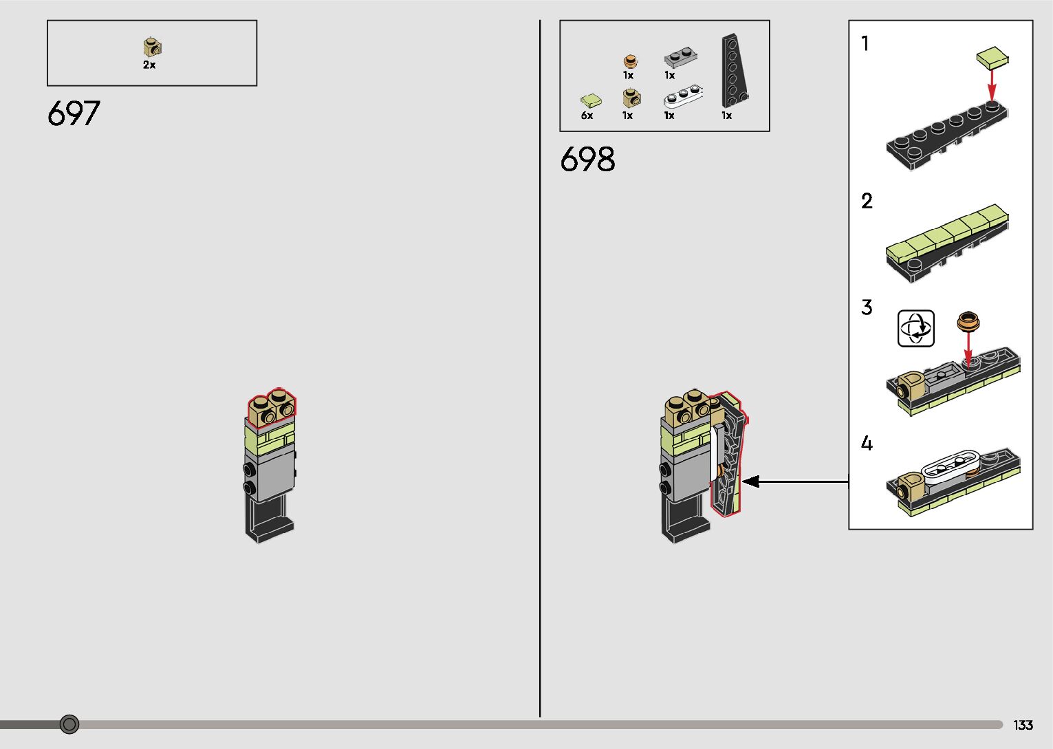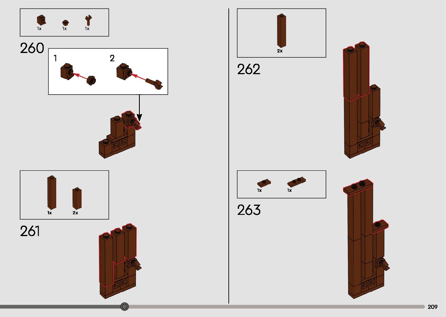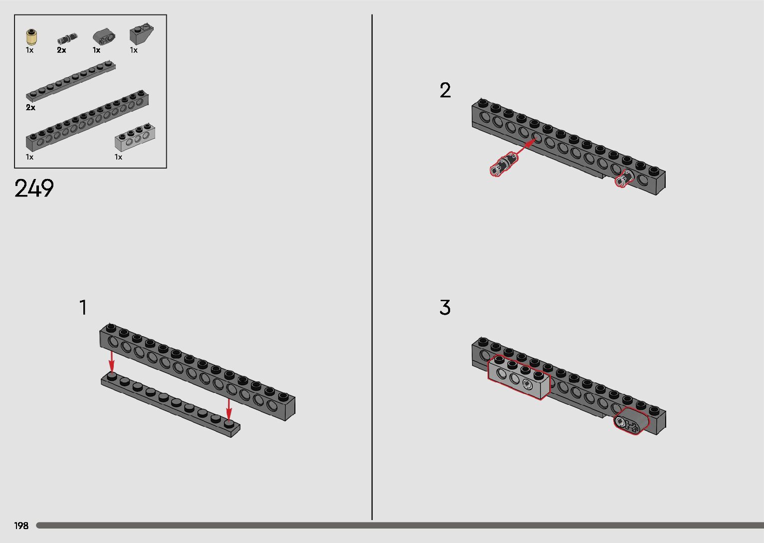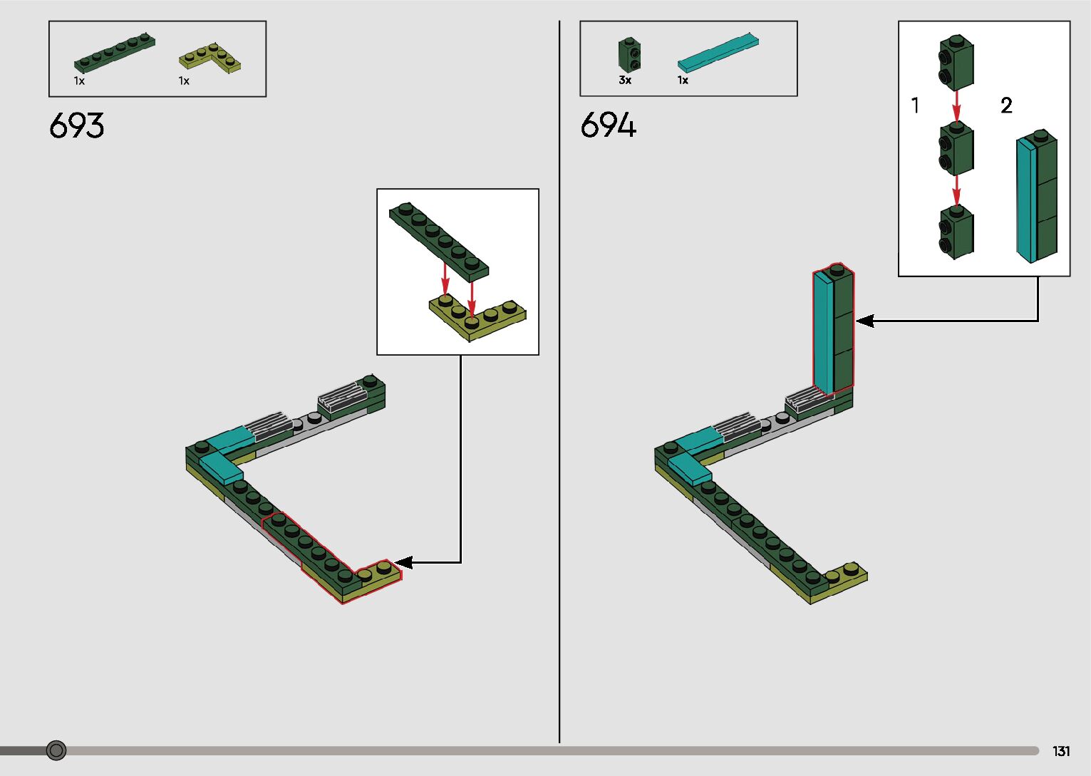 The assembly guide is prepared in a very understandable way for children and adult LEGO enthusiasts. A total of 596 picture galleries are shown, explaining the step-by-step construction stages for 2 different structures.