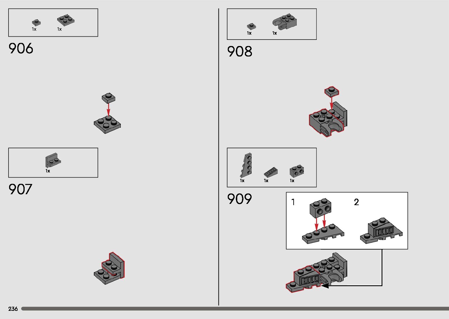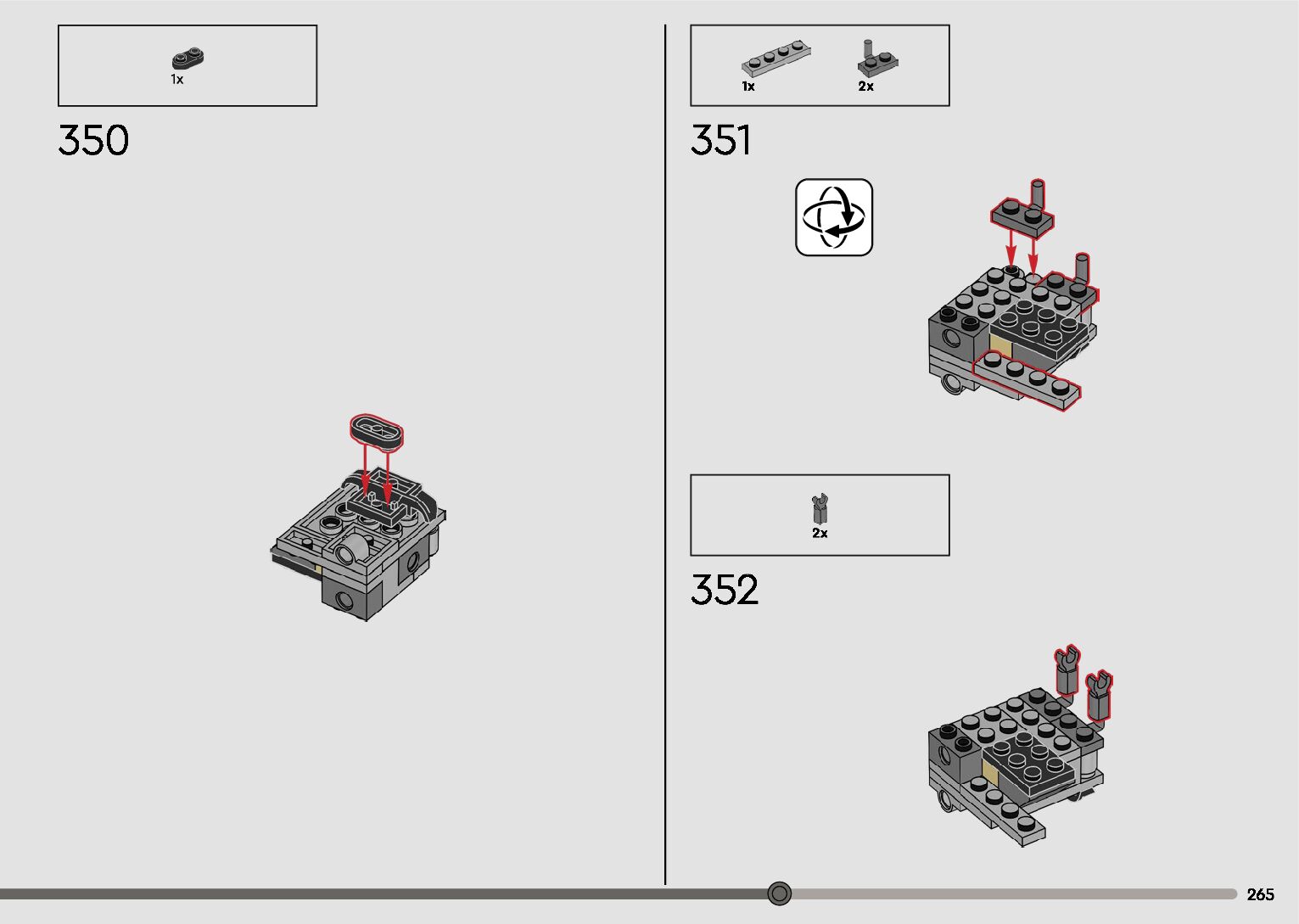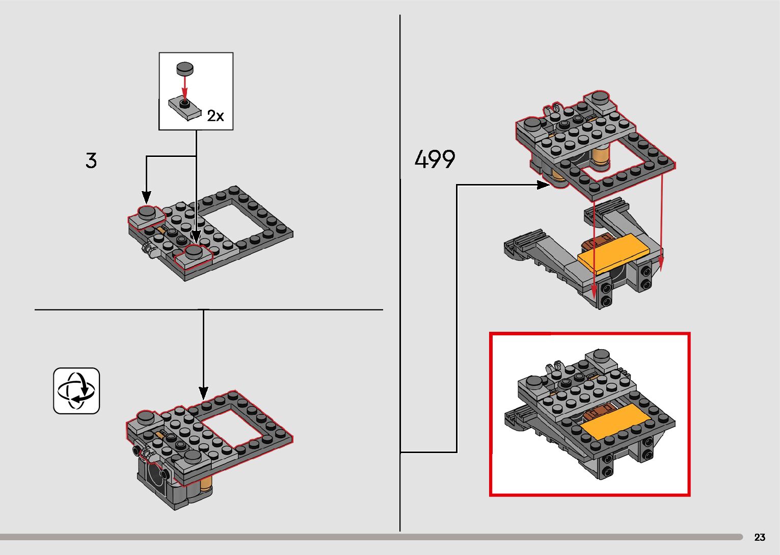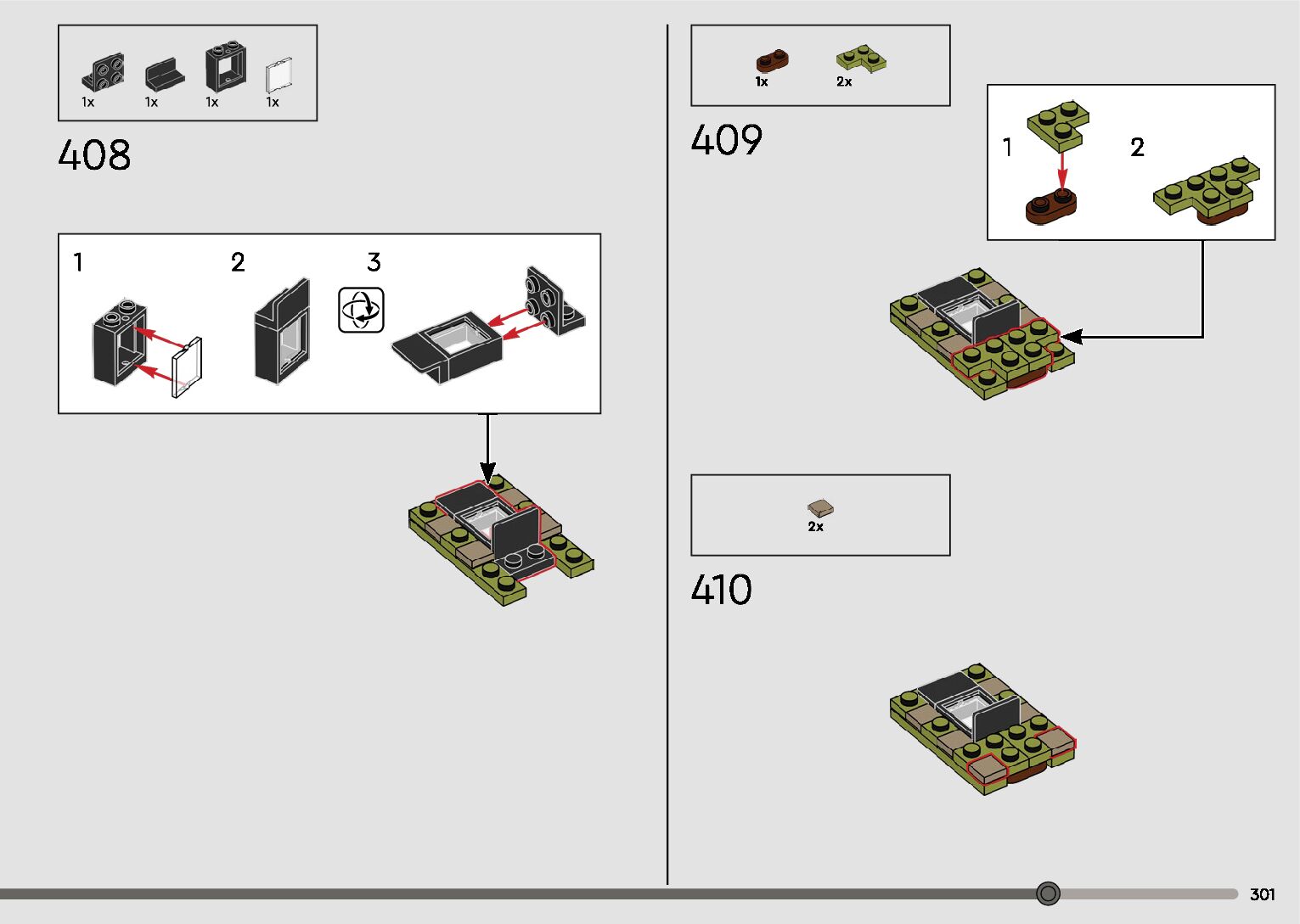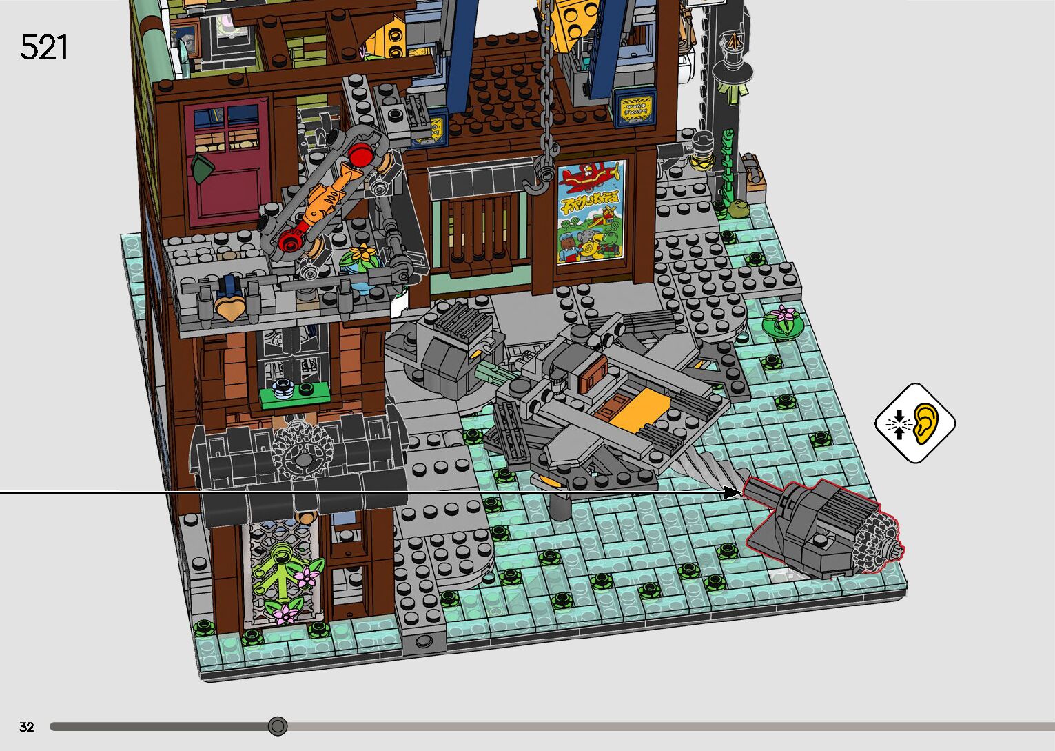 The assembly guide is prepared in a very understandable way for children and adult LEGO enthusiasts. A total of 596 picture galleries are shown, explaining the step-by-step construction stages for 2 different structures.