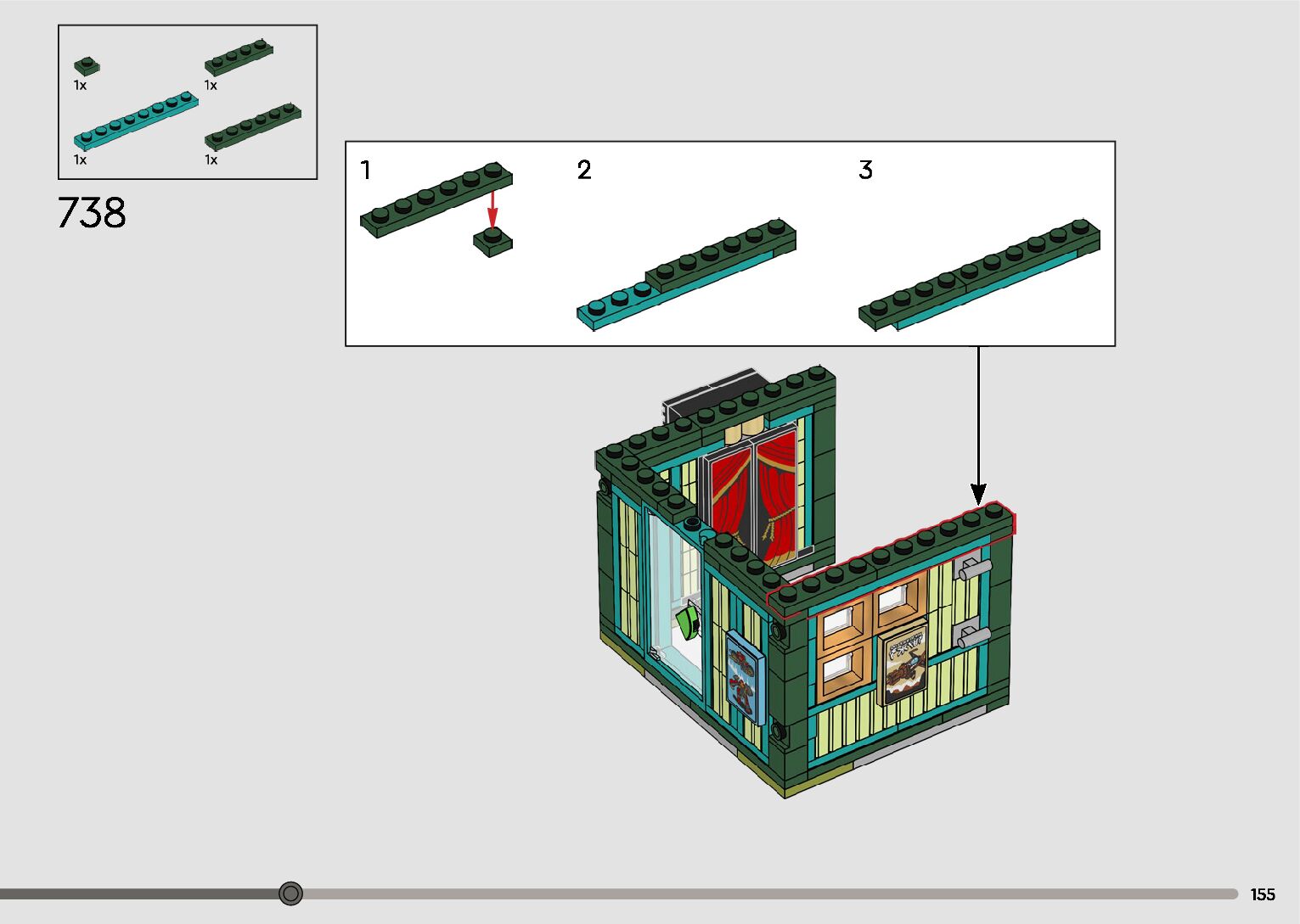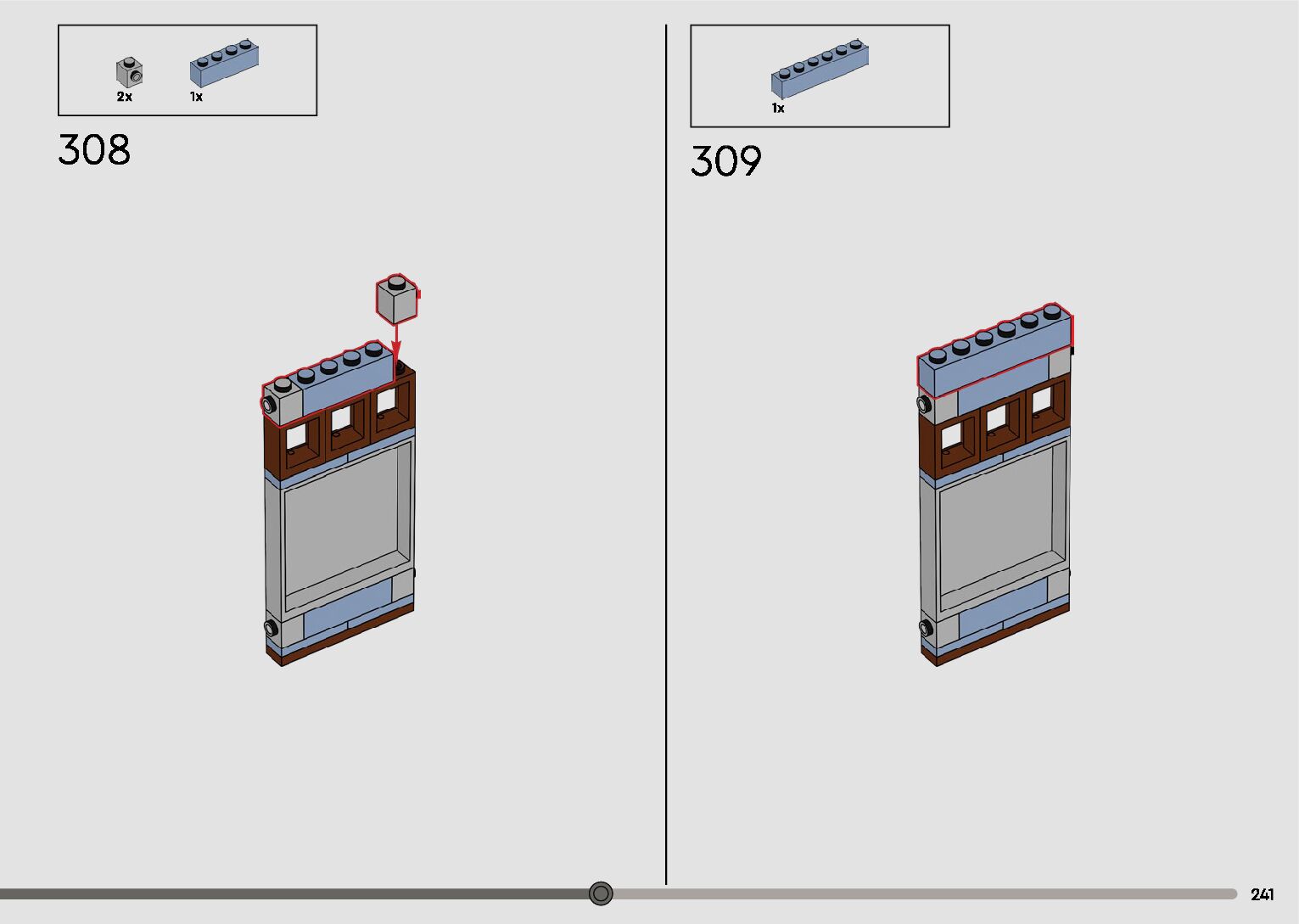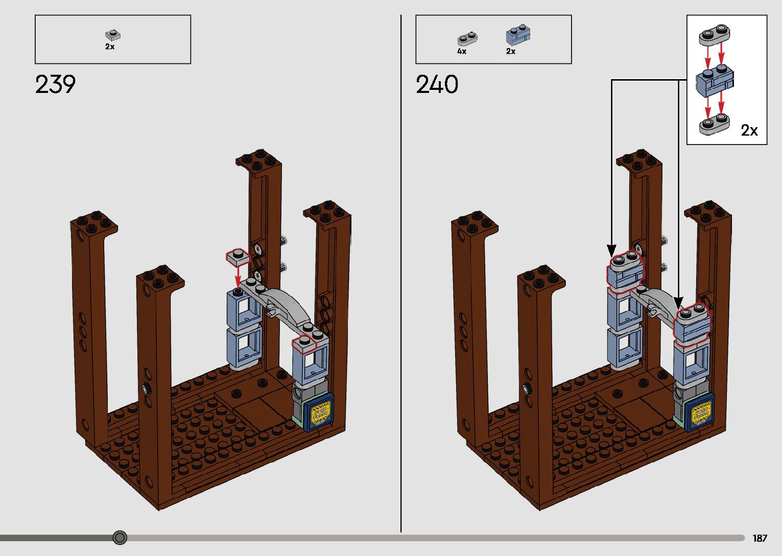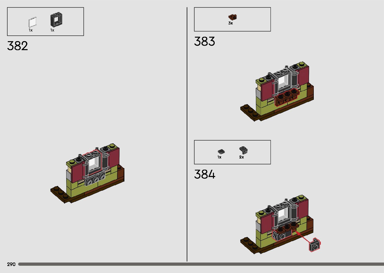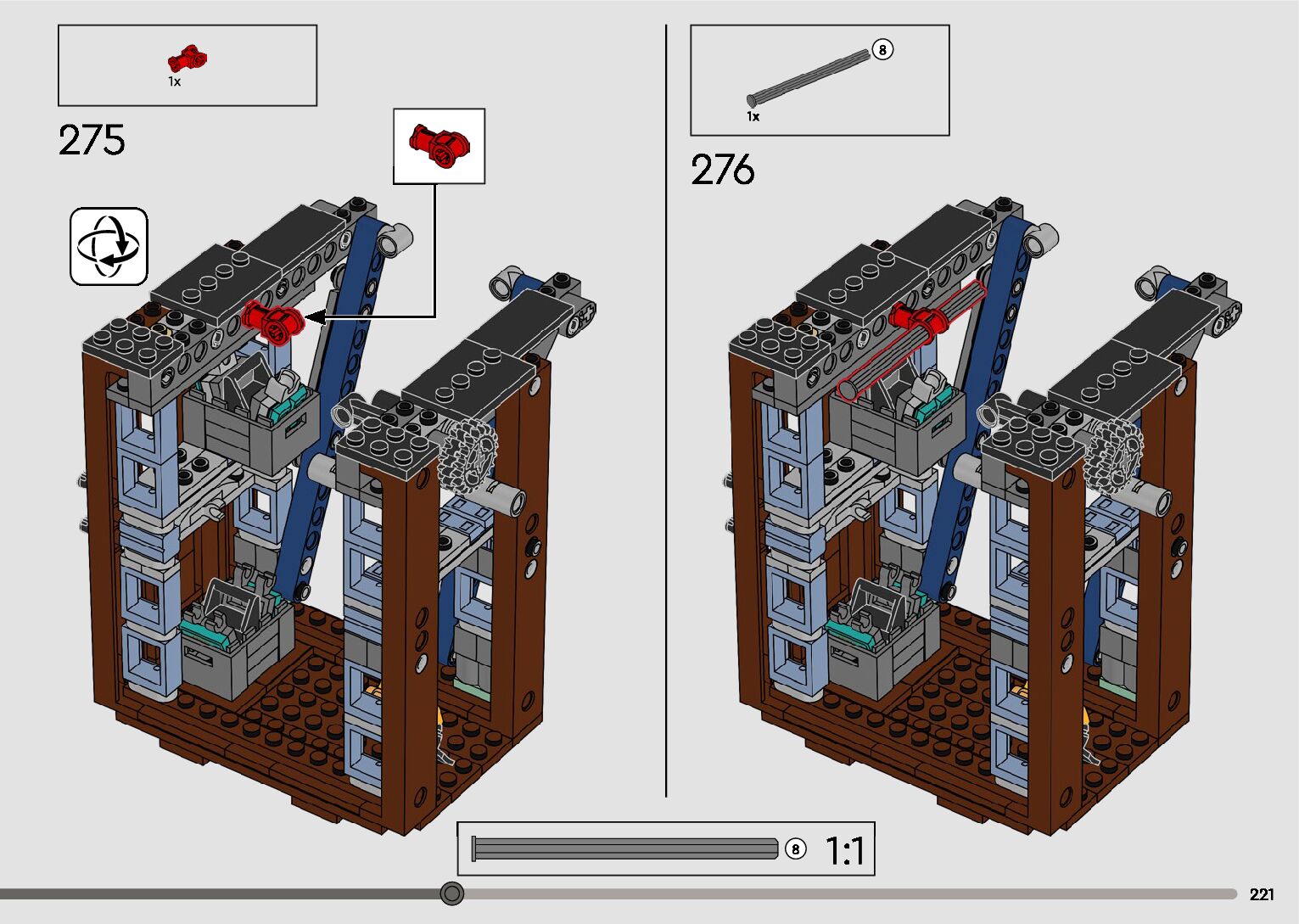 The assembly guide is prepared in a very understandable way for children and adult LEGO enthusiasts. A total of 596 picture galleries are shown, explaining the step-by-step construction stages for 2 different structures.