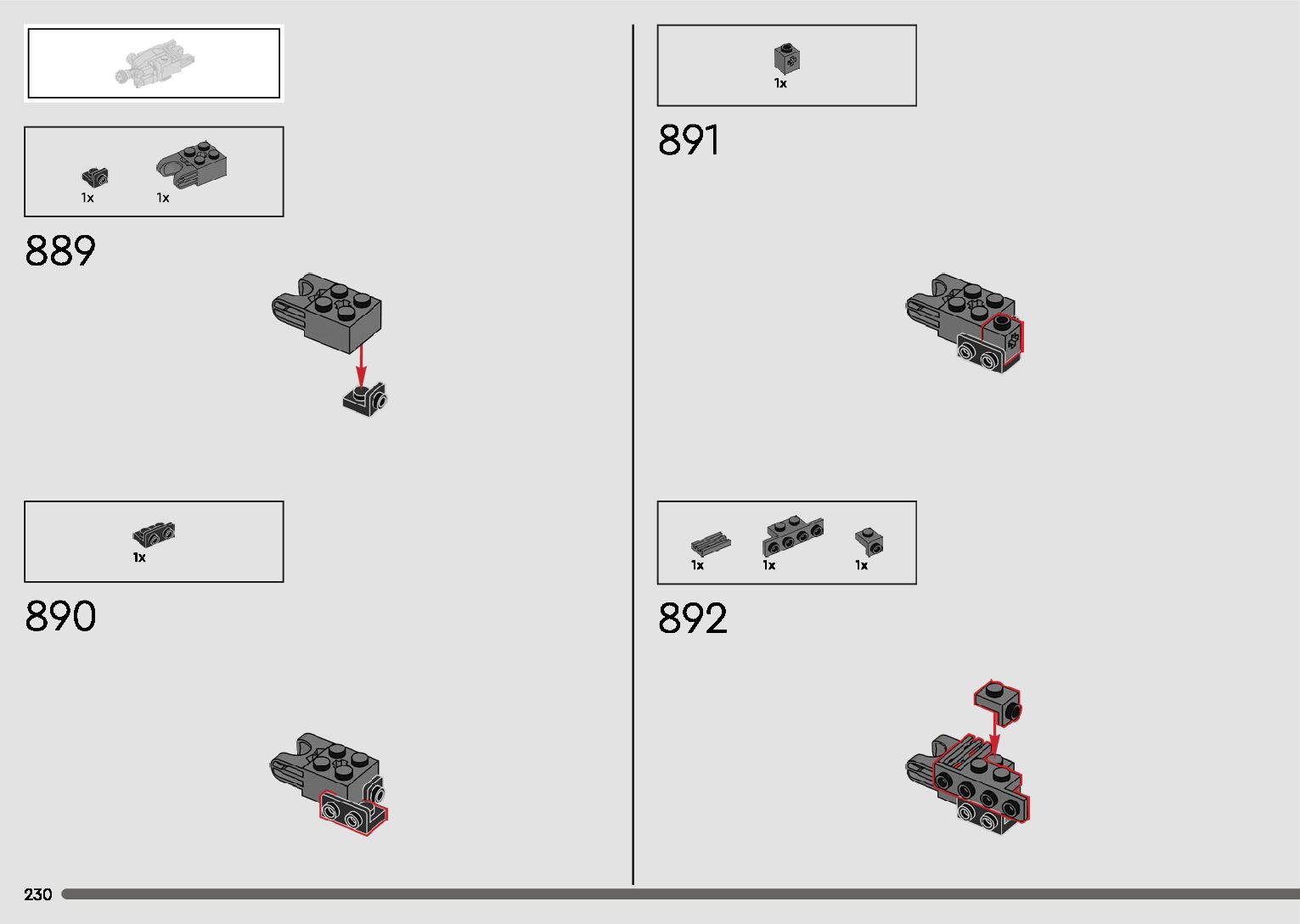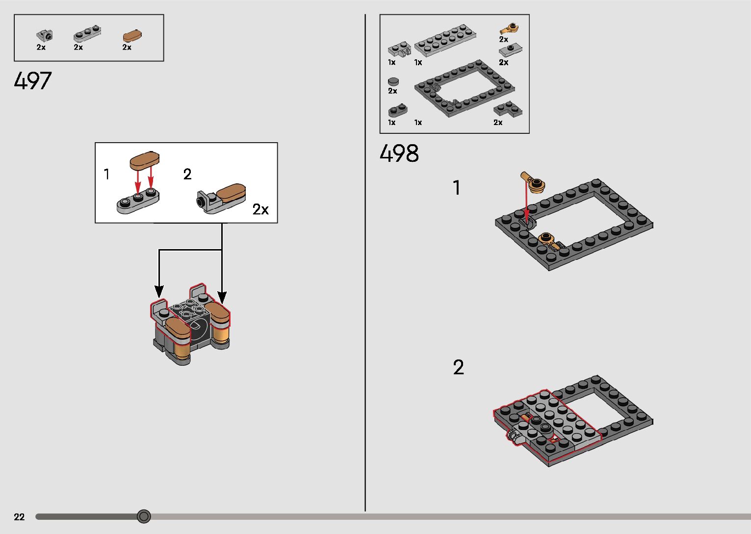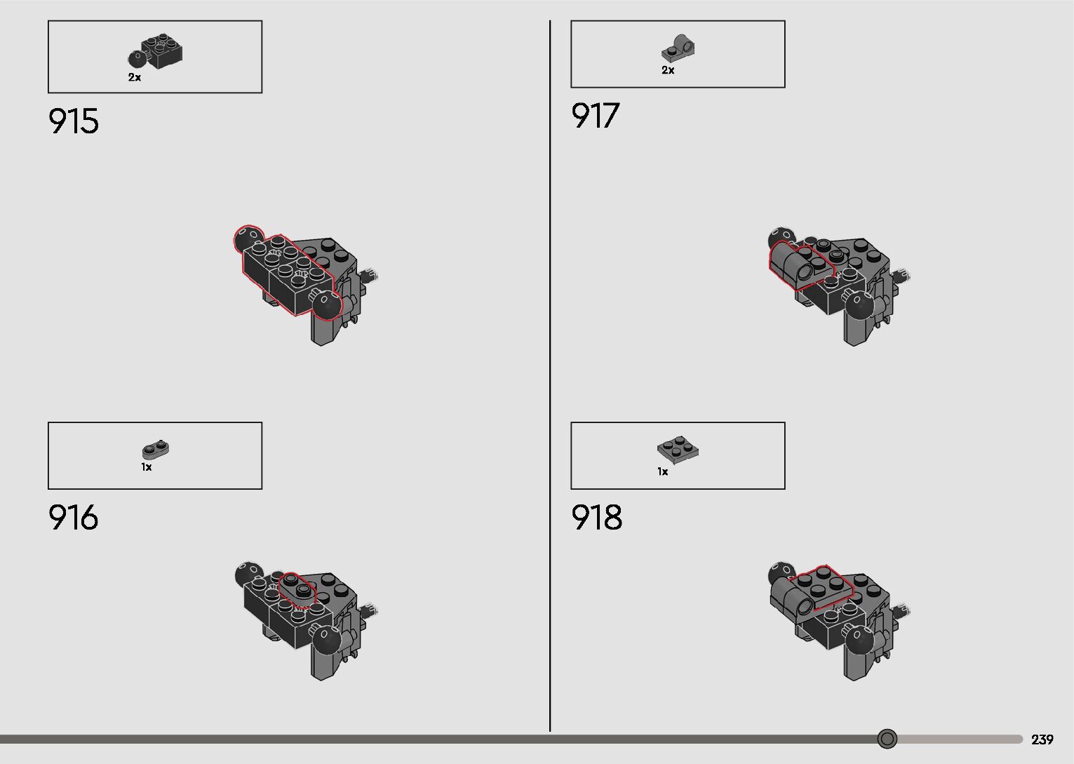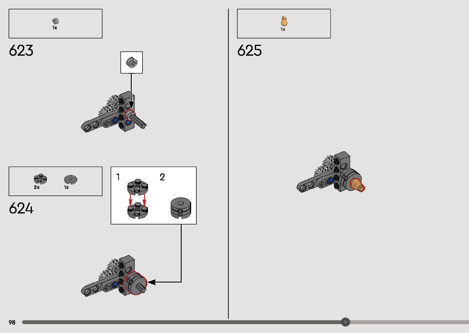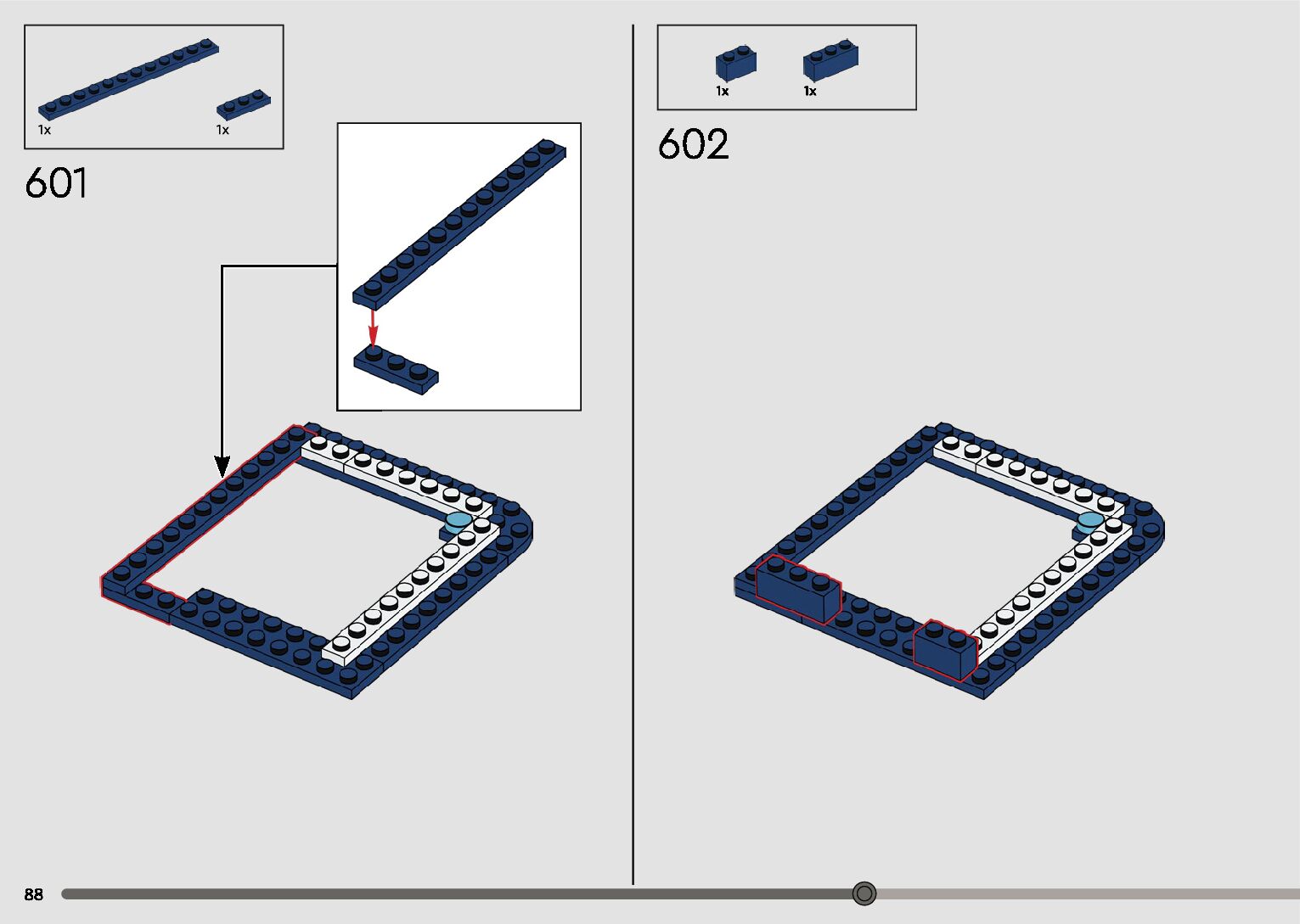 The assembly guide is prepared in a very understandable way for children and adult LEGO enthusiasts. A total of 596 picture galleries are shown, explaining the step-by-step construction stages for 2 different structures.