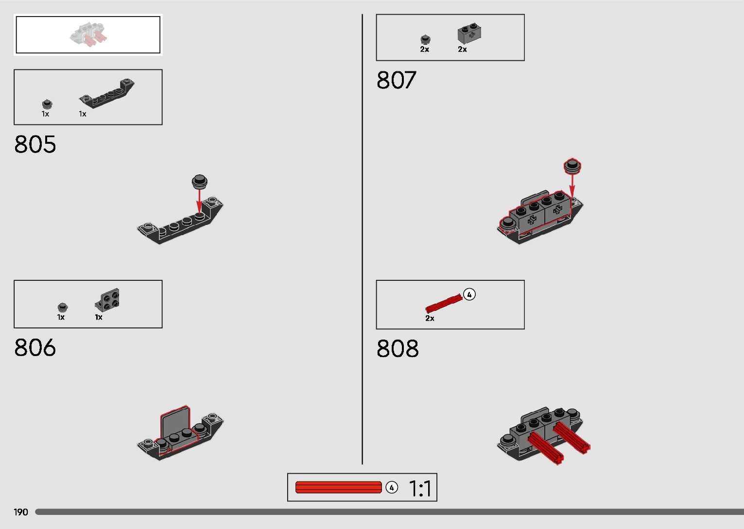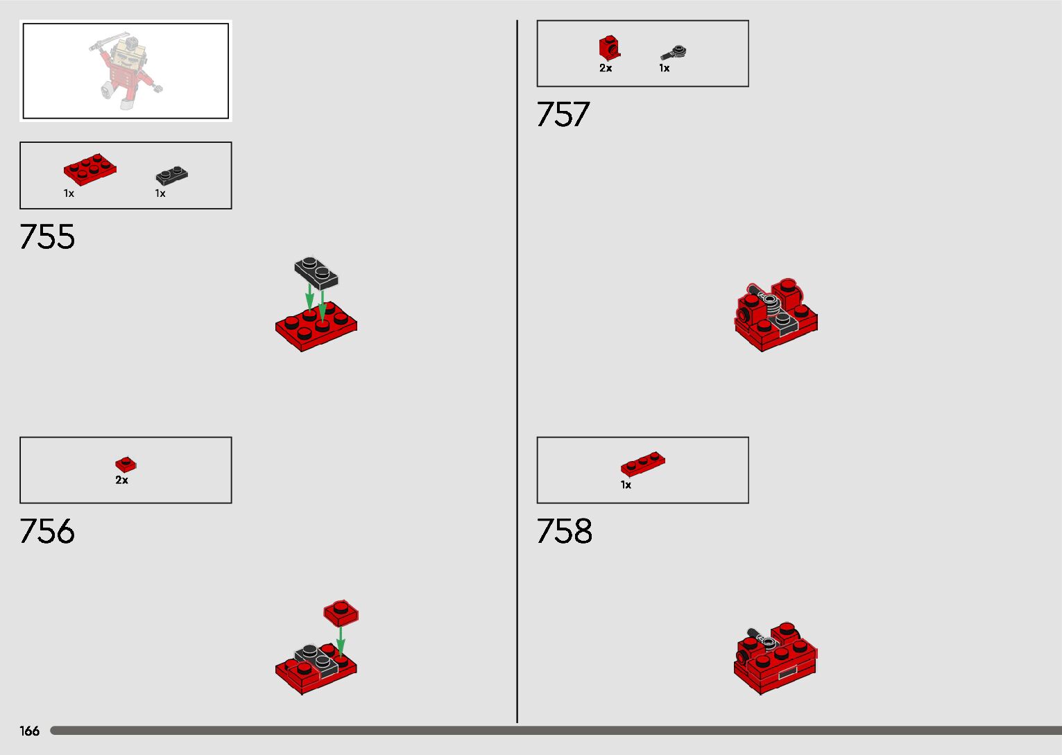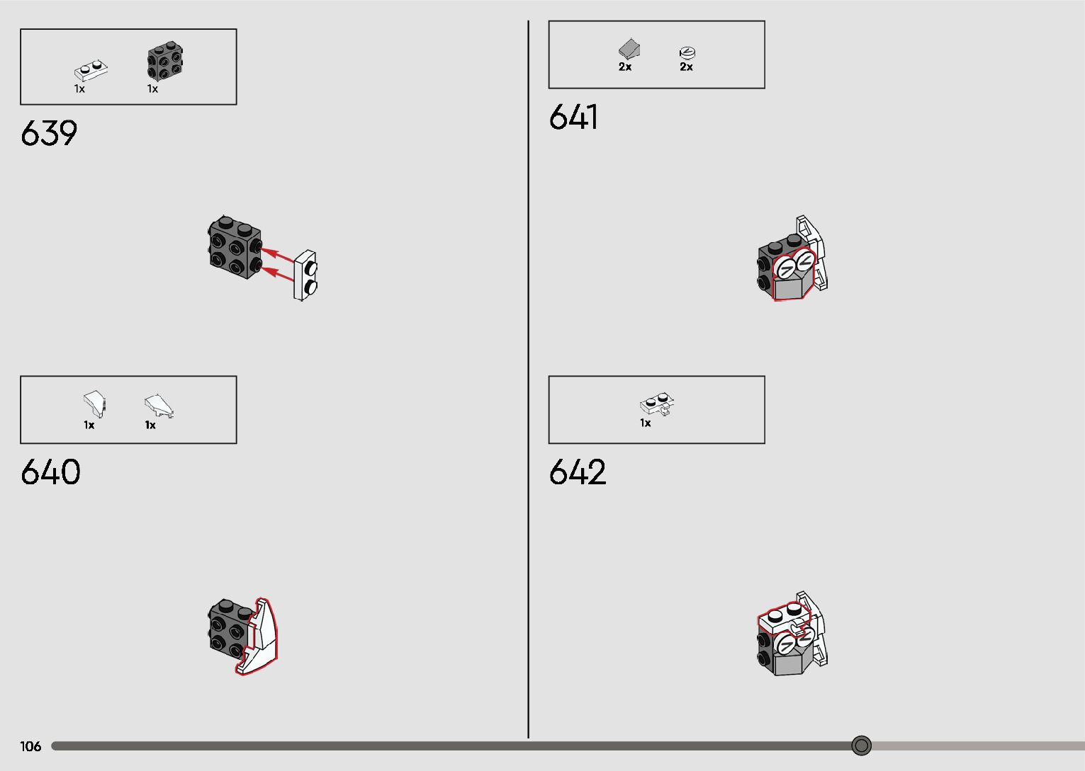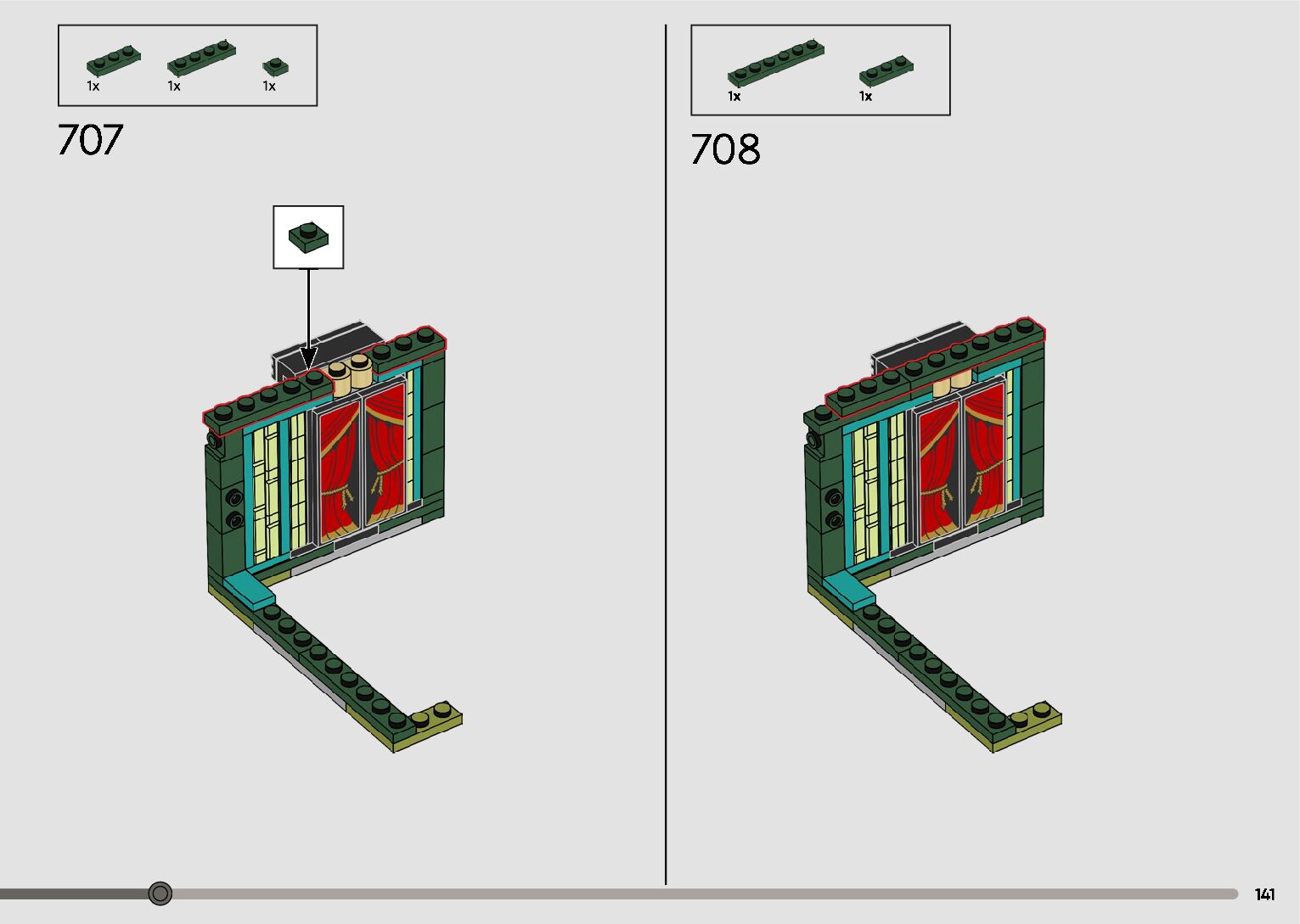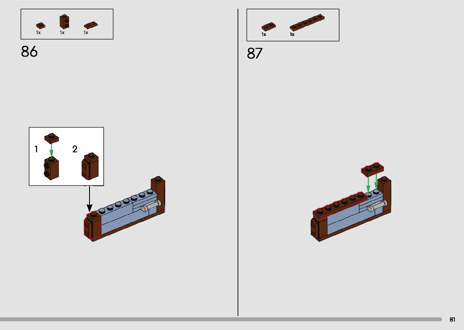 The assembly guide is prepared in a very understandable way for children and adult LEGO enthusiasts. A total of 596 picture galleries are shown, explaining the step-by-step construction stages for 2 different structures.