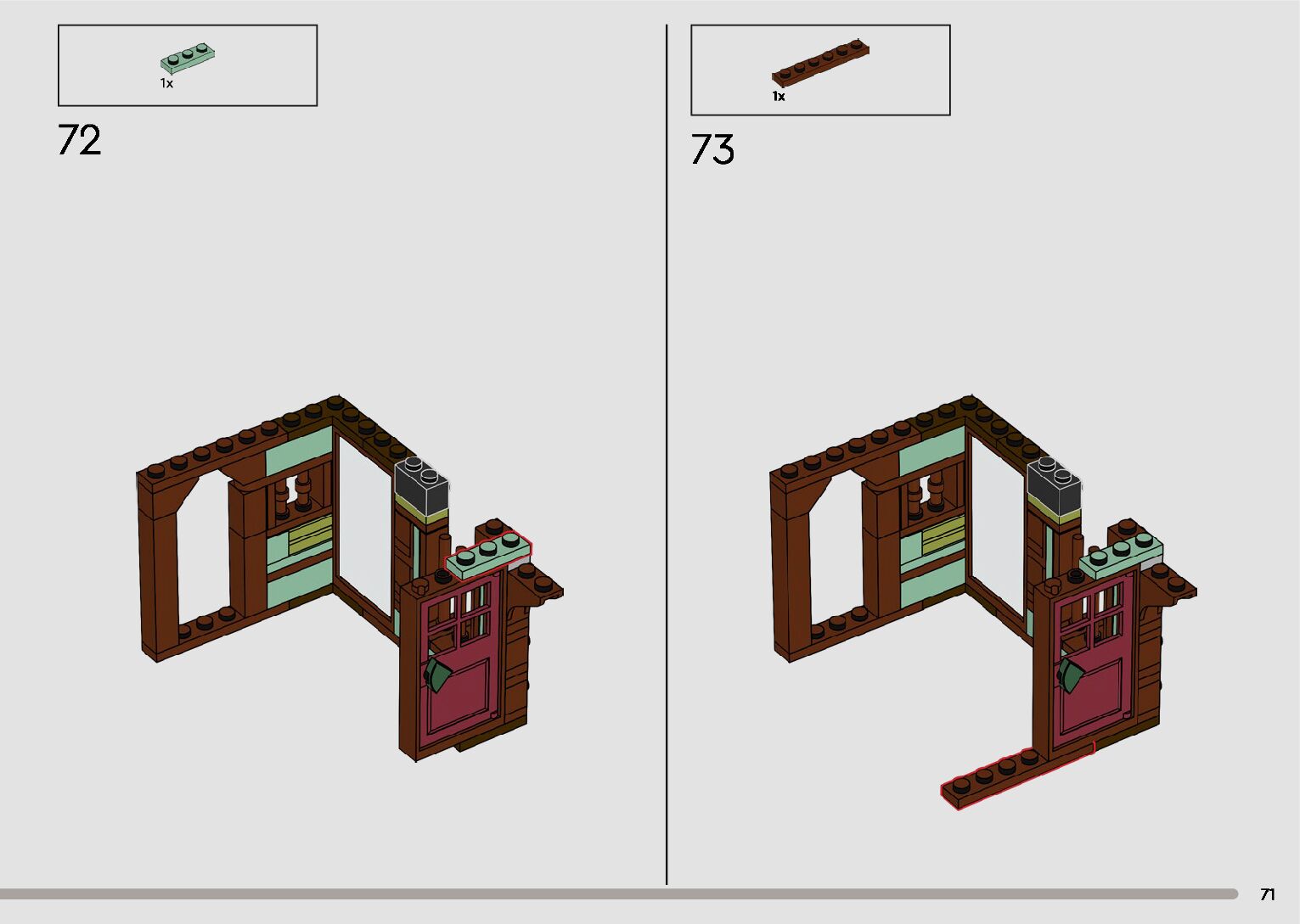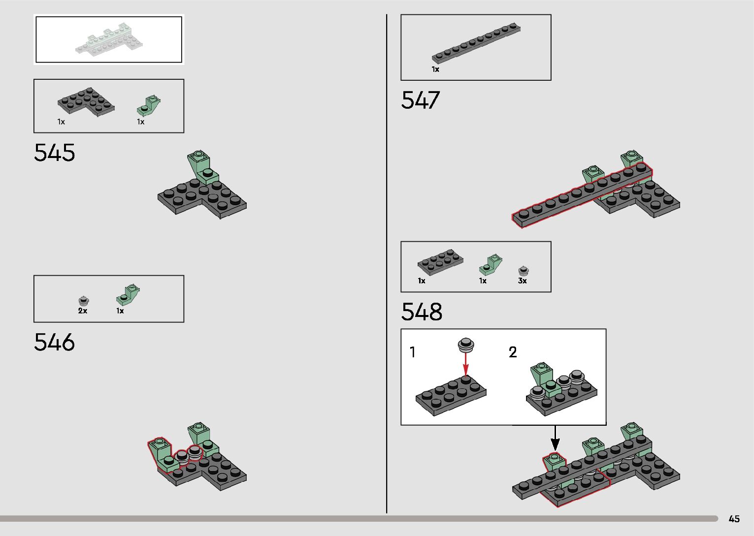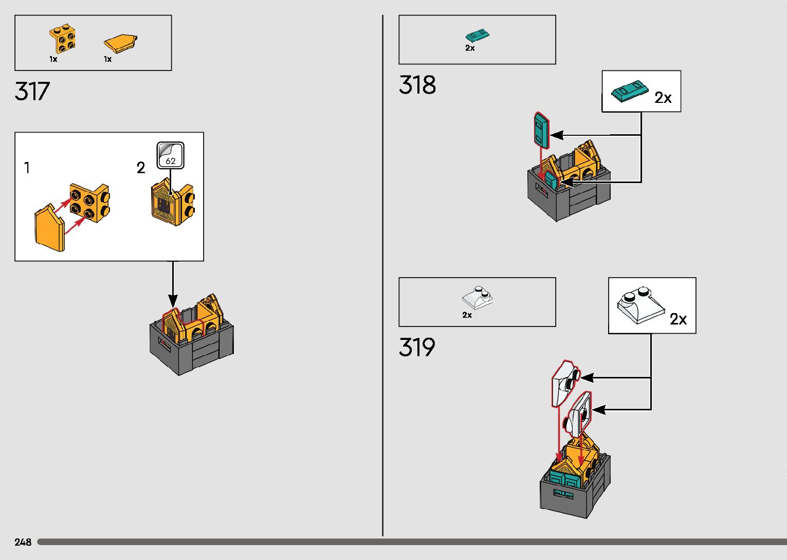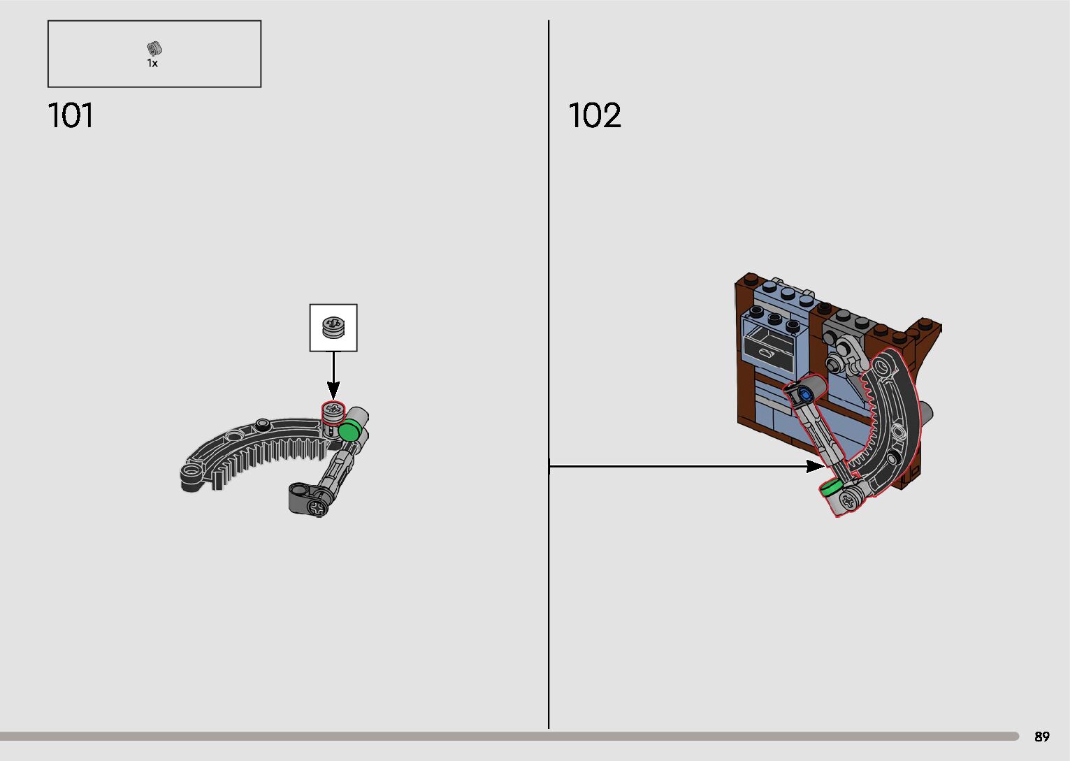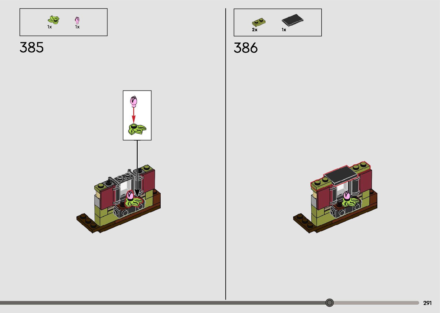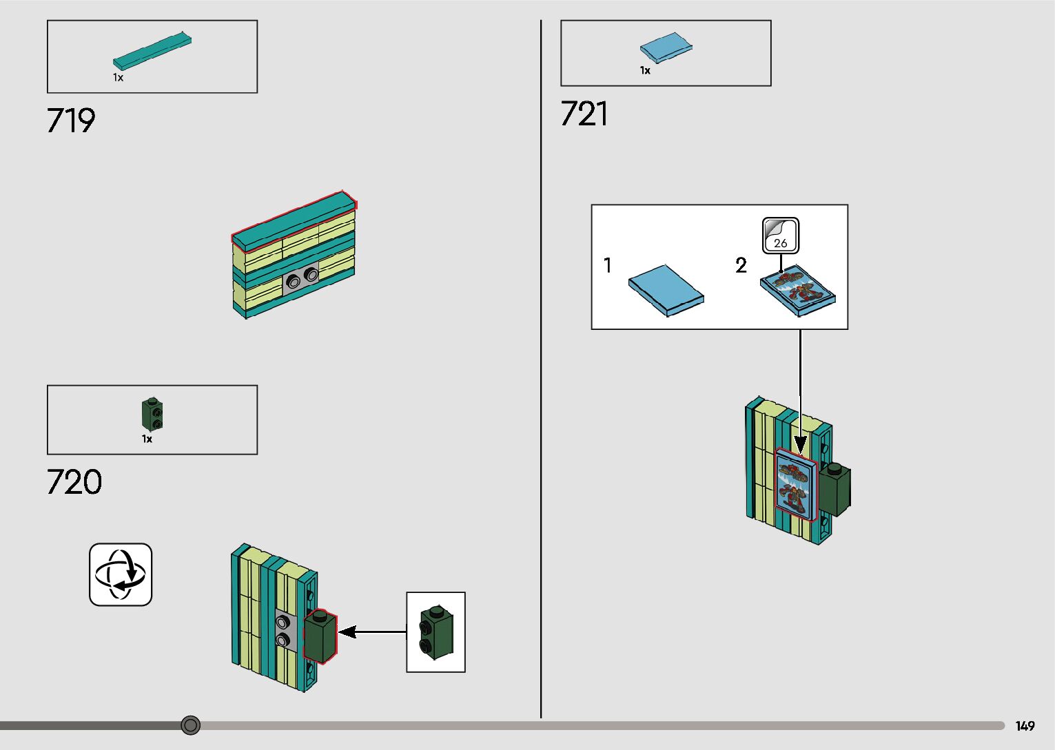 The assembly guide is prepared in a very understandable way for children and adult LEGO enthusiasts. A total of 596 picture galleries are shown, explaining the step-by-step construction stages for 2 different structures.