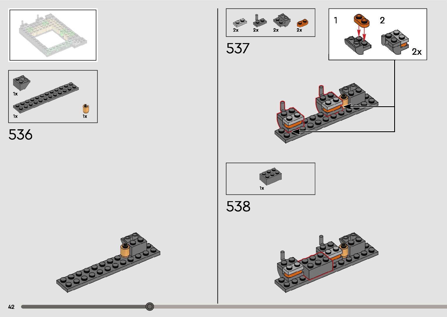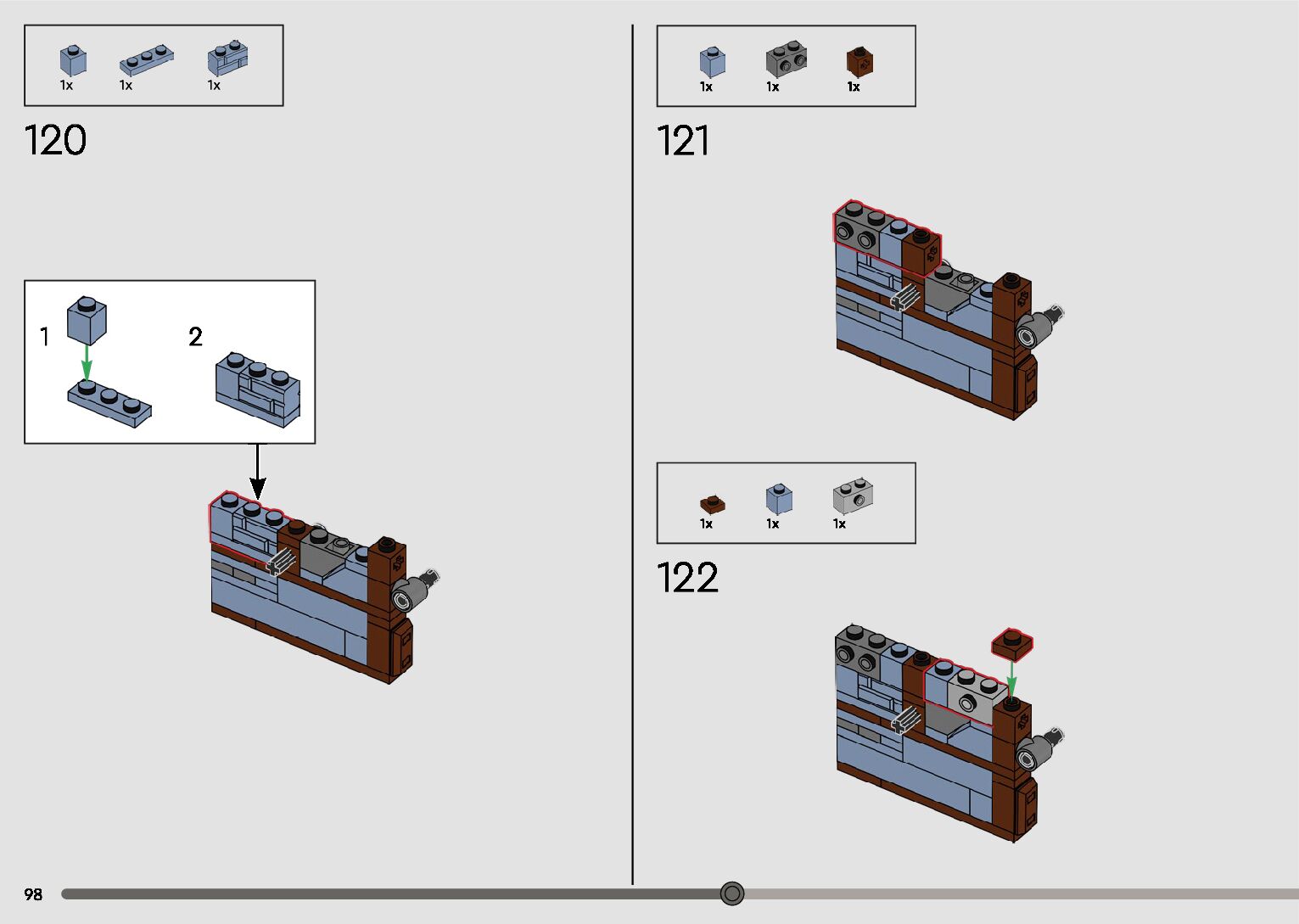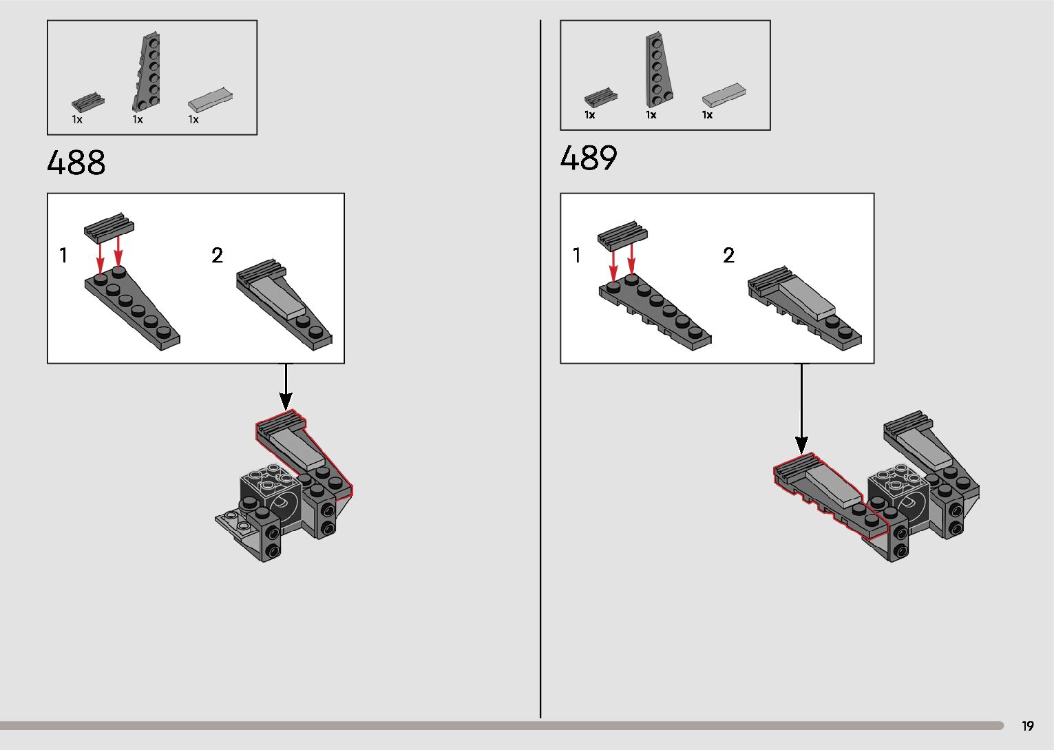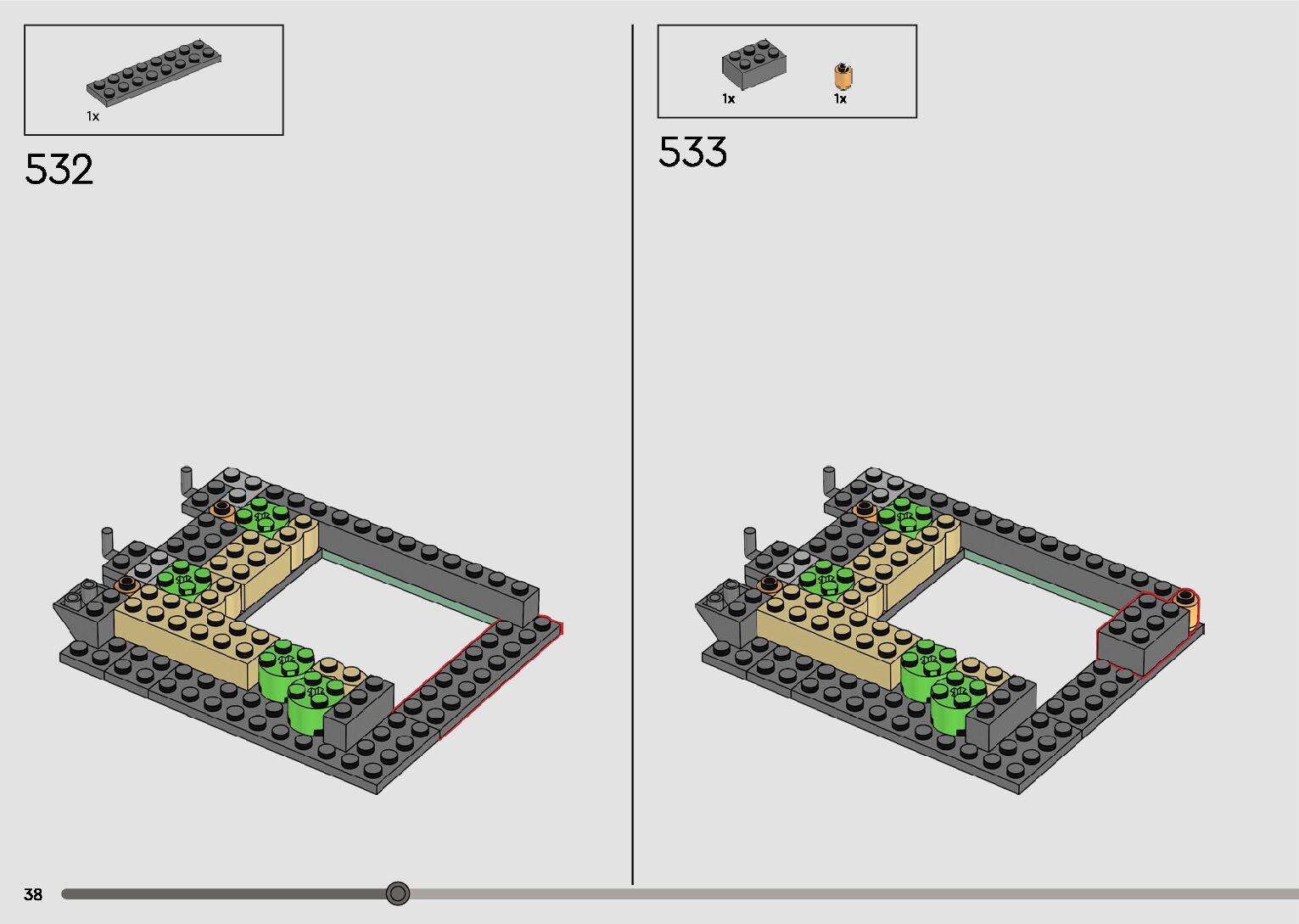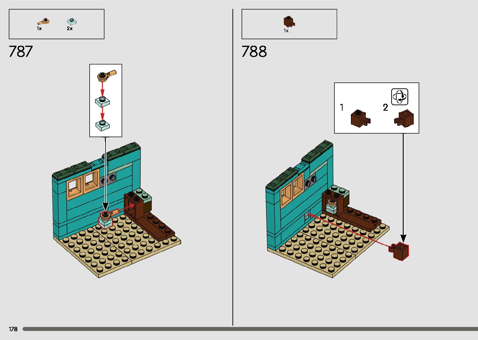 The assembly guide is prepared in a very understandable way for children and adult LEGO enthusiasts. A total of 596 picture galleries are shown, explaining the step-by-step construction stages for 2 different structures.
