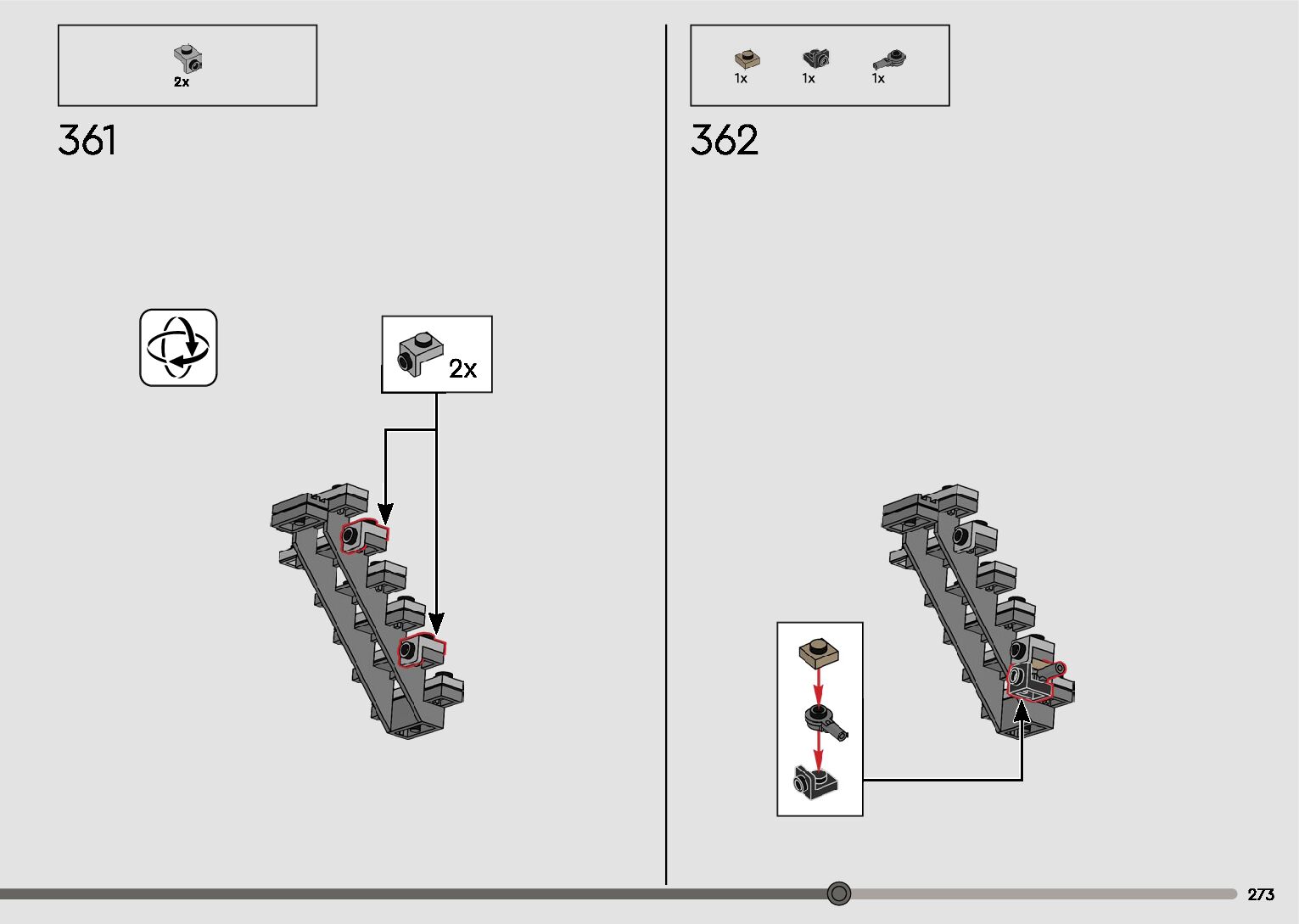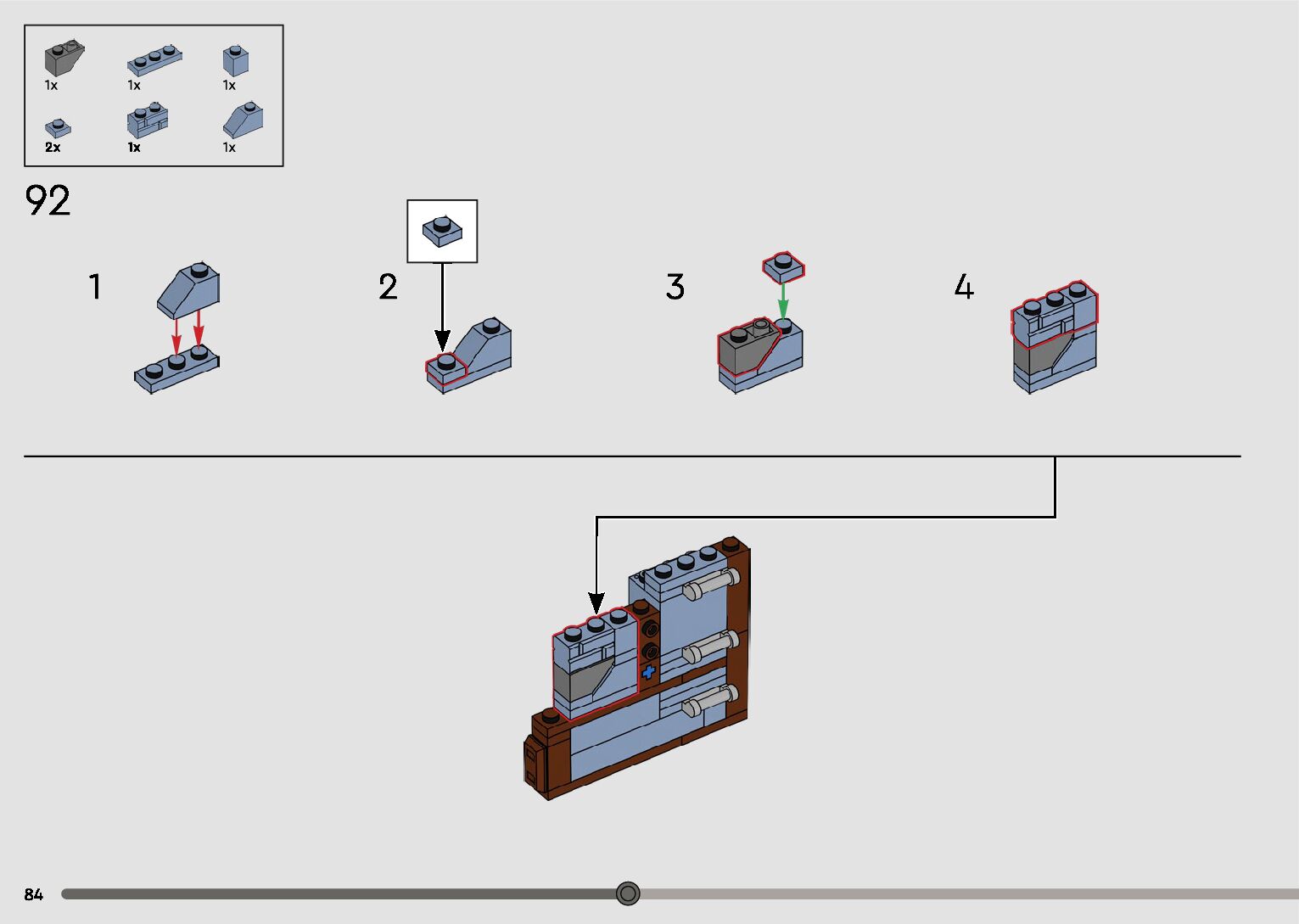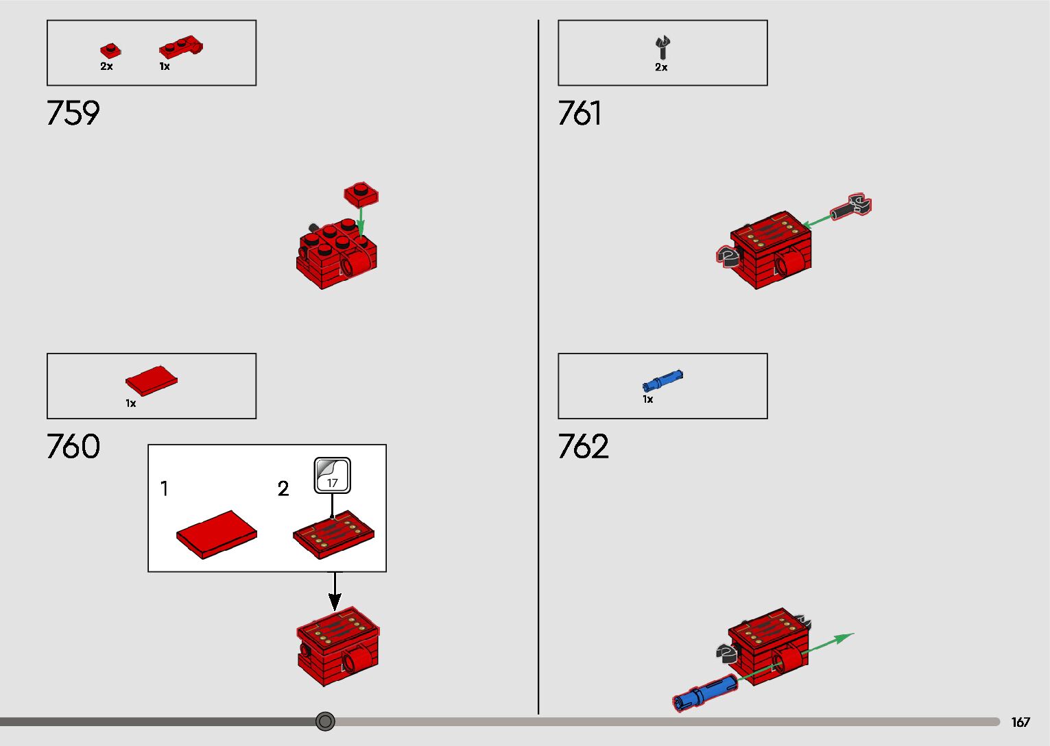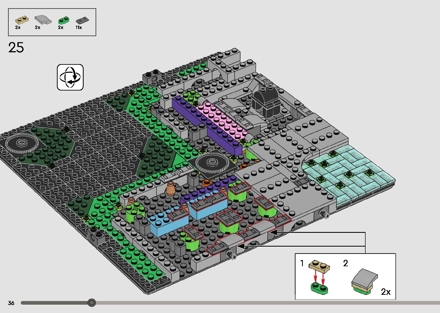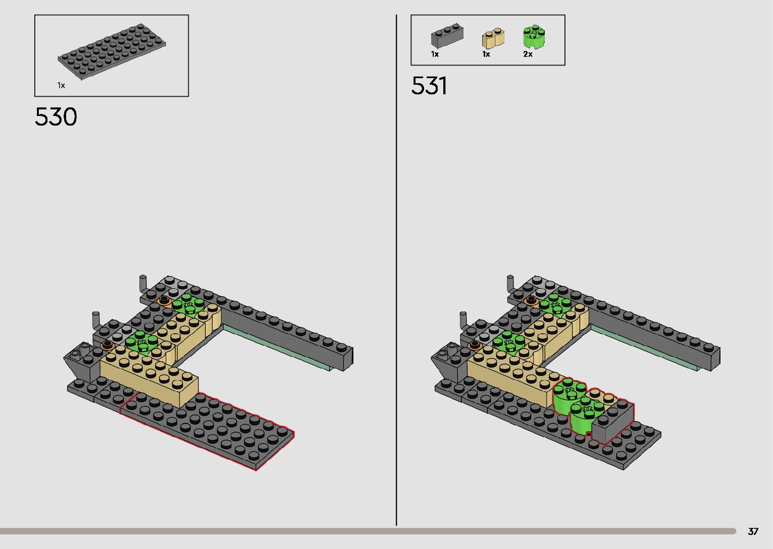 The assembly guide is prepared in a very understandable way for children and adult LEGO enthusiasts. A total of 596 picture galleries are shown, explaining the step-by-step construction stages for 2 different structures.