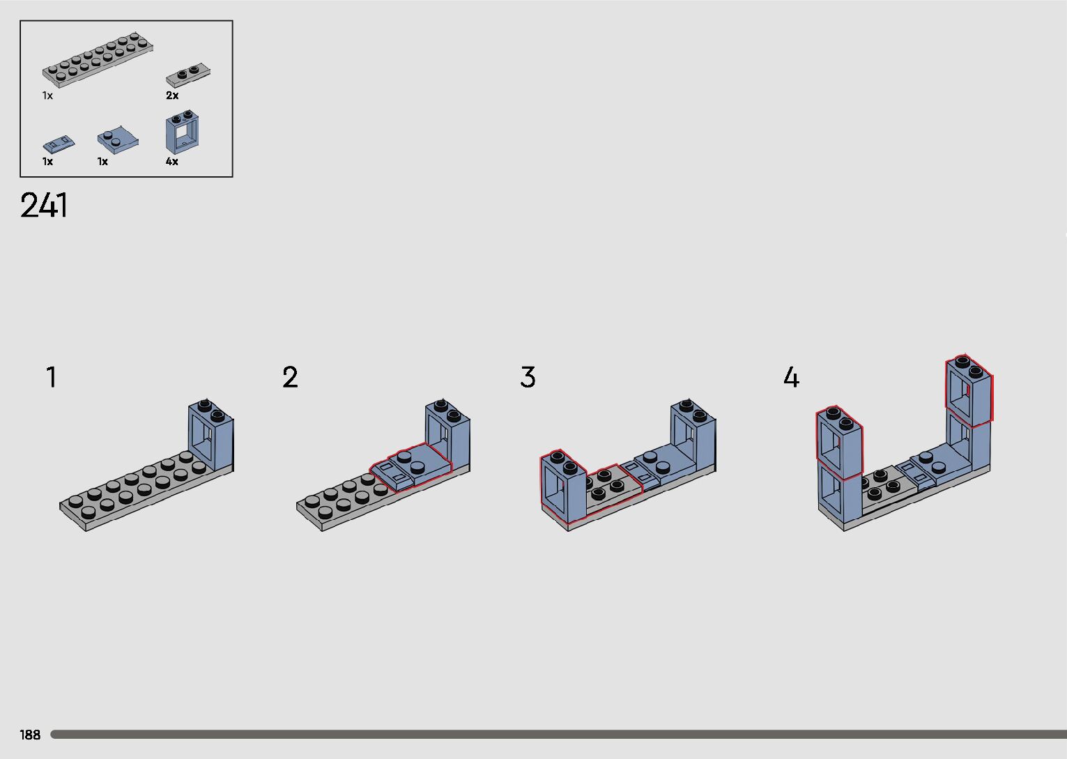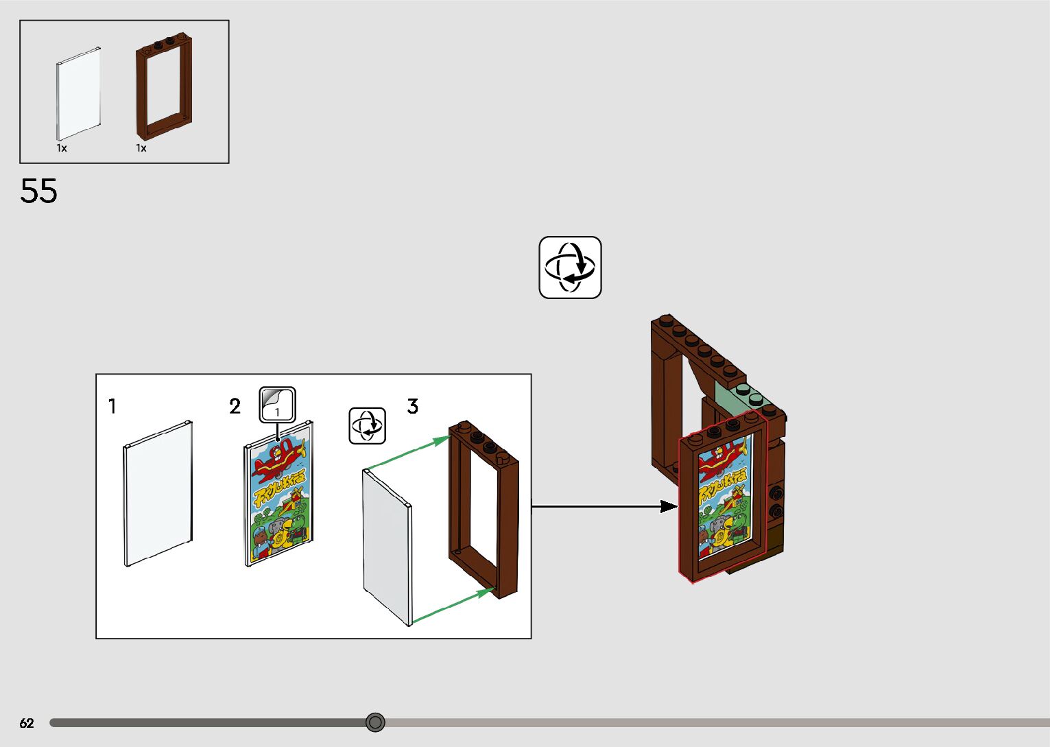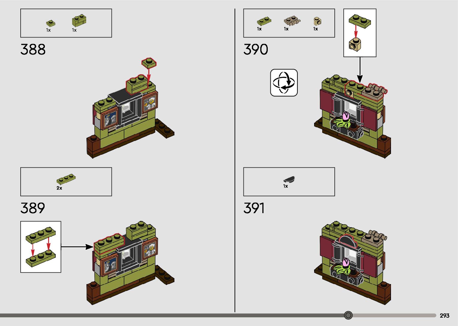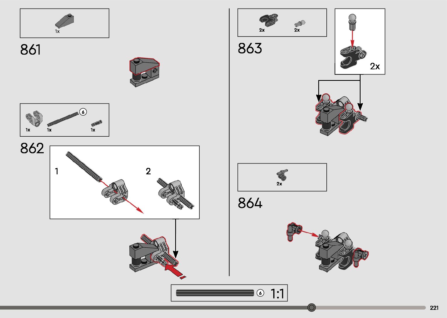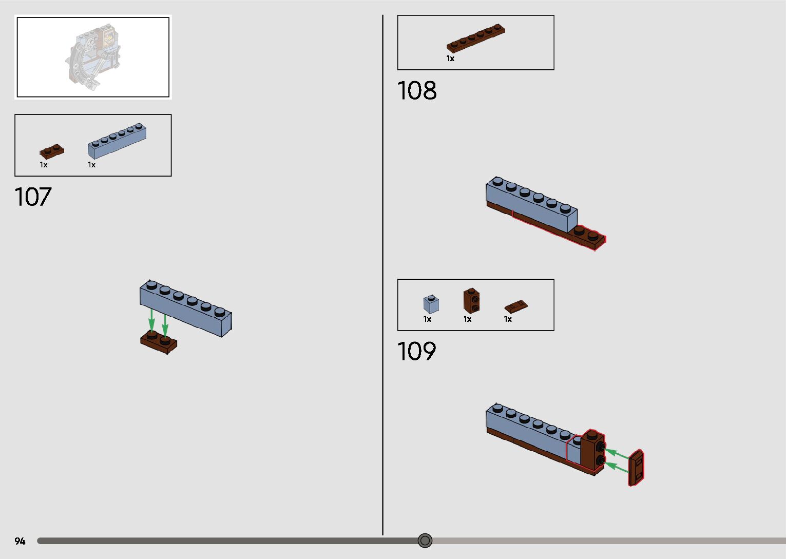The assembly guide is prepared in a very understandable way for children and adult LEGO enthusiasts. A total of 596 picture galleries are shown, explaining the step-by-step construction stages for 2 different structures.