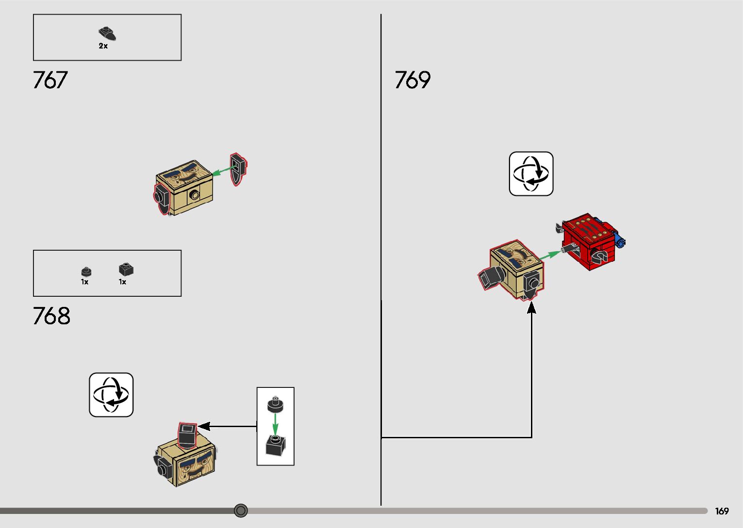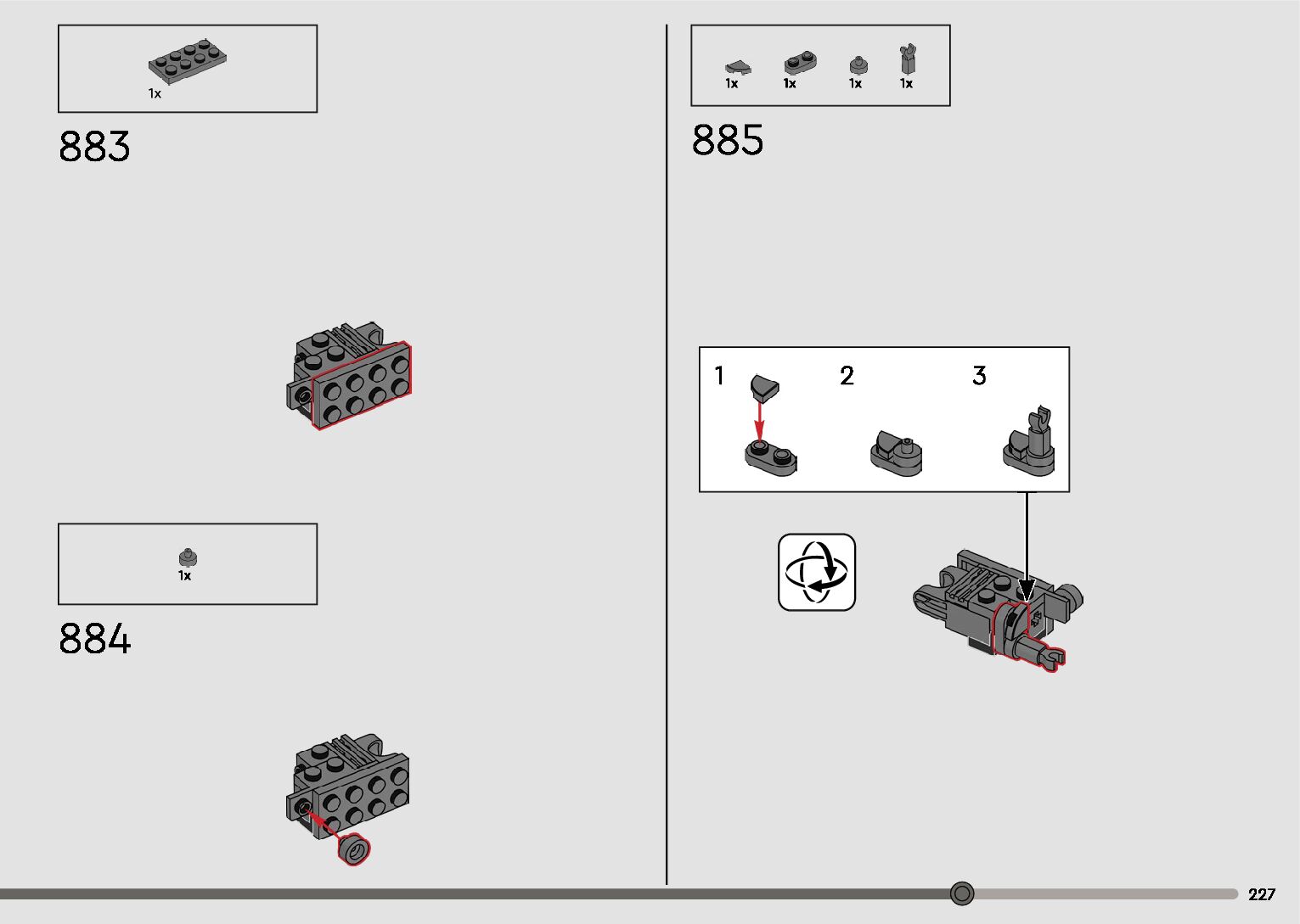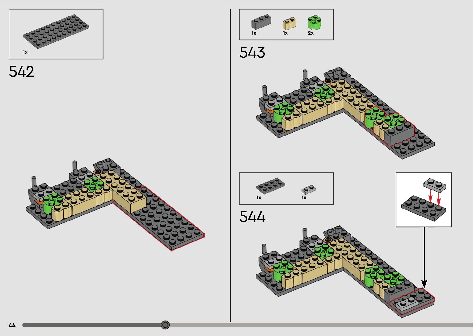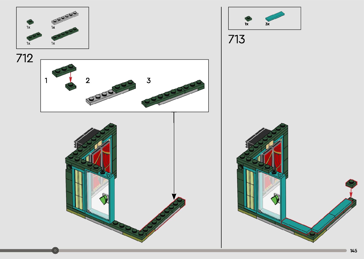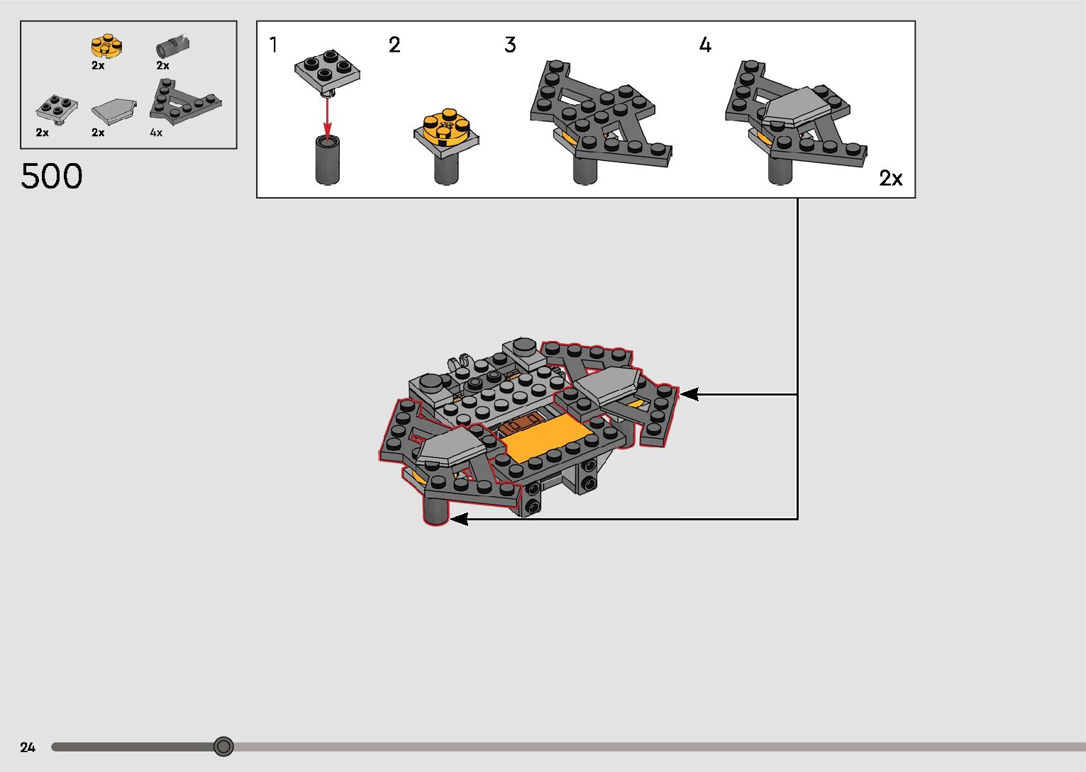 The assembly guide is prepared in a very understandable way for children and adult LEGO enthusiasts. A total of 596 picture galleries are shown, explaining the step-by-step construction stages for 2 different structures.