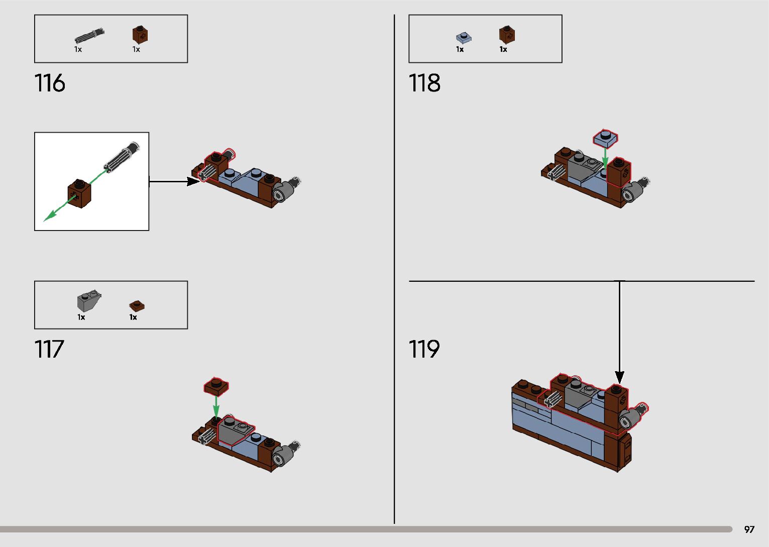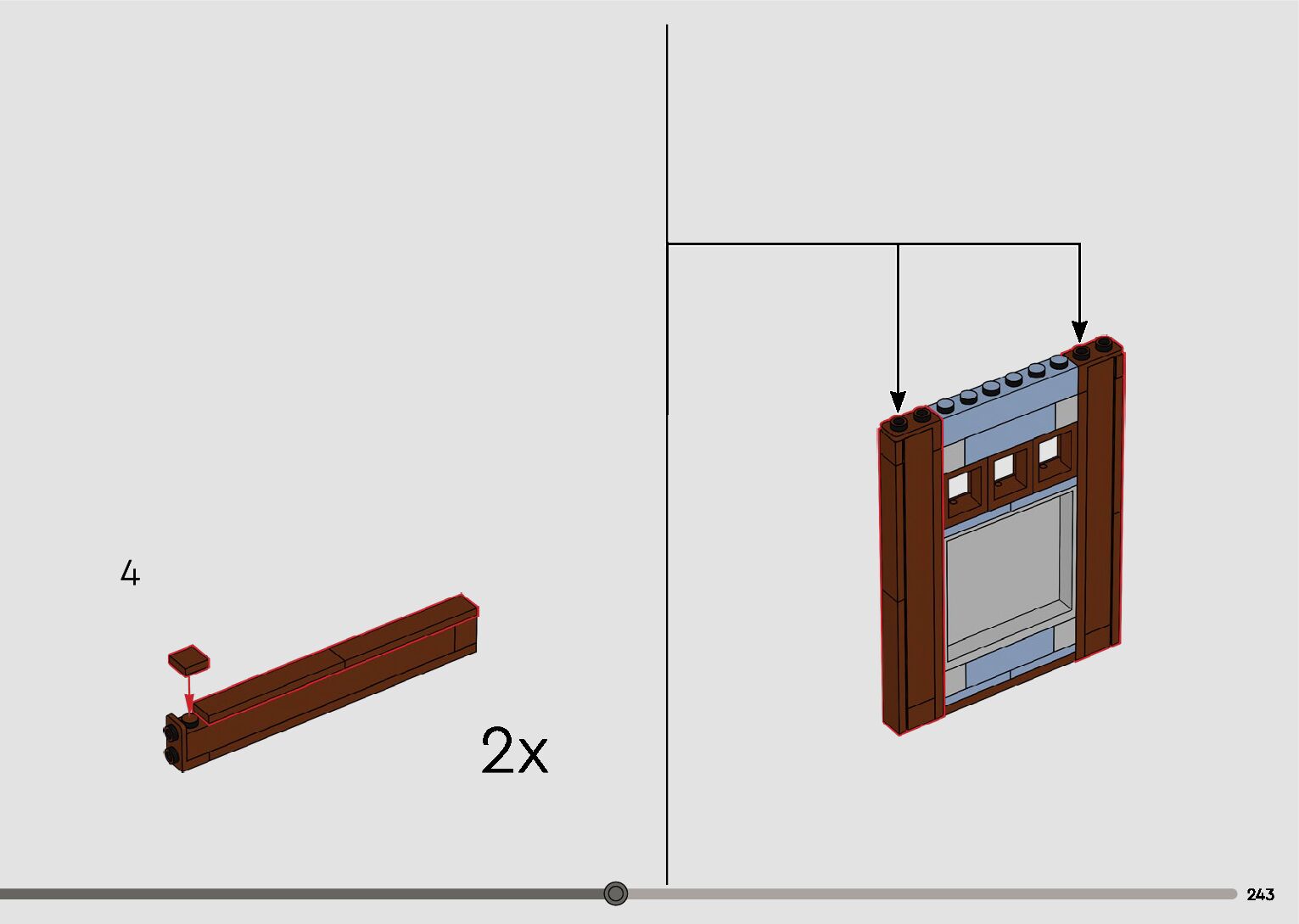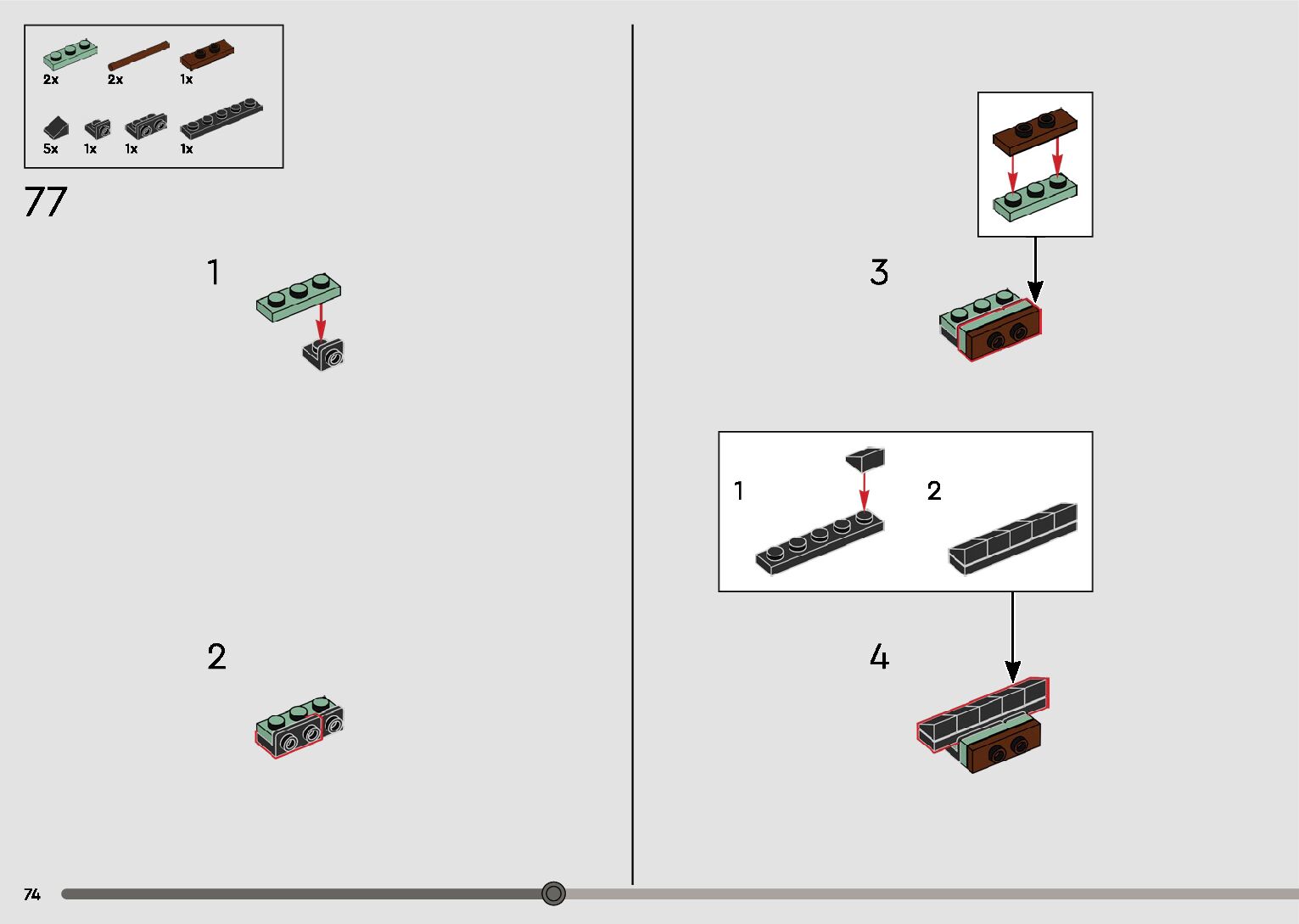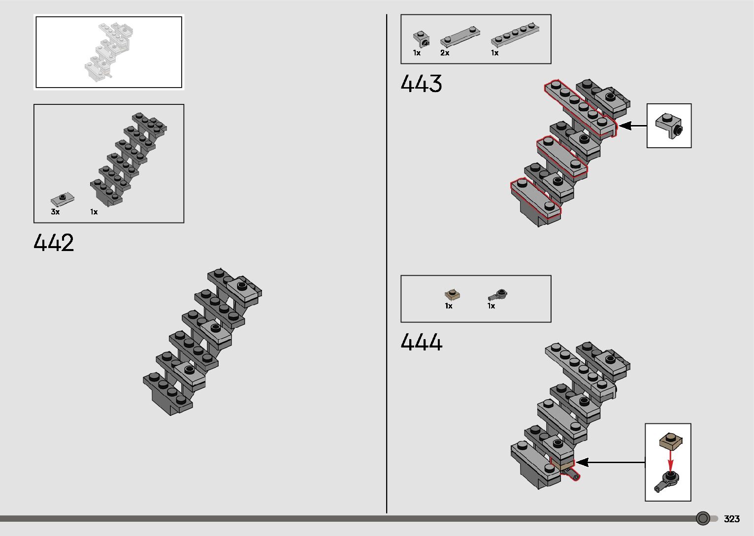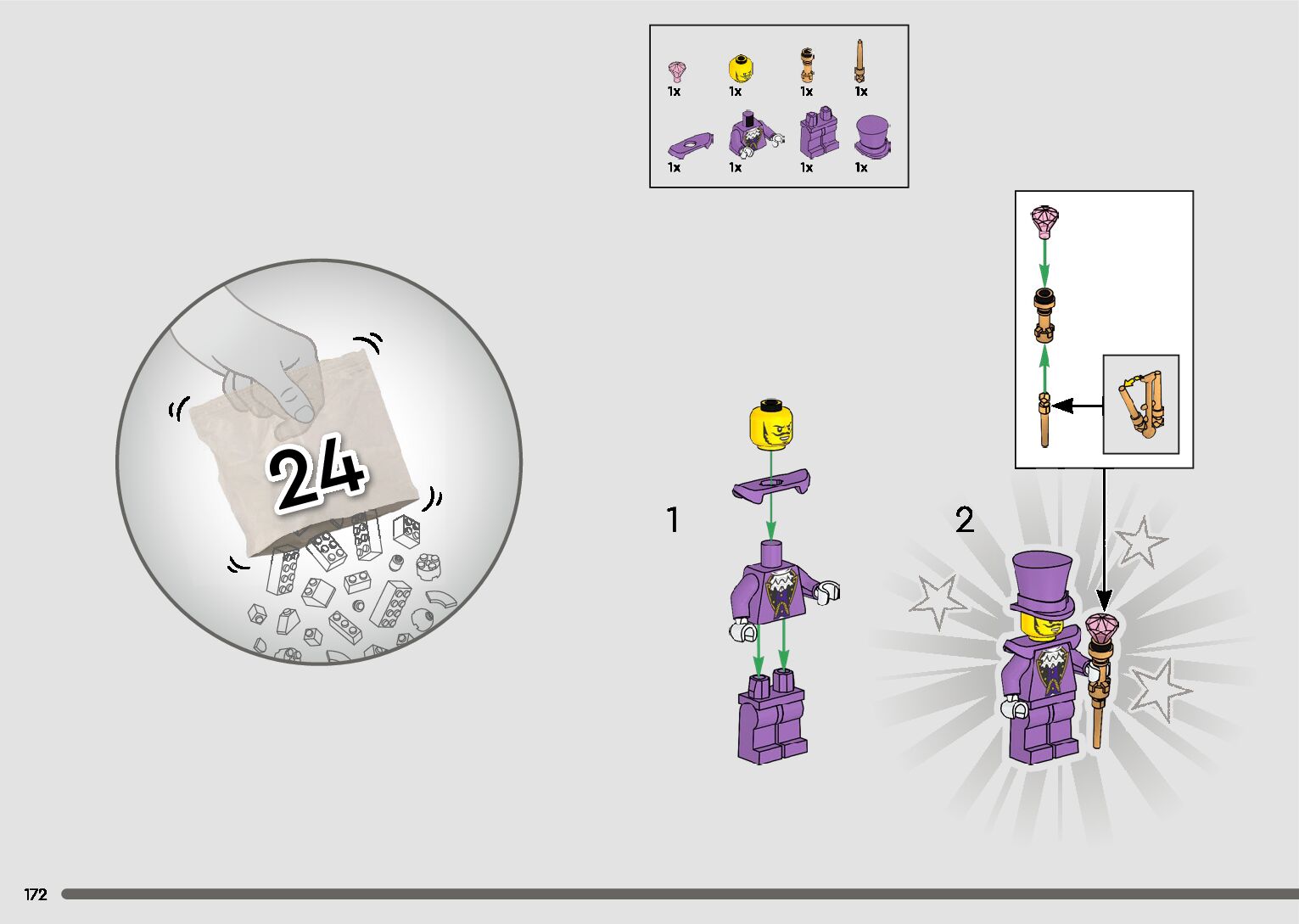 The assembly guide is prepared in a very understandable way for children and adult LEGO enthusiasts. A total of 596 picture galleries are shown, explaining the step-by-step construction stages for 2 different structures.