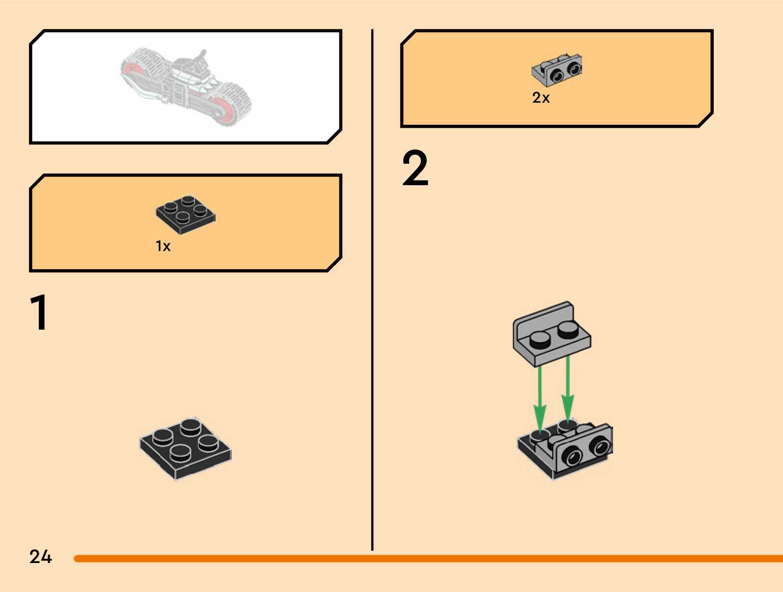 The assembly guide is prepared in a very understandable way for children and adult LEGO enthusiasts. A total of 44 picture galleries are shown, explaining the step-by-step construction stages for 1 different structures.
