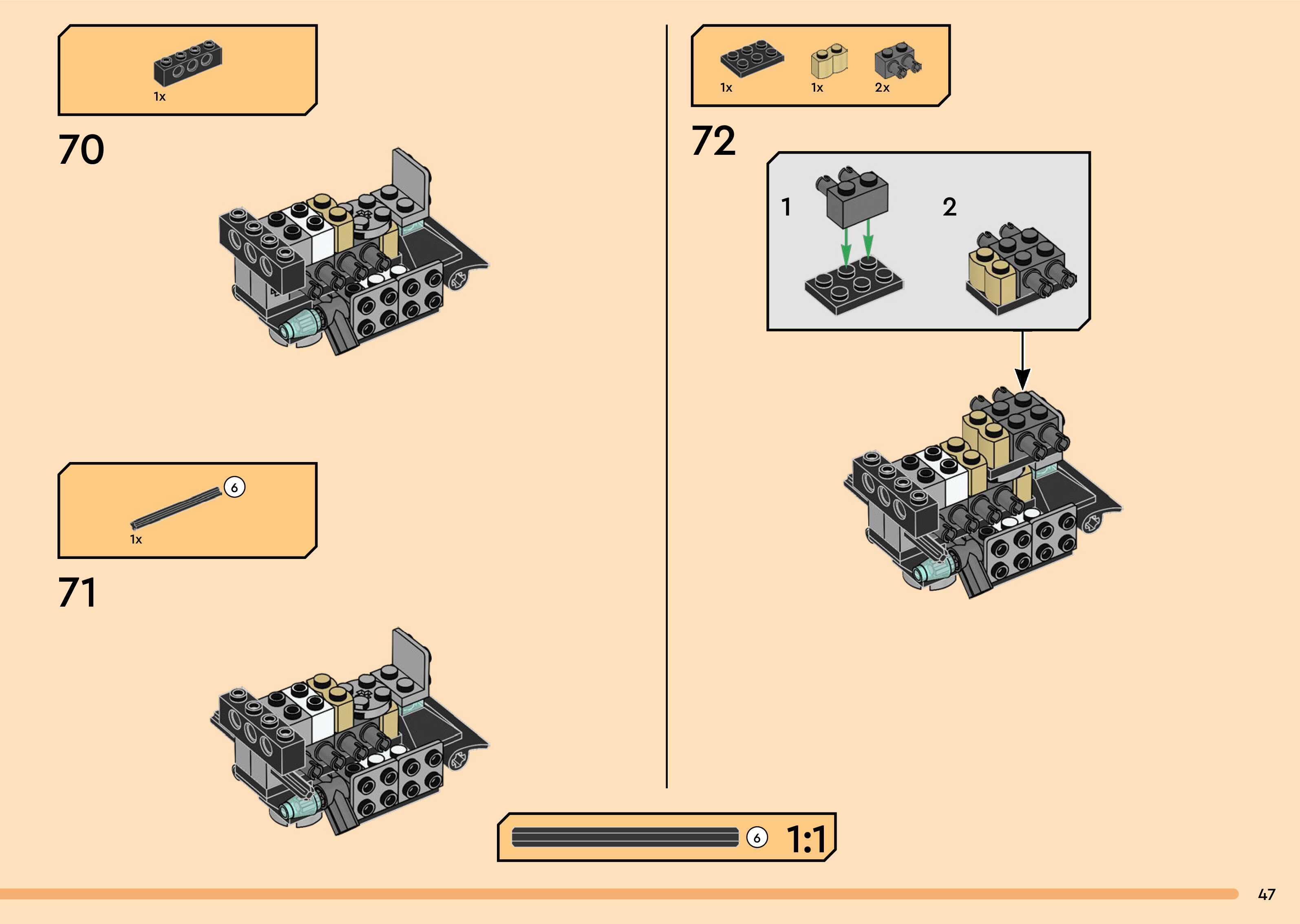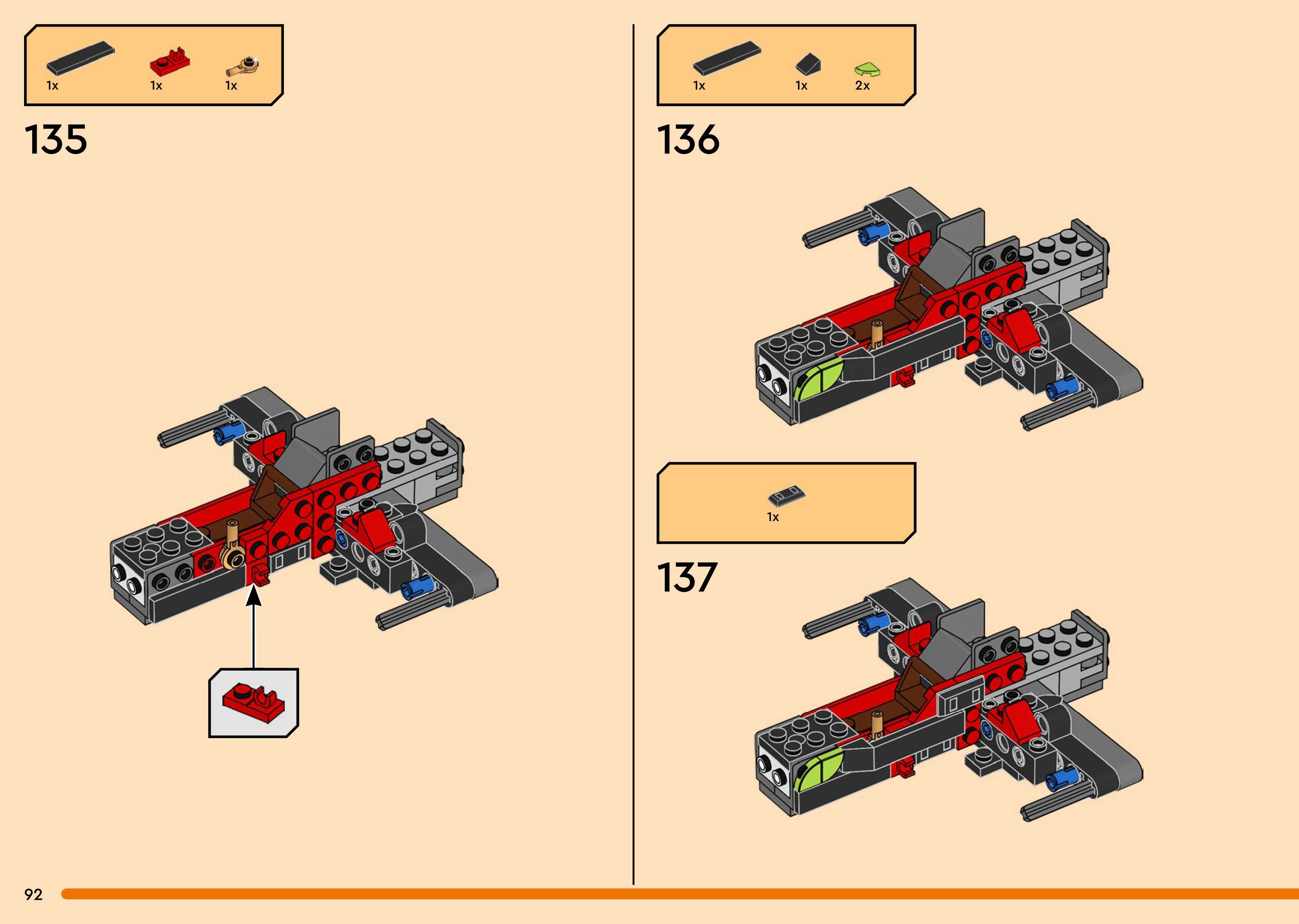 The assembly guide is prepared in a very understandable way for children and adult LEGO enthusiasts. A total of 132 picture galleries are shown, explaining the step-by-step construction stages for 1 different structures.