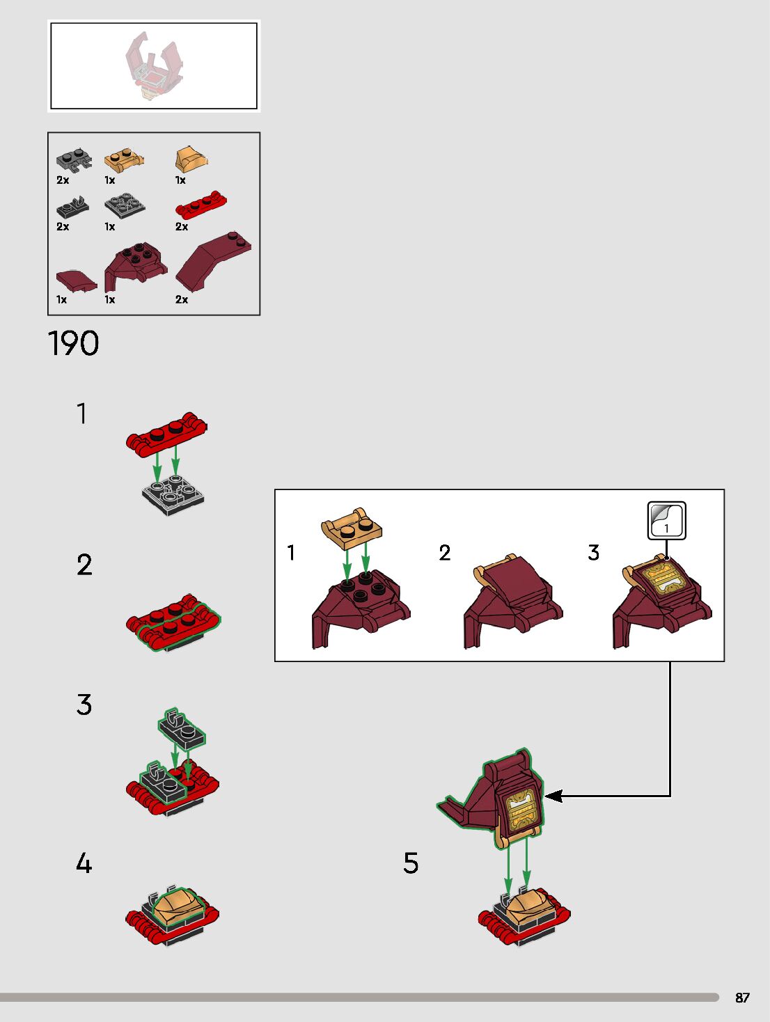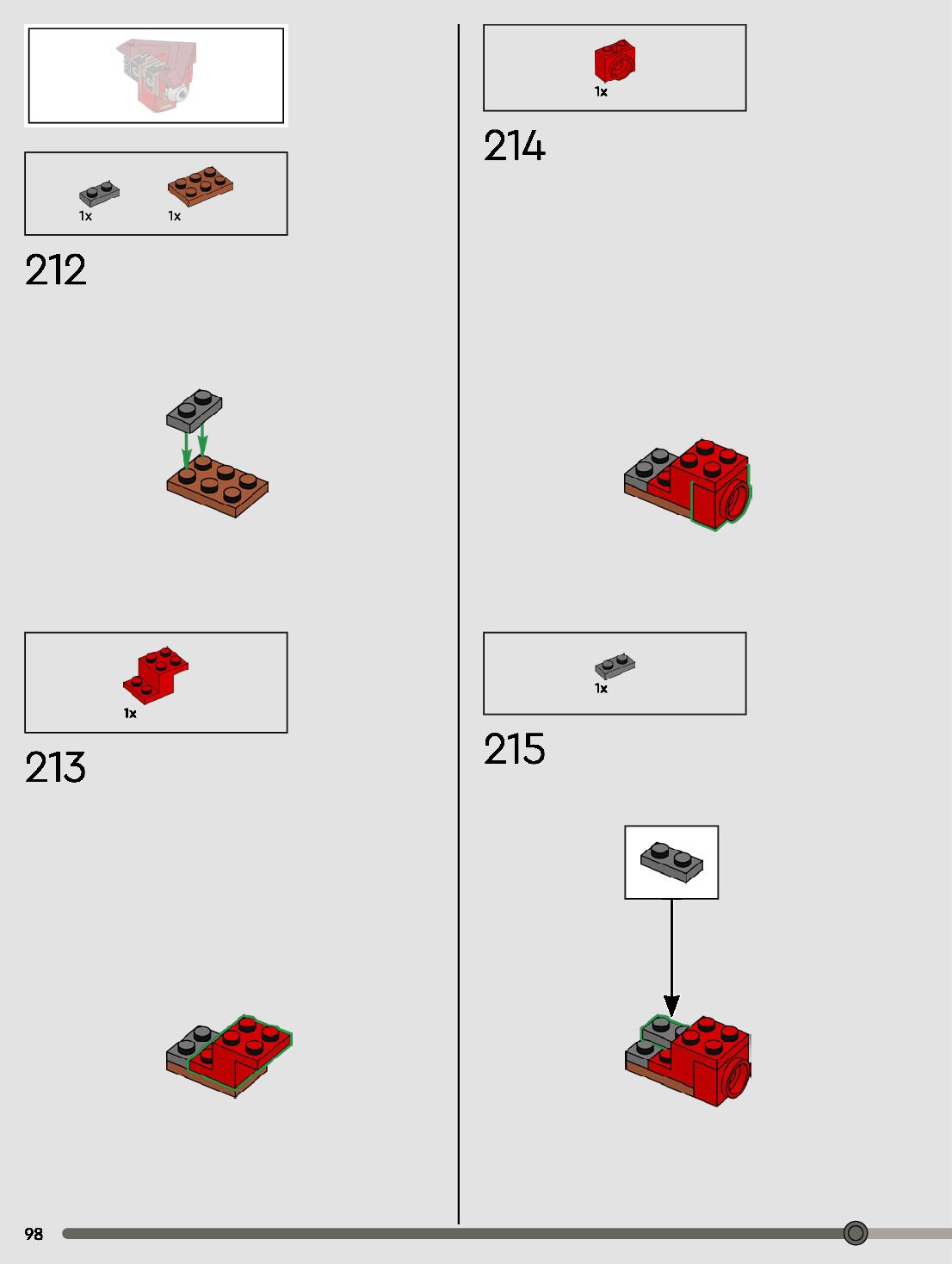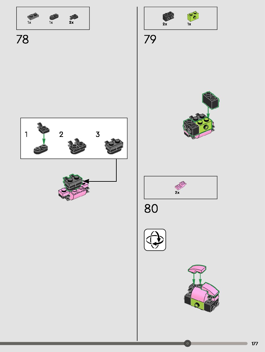The assembly guide is prepared in a very understandable way for children and adult LEGO enthusiasts. A total of 208 picture galleries are shown, explaining the step-by-step construction stages for 1 different structures.