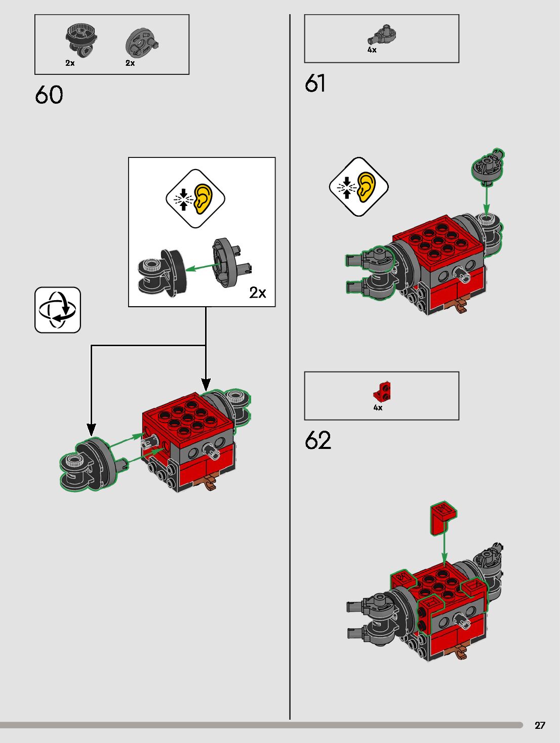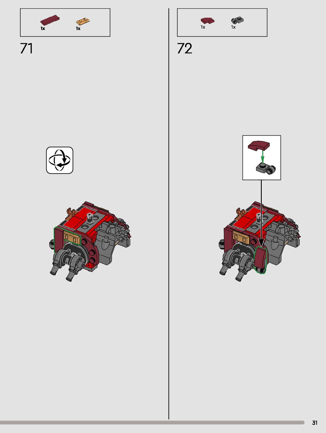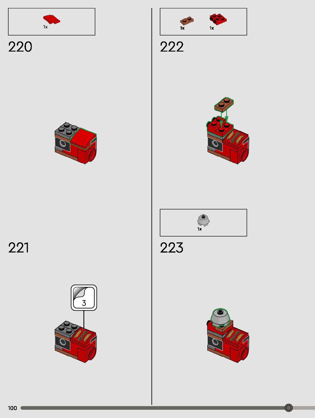 The assembly guide is prepared in a very understandable way for children and adult LEGO enthusiasts. A total of 208 picture galleries are shown, explaining the step-by-step construction stages for 1 different structures.