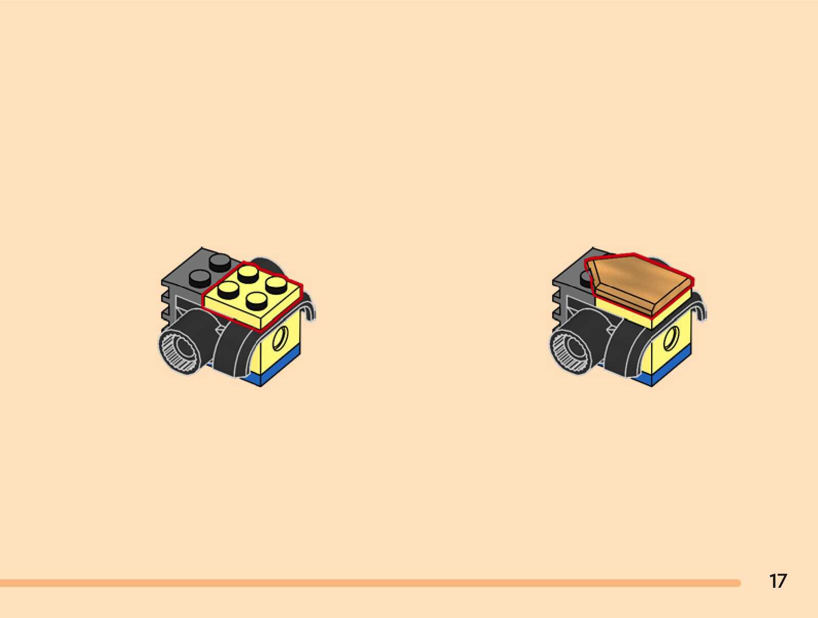 The assembly guide is prepared in a very understandable way for children and adult LEGO enthusiasts. A total of 144 picture galleries are shown, explaining the step-by-step construction stages for 2 different structures.