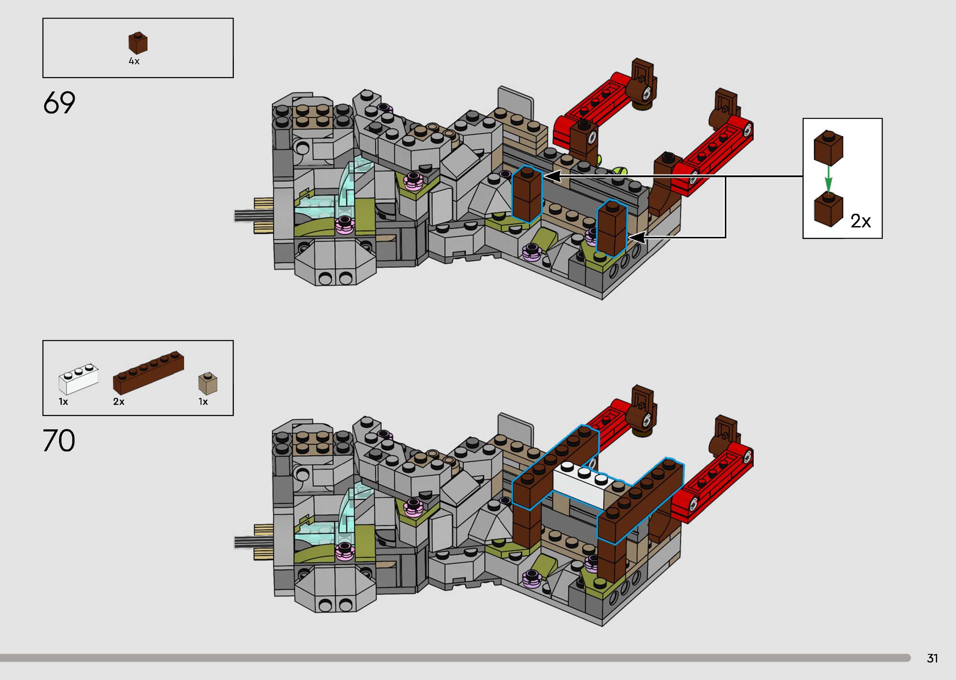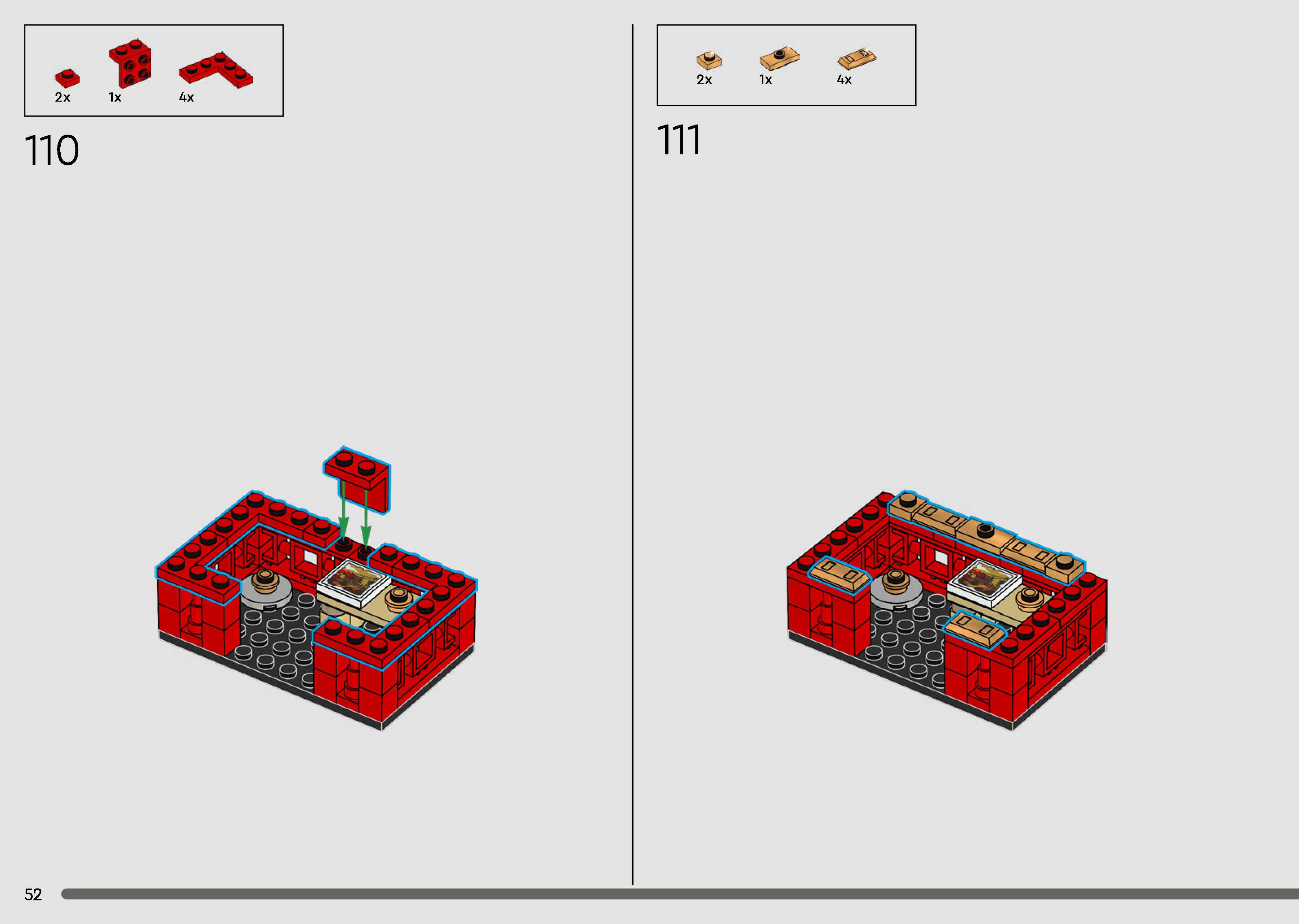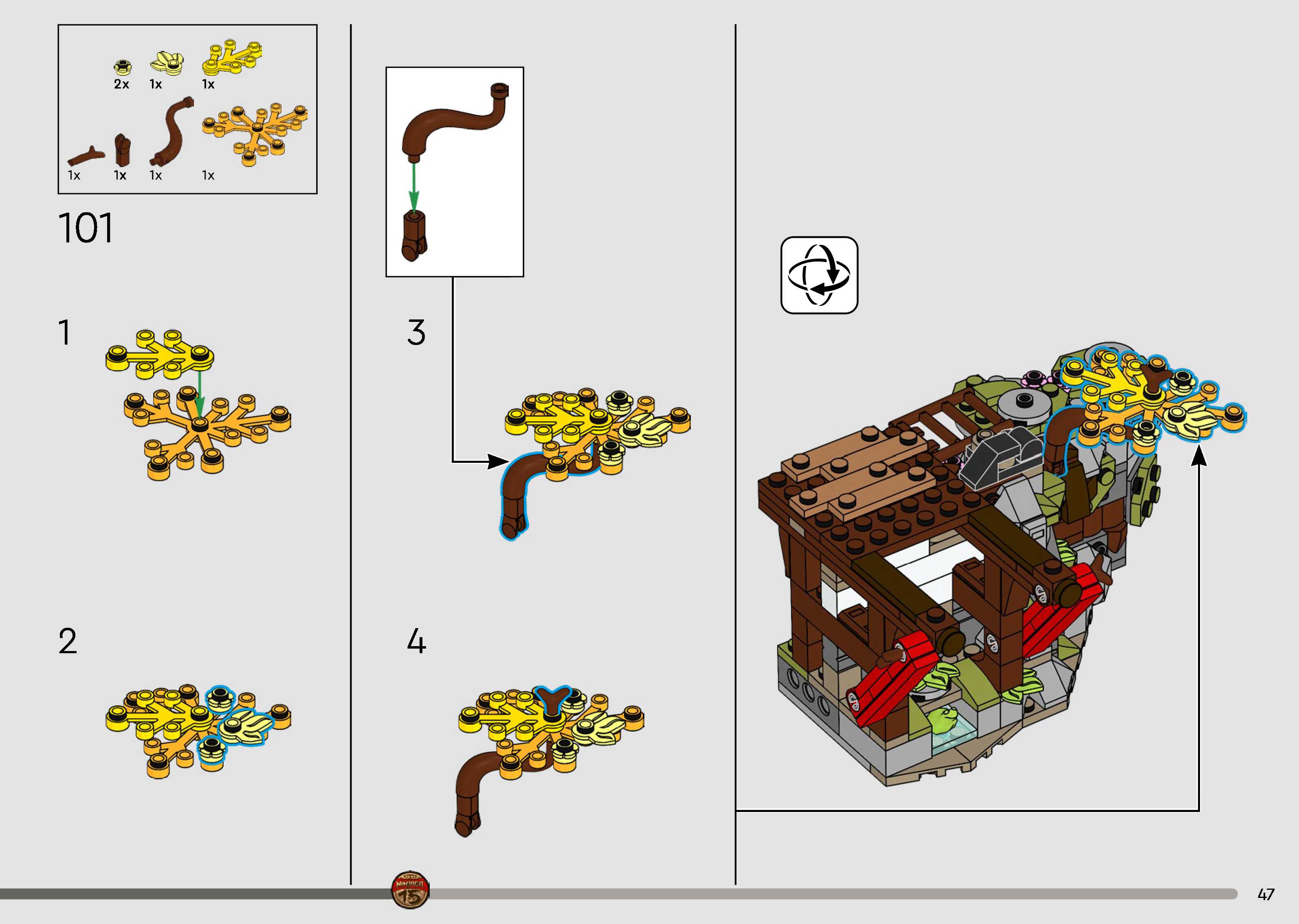 The assembly guide is prepared in a very understandable way for children and adult LEGO enthusiasts. A total of 72 picture galleries are shown, explaining the step-by-step construction stages for 1 different structures.