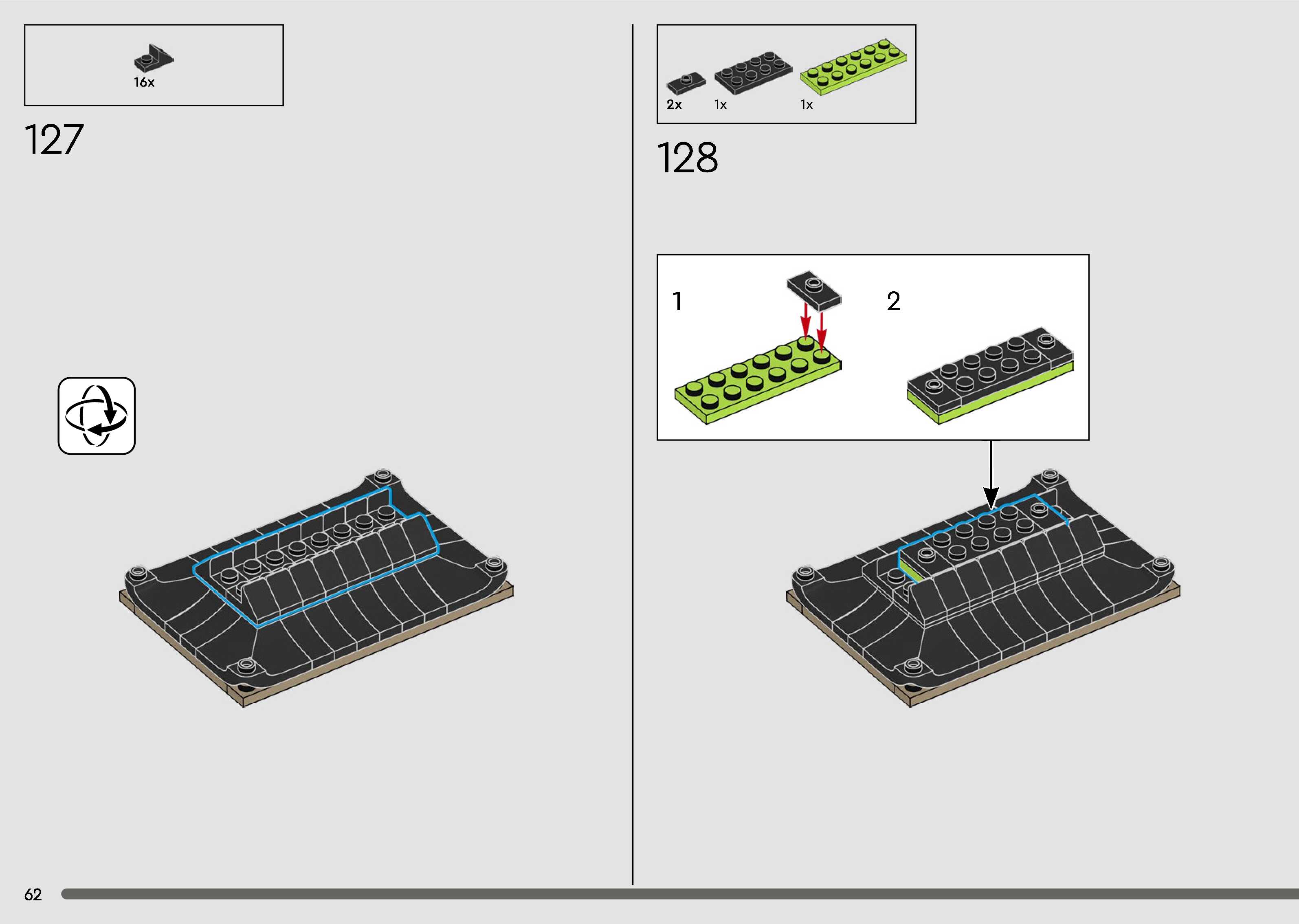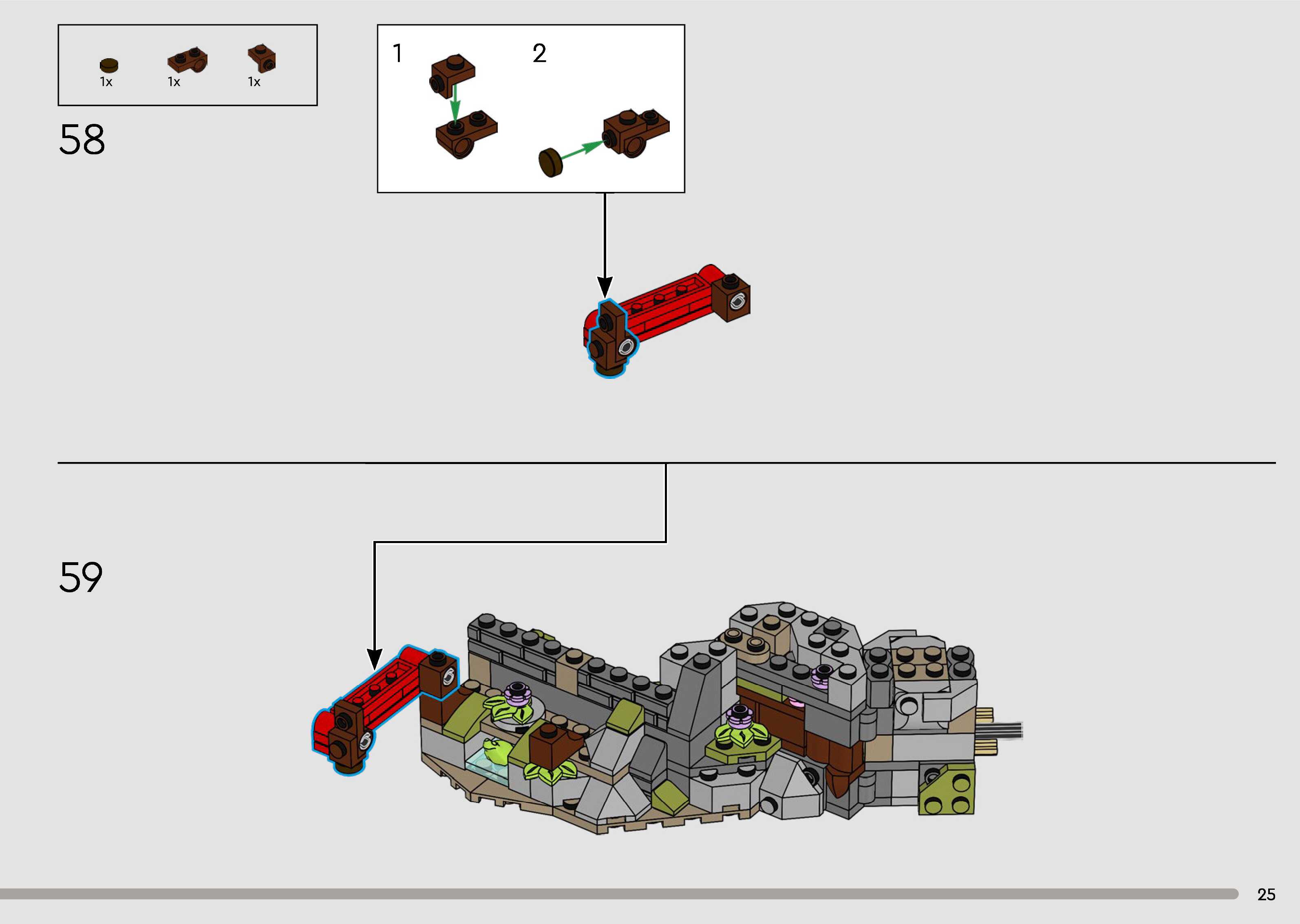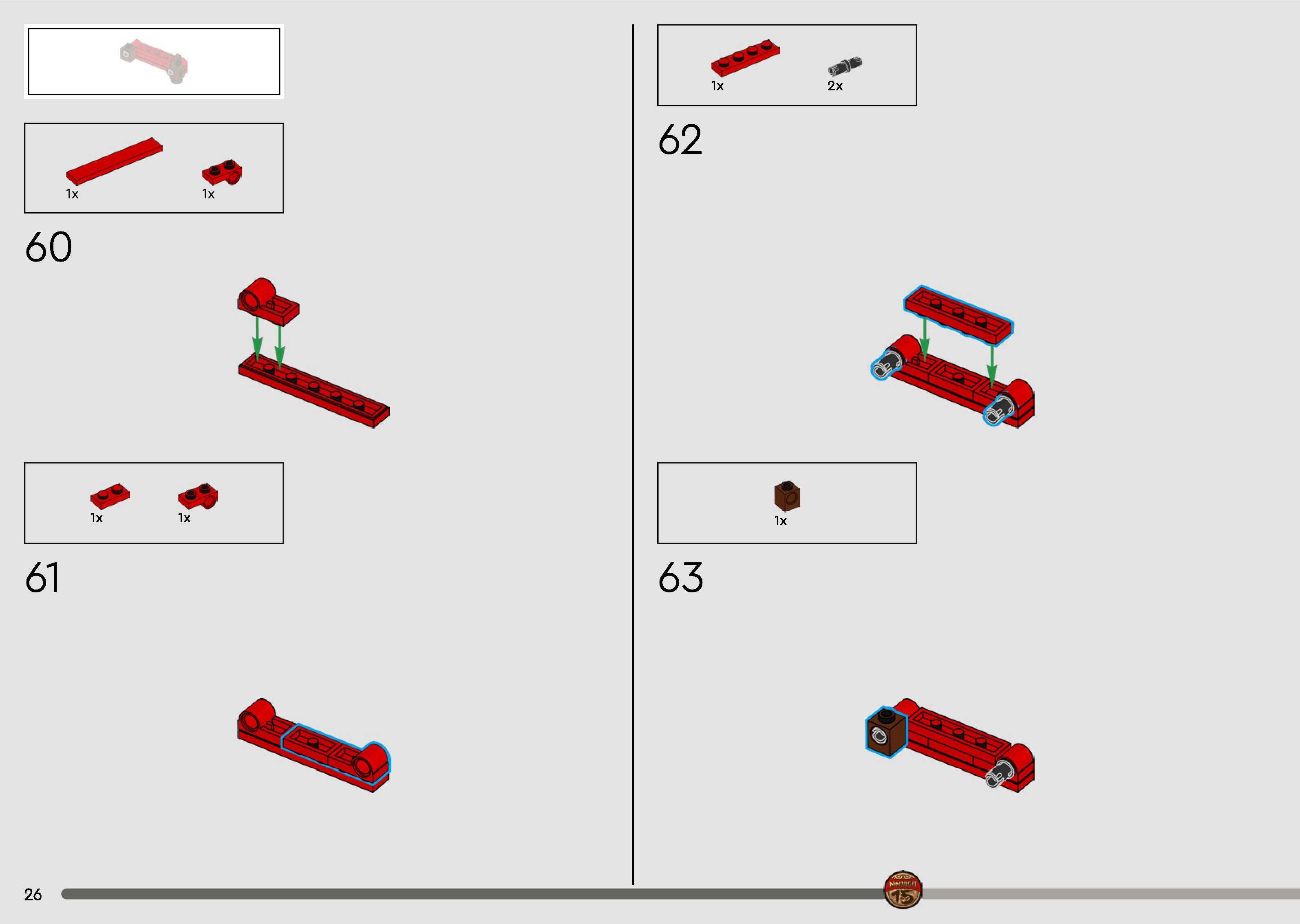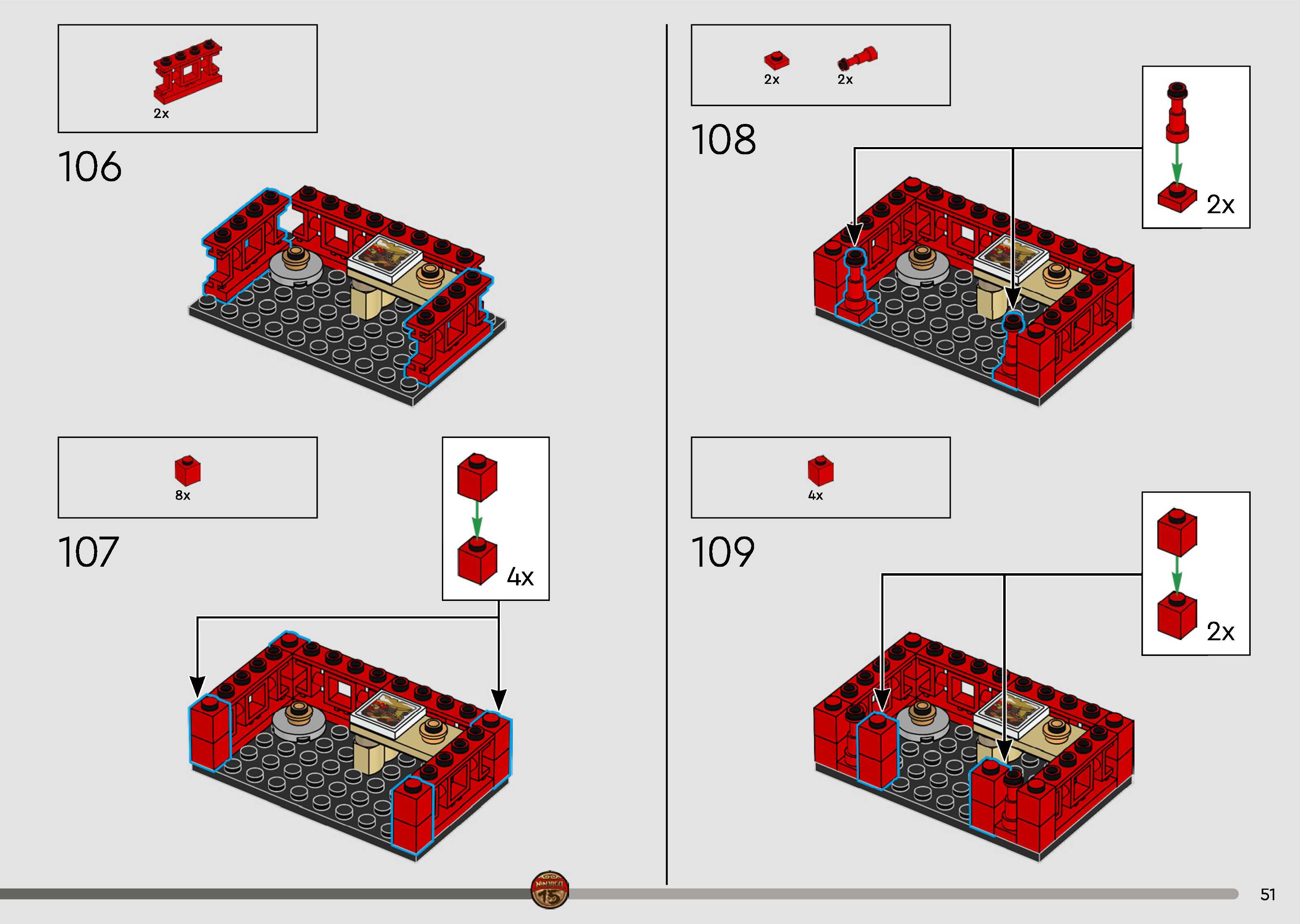 The assembly guide is prepared in a very understandable way for children and adult LEGO enthusiasts. A total of 72 picture galleries are shown, explaining the step-by-step construction stages for 1 different structures.