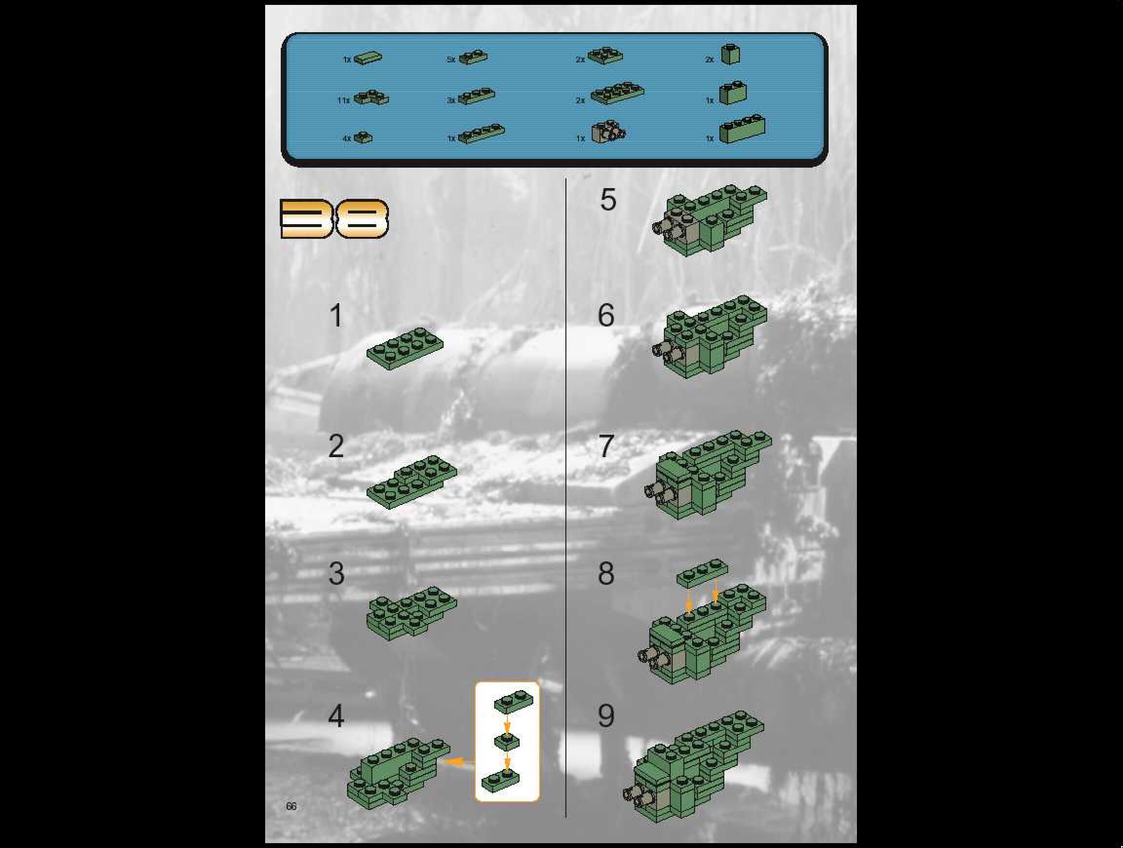 The assembly guide is prepared in a very understandable way for children and adult LEGO enthusiasts. A total of 68 picture galleries are shown, explaining the step-by-step construction stages for 1 different structures.