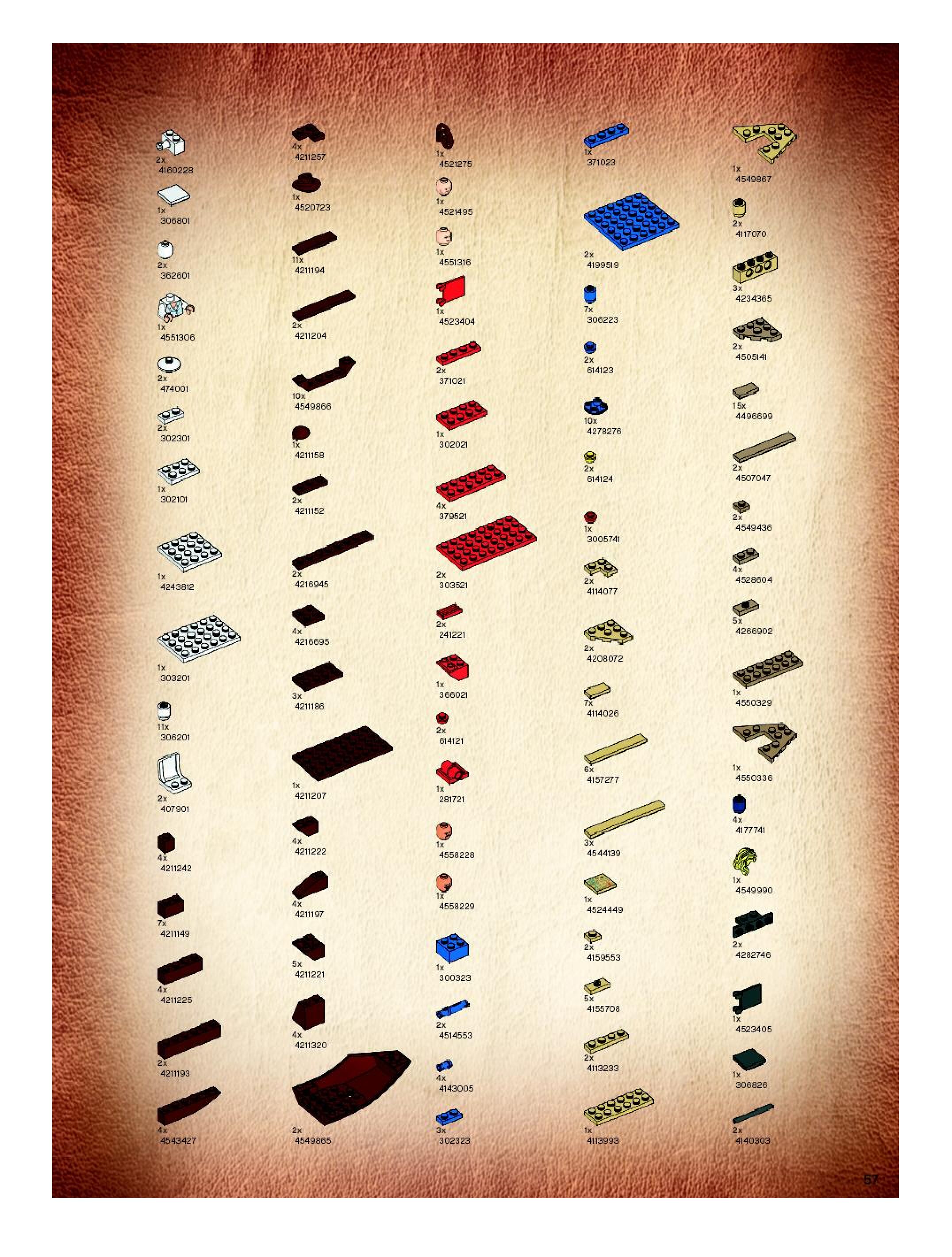 The assembly guide is prepared in a very understandable way for children and adult LEGO enthusiasts. A total of 64 picture galleries are shown, explaining the step-by-step construction stages for 1 different structures.