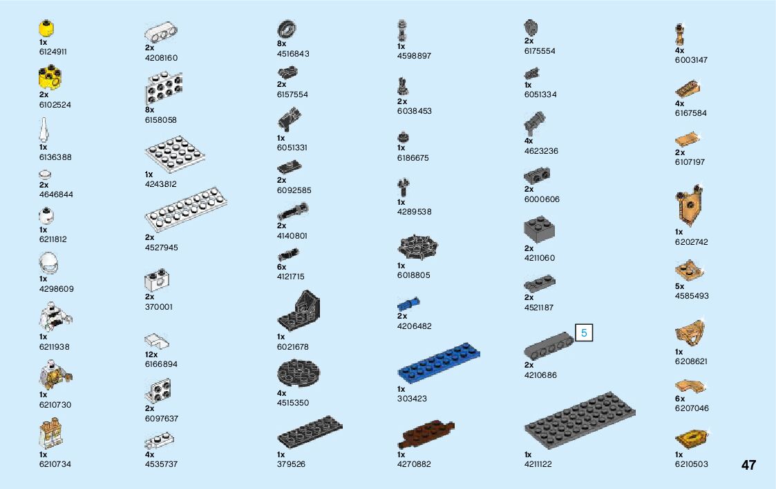The assembly guide is prepared in a very understandable way for children and adult LEGO enthusiasts. A total of 208 picture galleries are shown, explaining the step-by-step construction stages for 1 different structures.