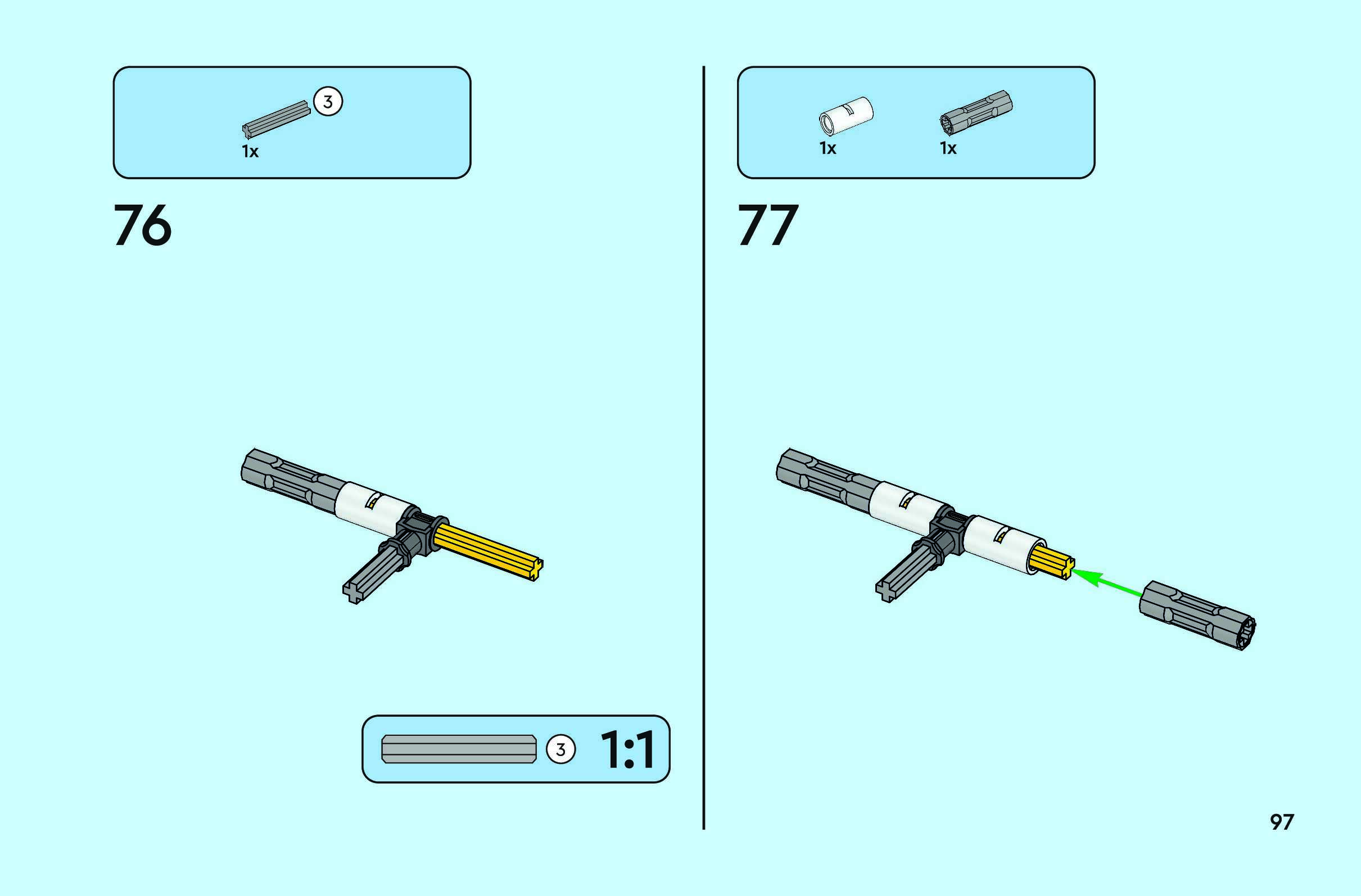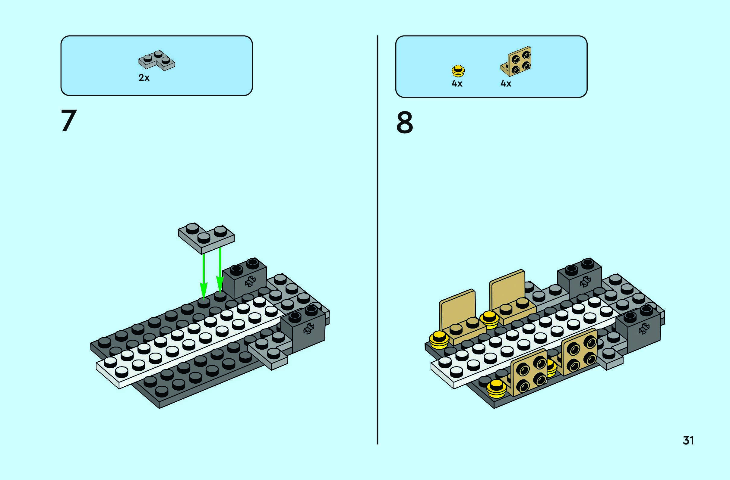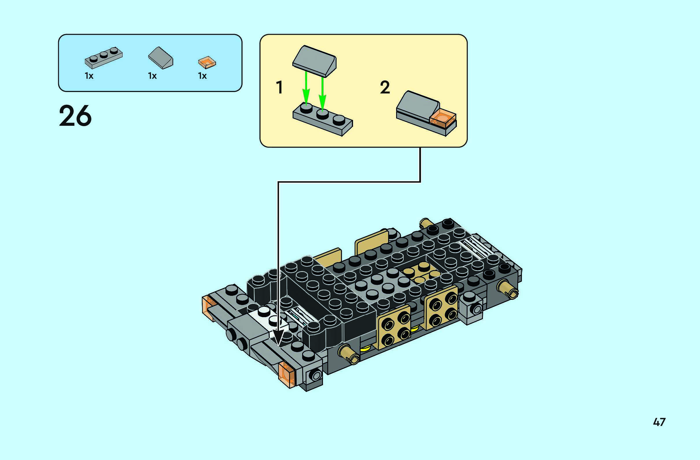 The assembly guide is prepared in a very understandable way for children and adult LEGO enthusiasts. A total of 164 picture galleries are shown, explaining the step-by-step construction stages for 2 different structures.