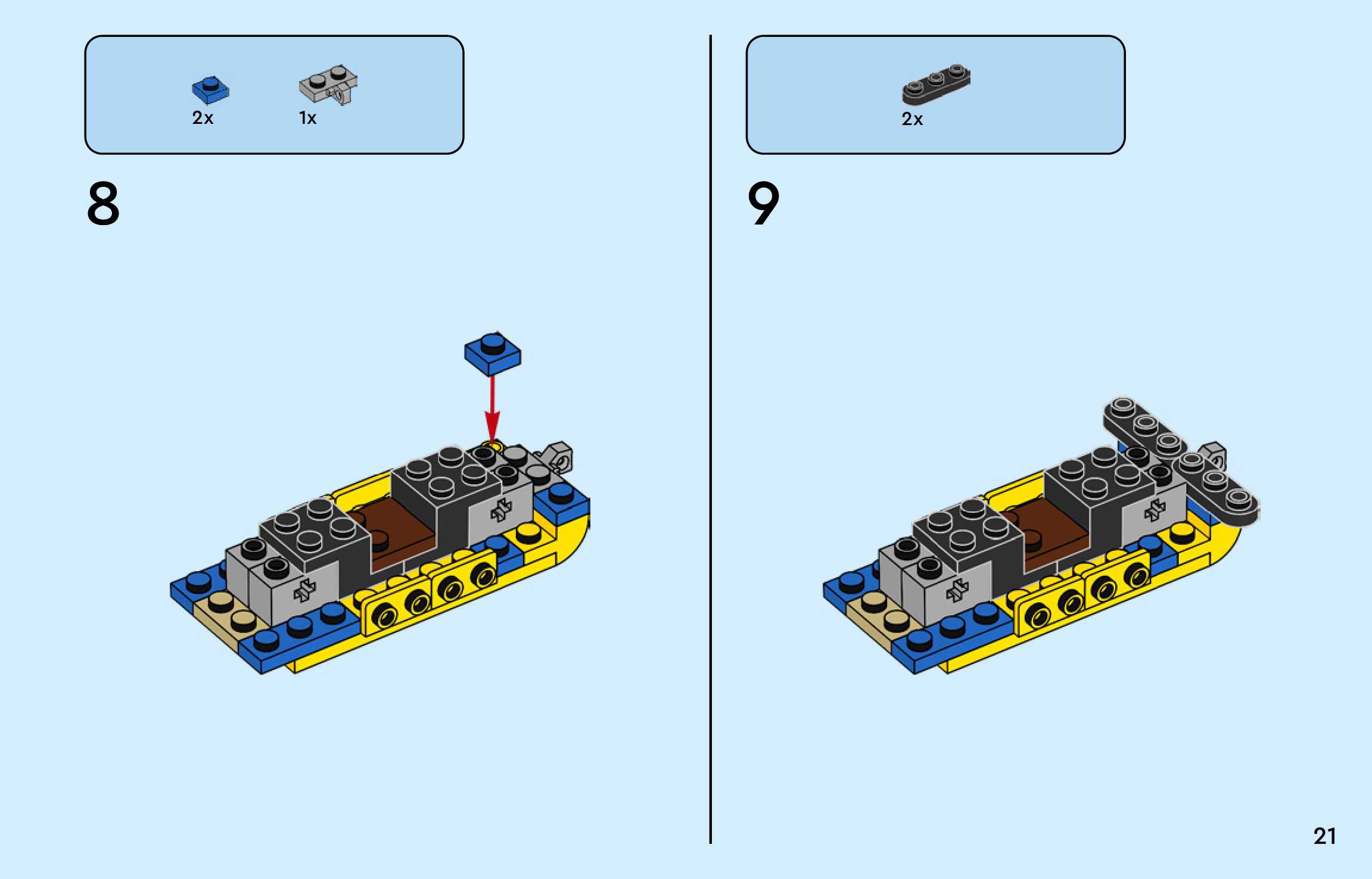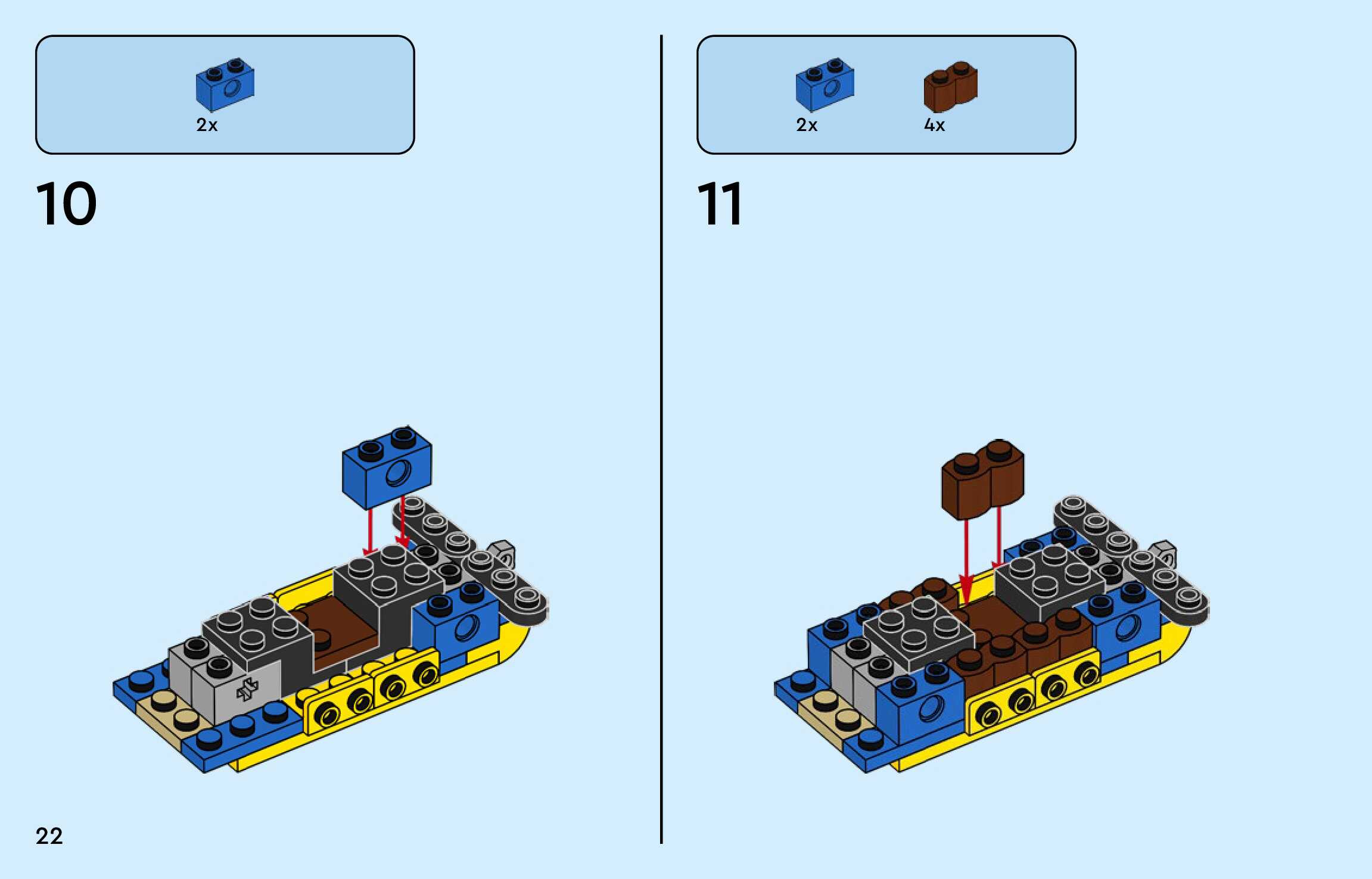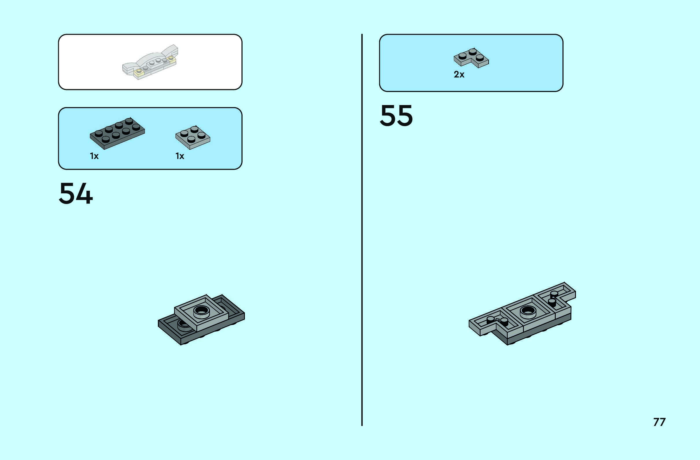 The assembly guide is prepared in a very understandable way for children and adult LEGO enthusiasts. A total of 164 picture galleries are shown, explaining the step-by-step construction stages for 2 different structures.