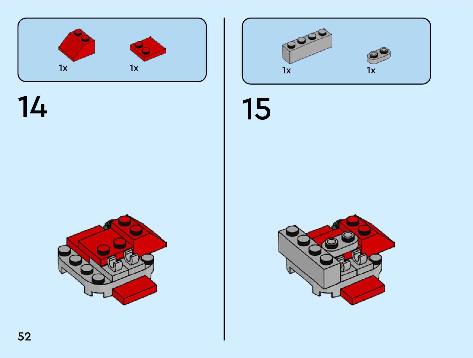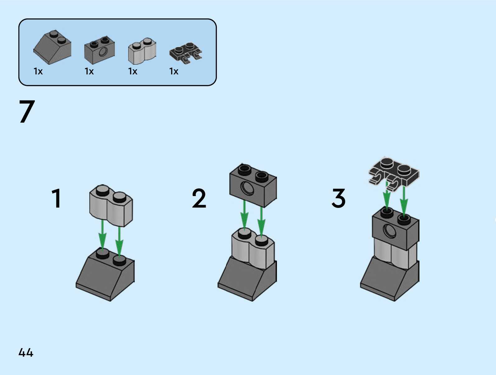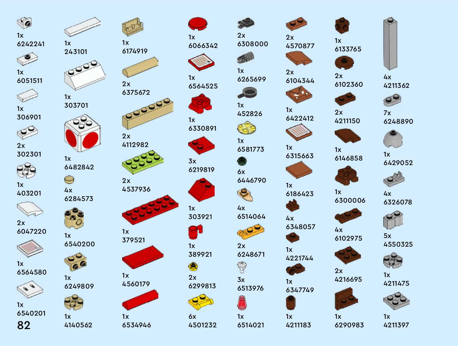 The assembly guide is prepared in a very understandable way for children and adult LEGO enthusiasts. A total of 84 picture galleries are shown, explaining the step-by-step construction stages for 1 different structures.