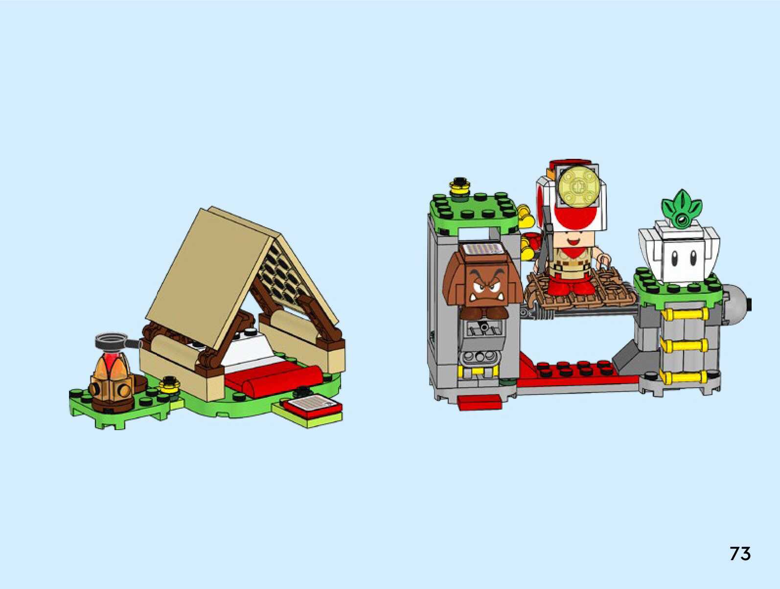 On this page you can find the original construction manual for the LEGO 72040 set. With the assembly manual you can easily learn how to build the Captain Toad's Camp step by step. The set was released in 2025.