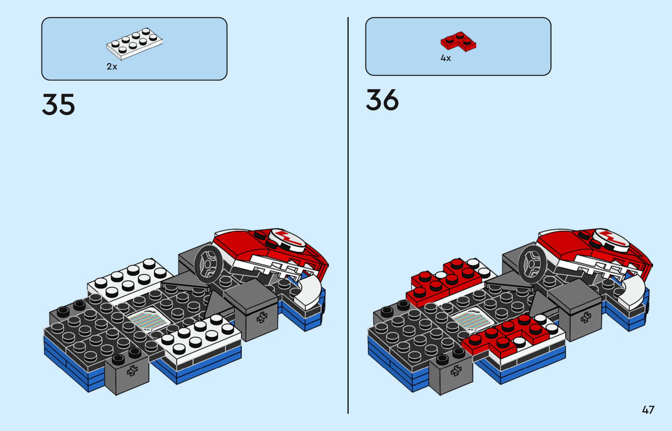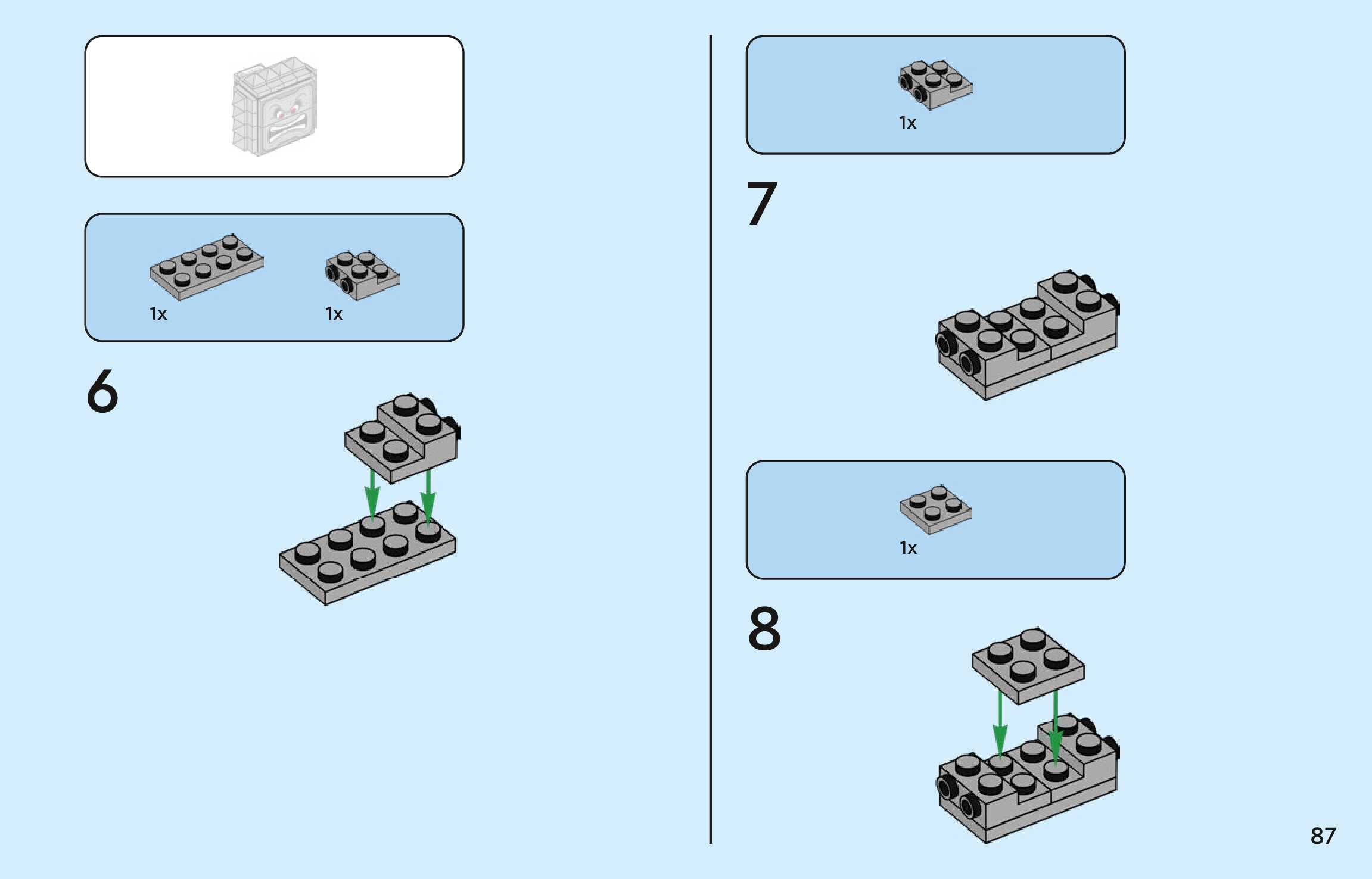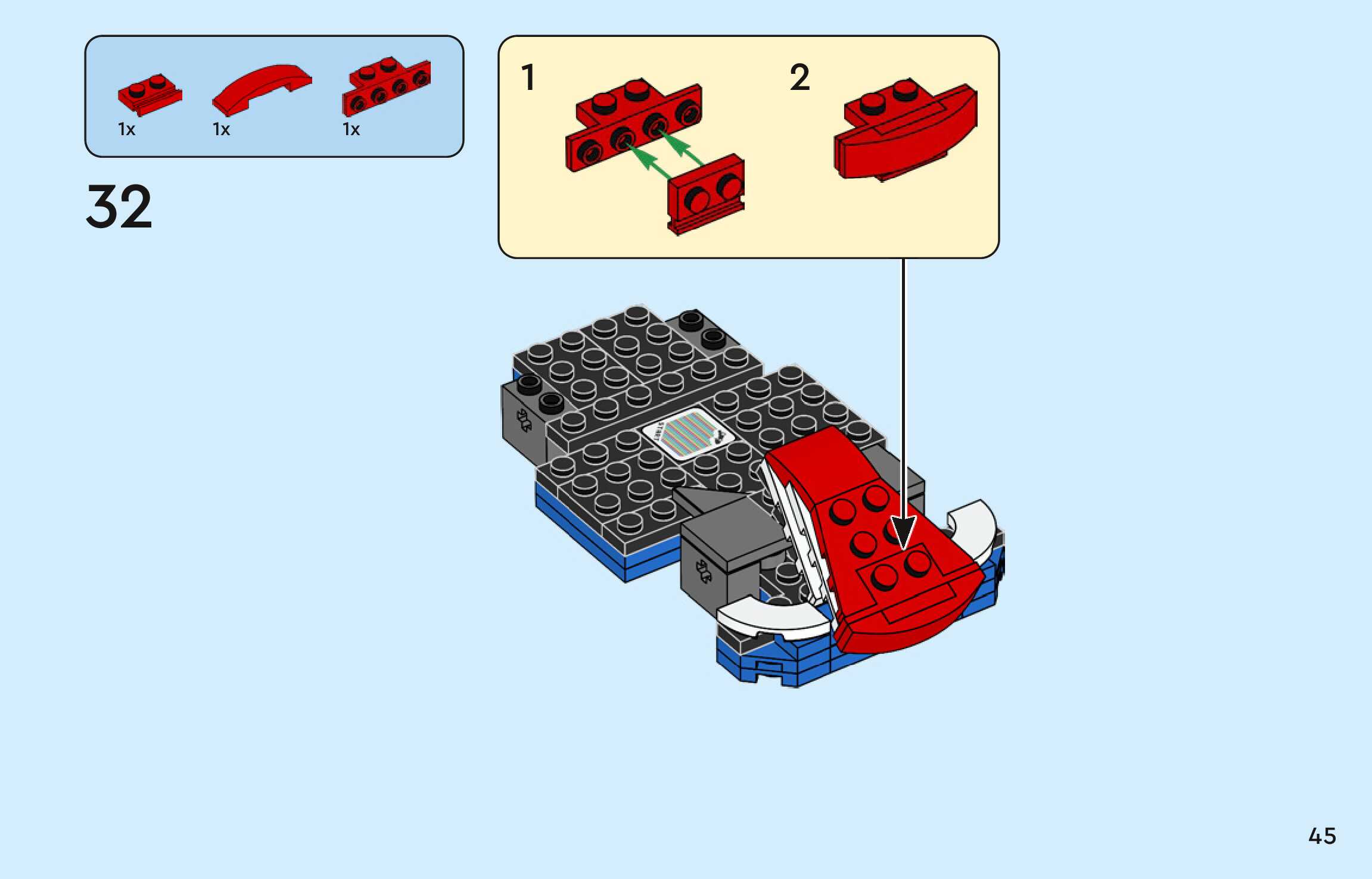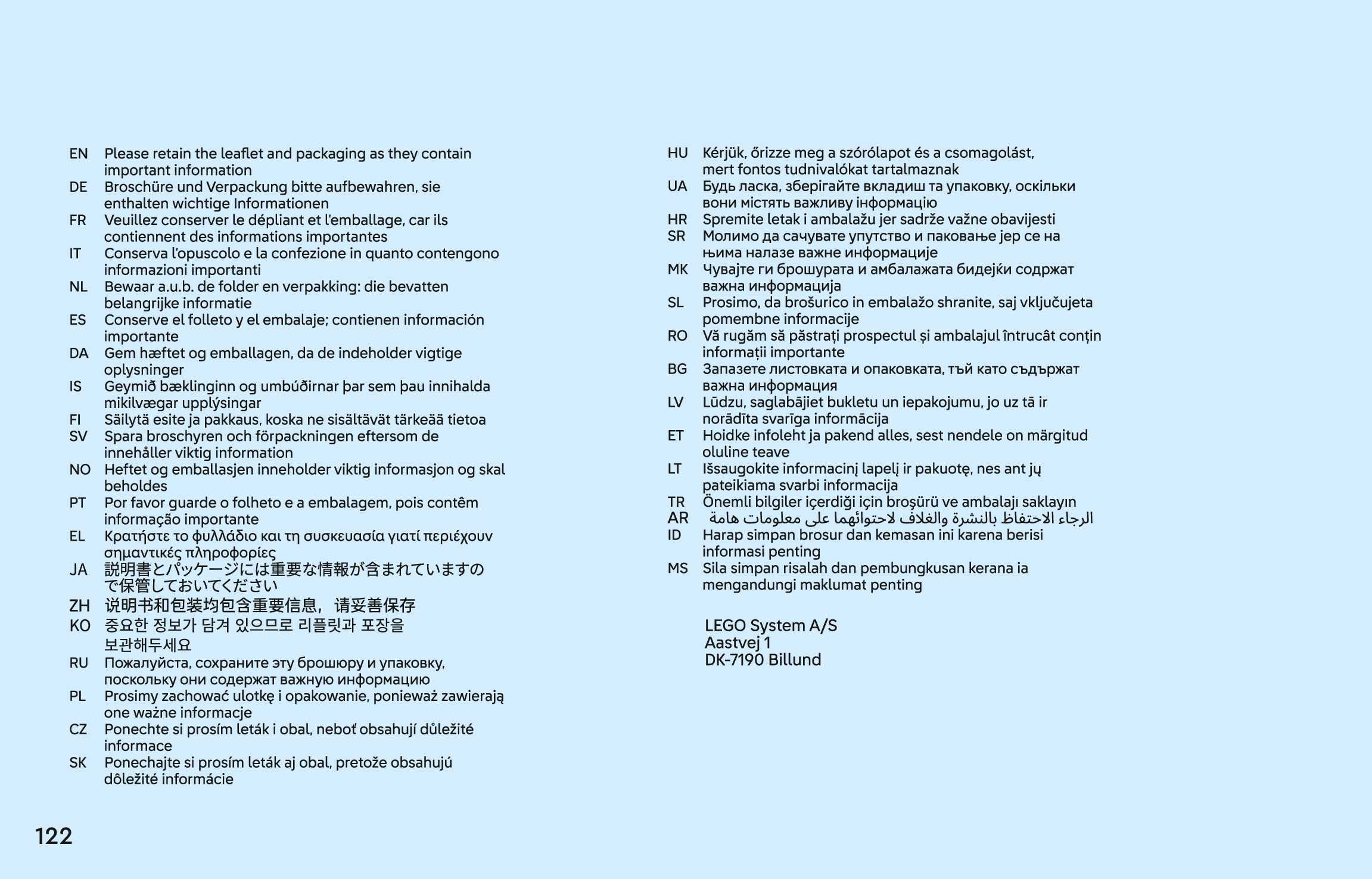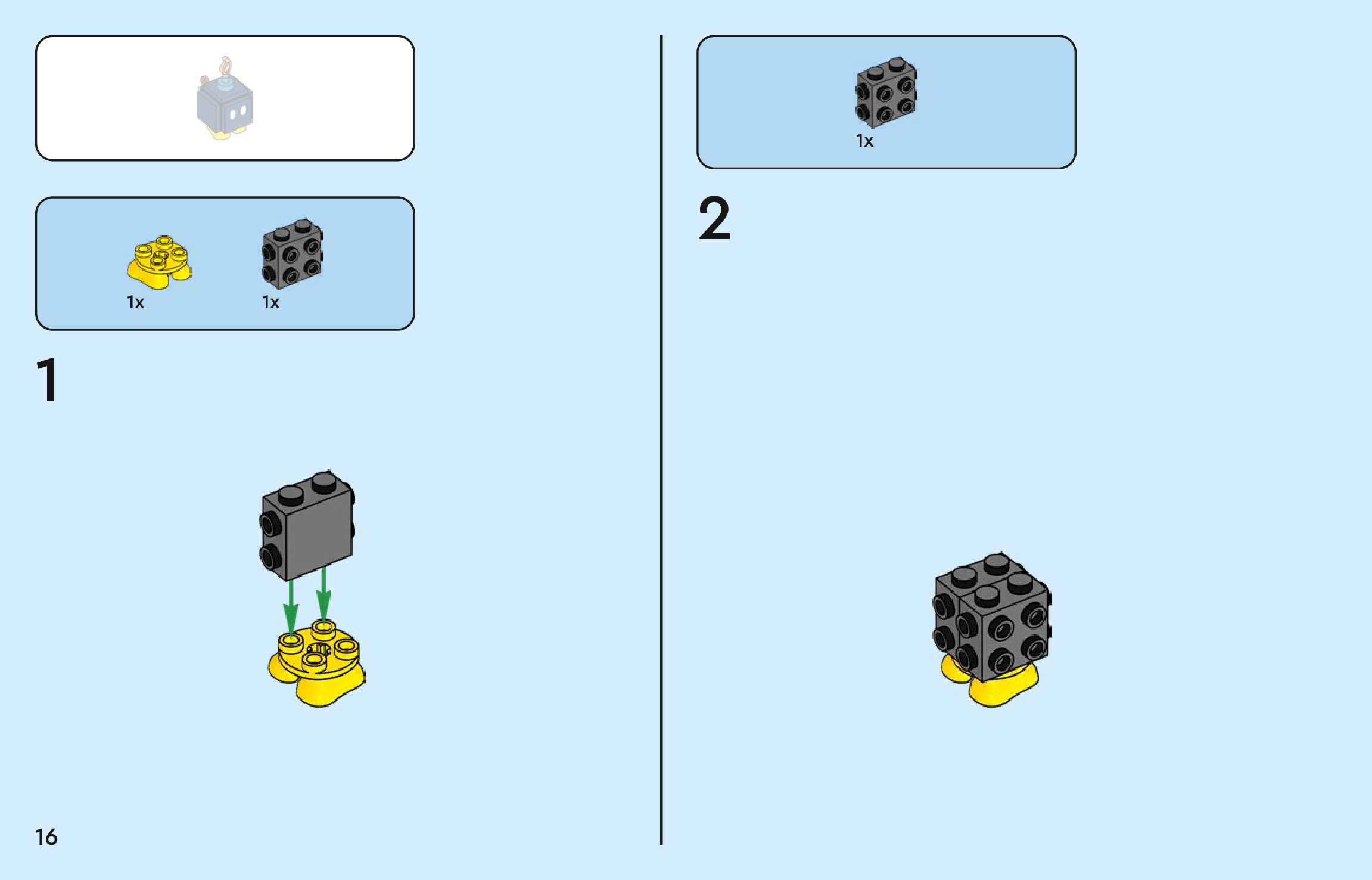 The assembly guide is prepared in a very understandable way for children and adult LEGO enthusiasts. A total of 128 picture galleries are shown, explaining the step-by-step construction stages for 1 different structures.