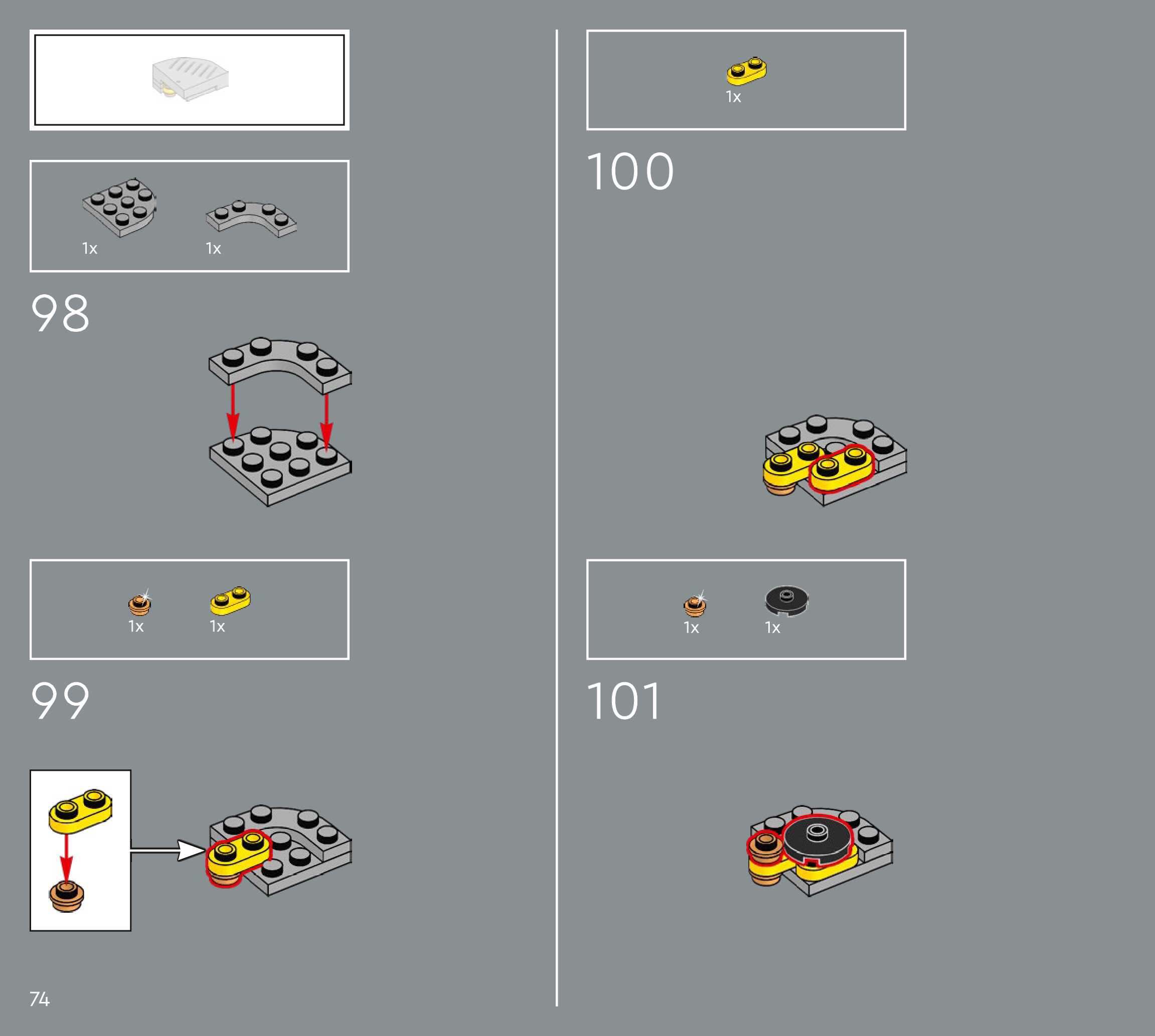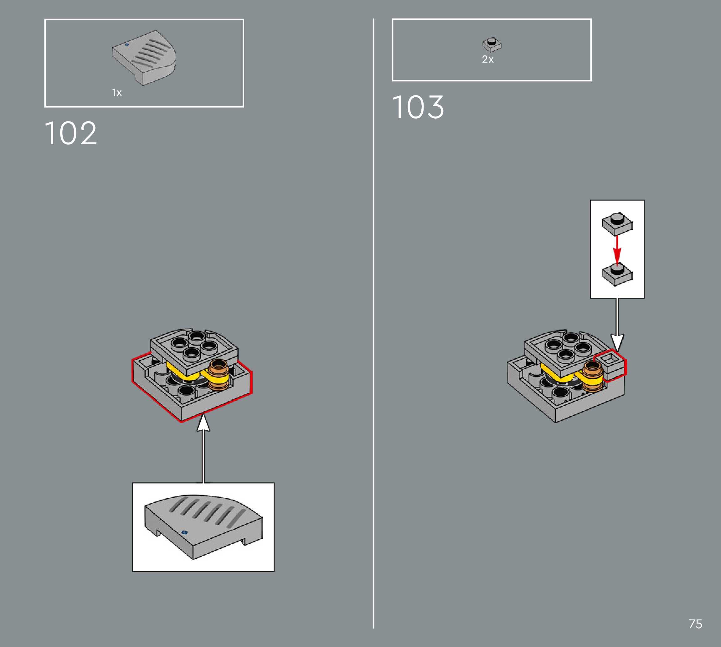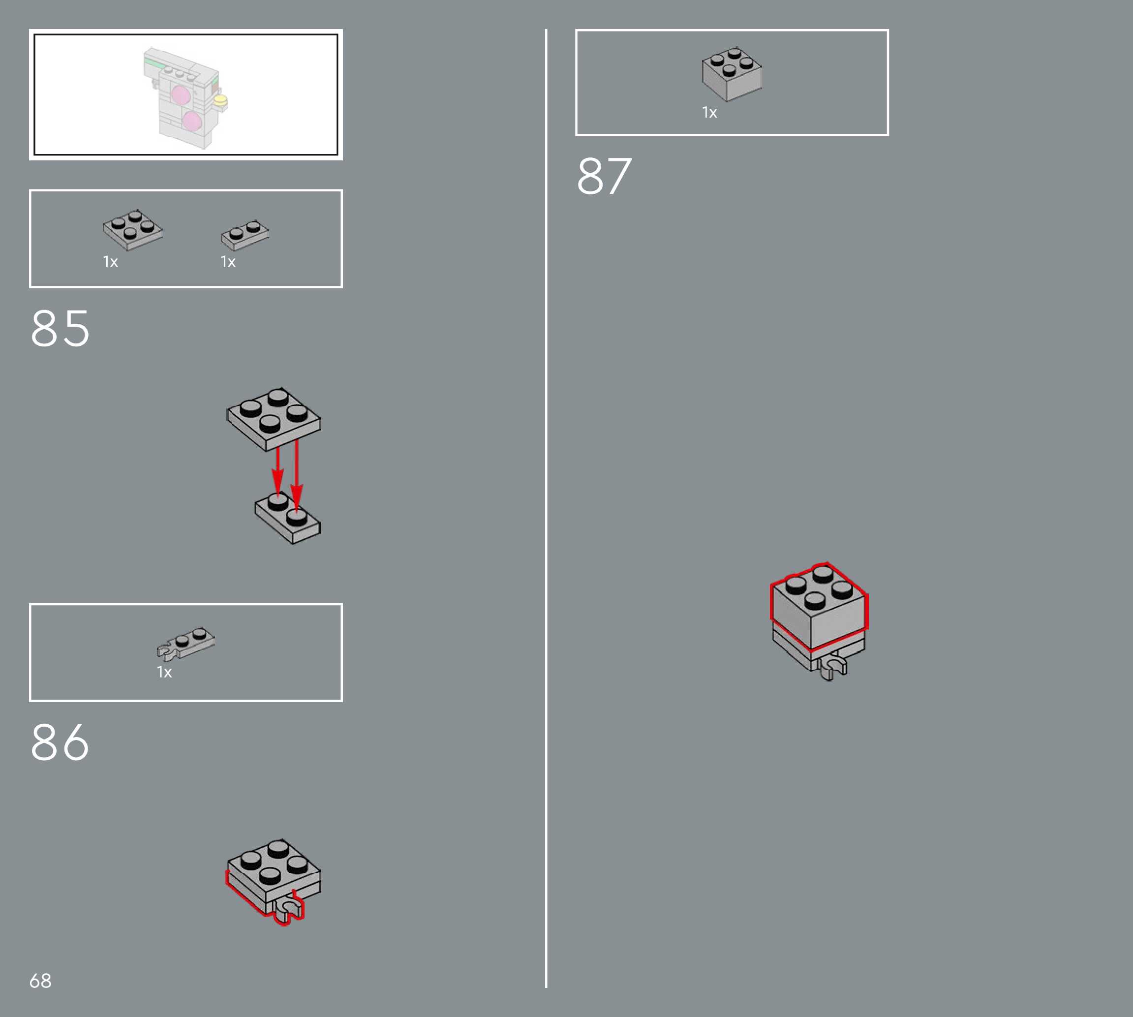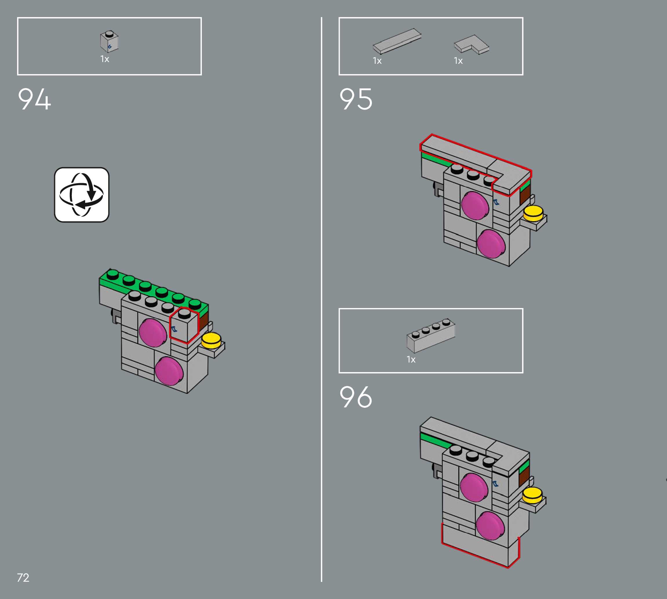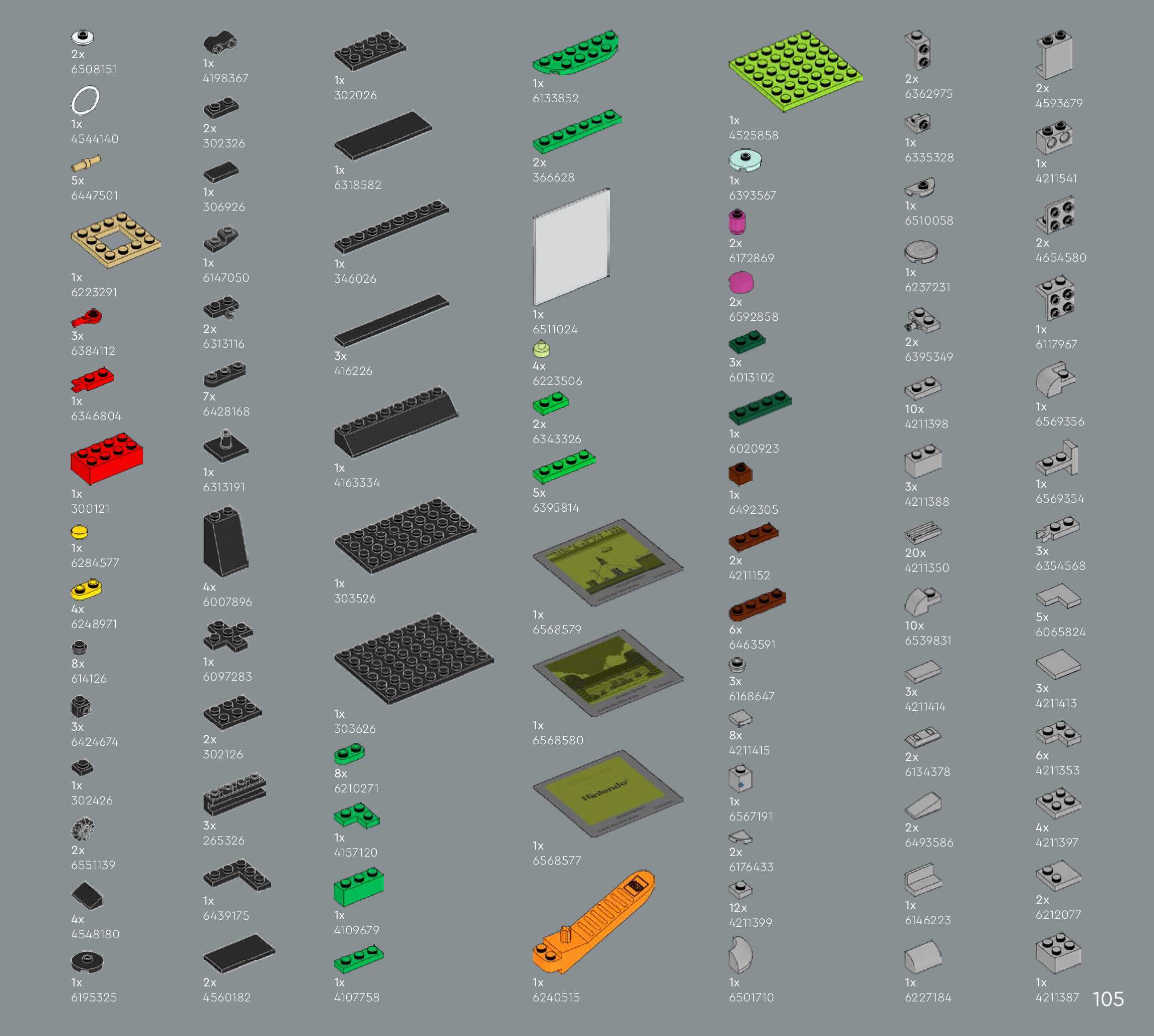 The assembly guide is prepared in a very understandable way for children and adult LEGO enthusiasts. A total of 108 picture galleries are shown, explaining the step-by-step construction stages for 1 different structures.