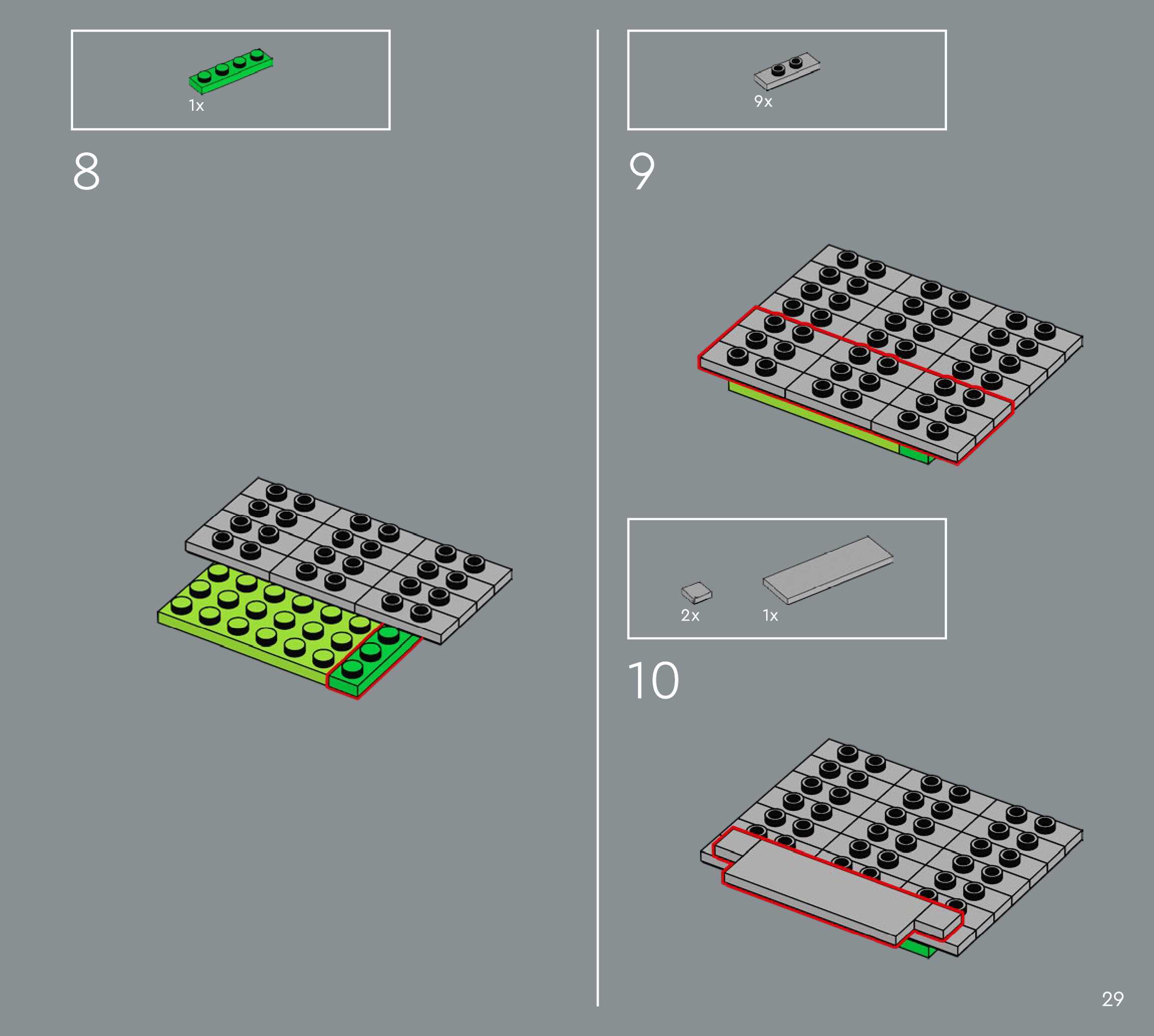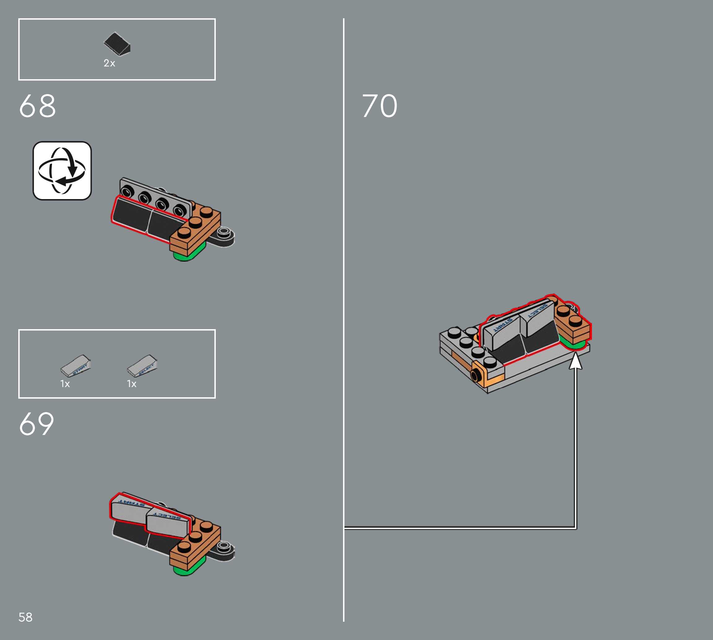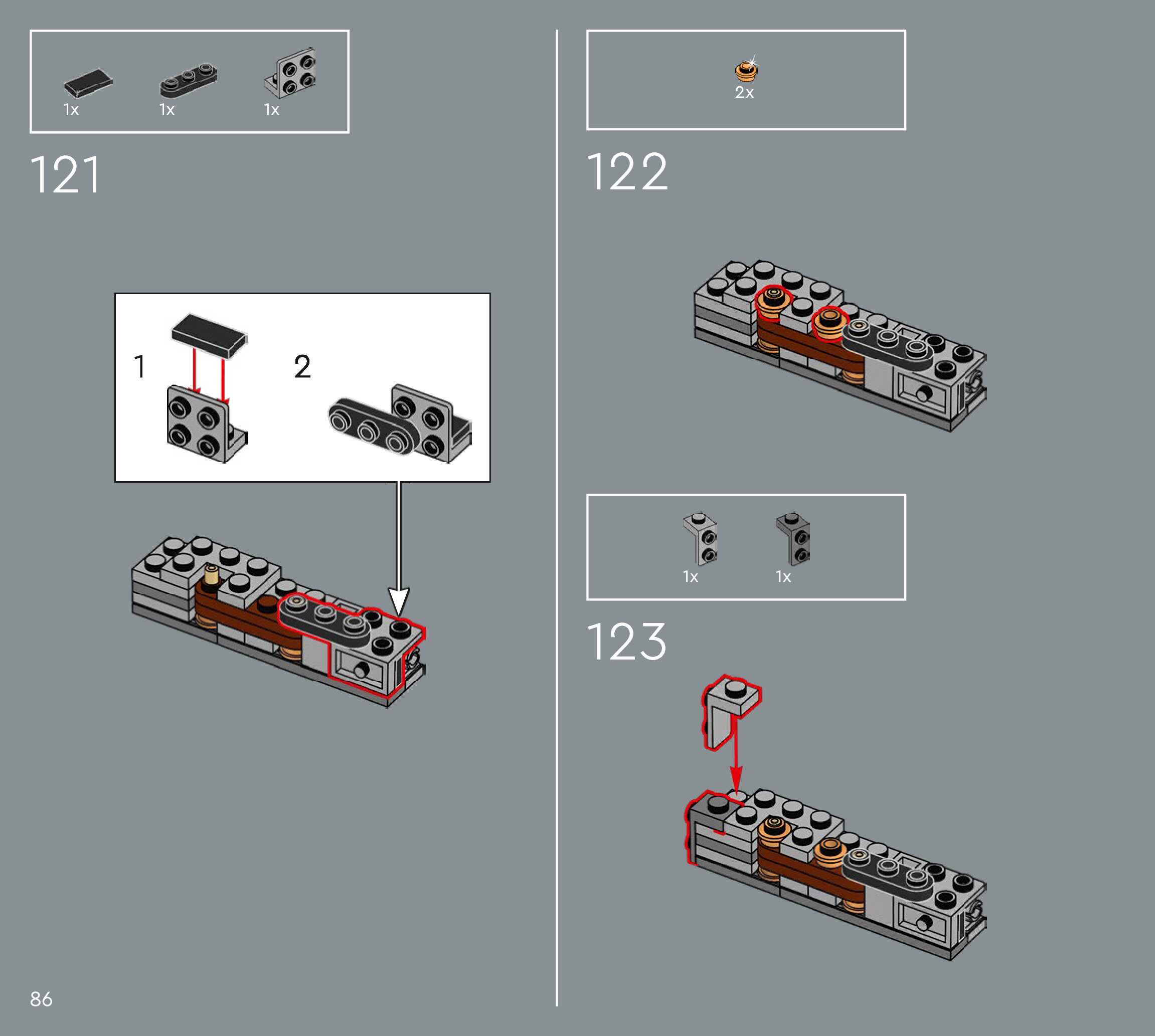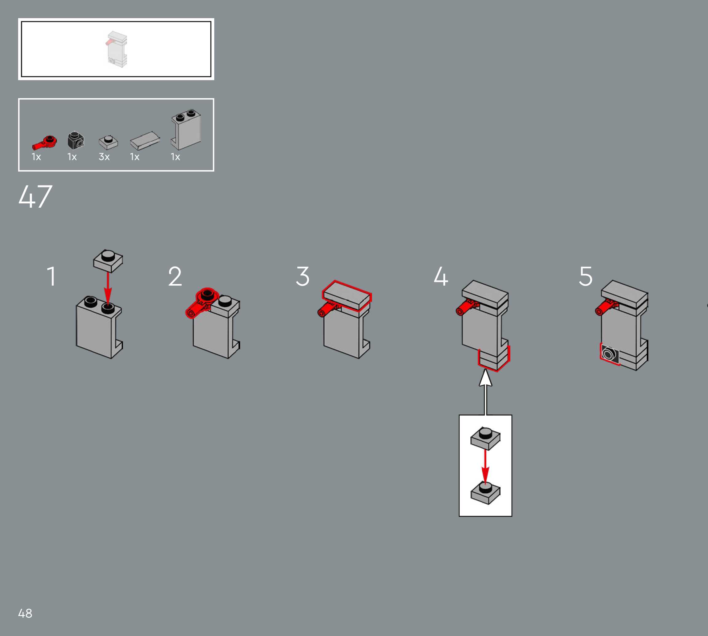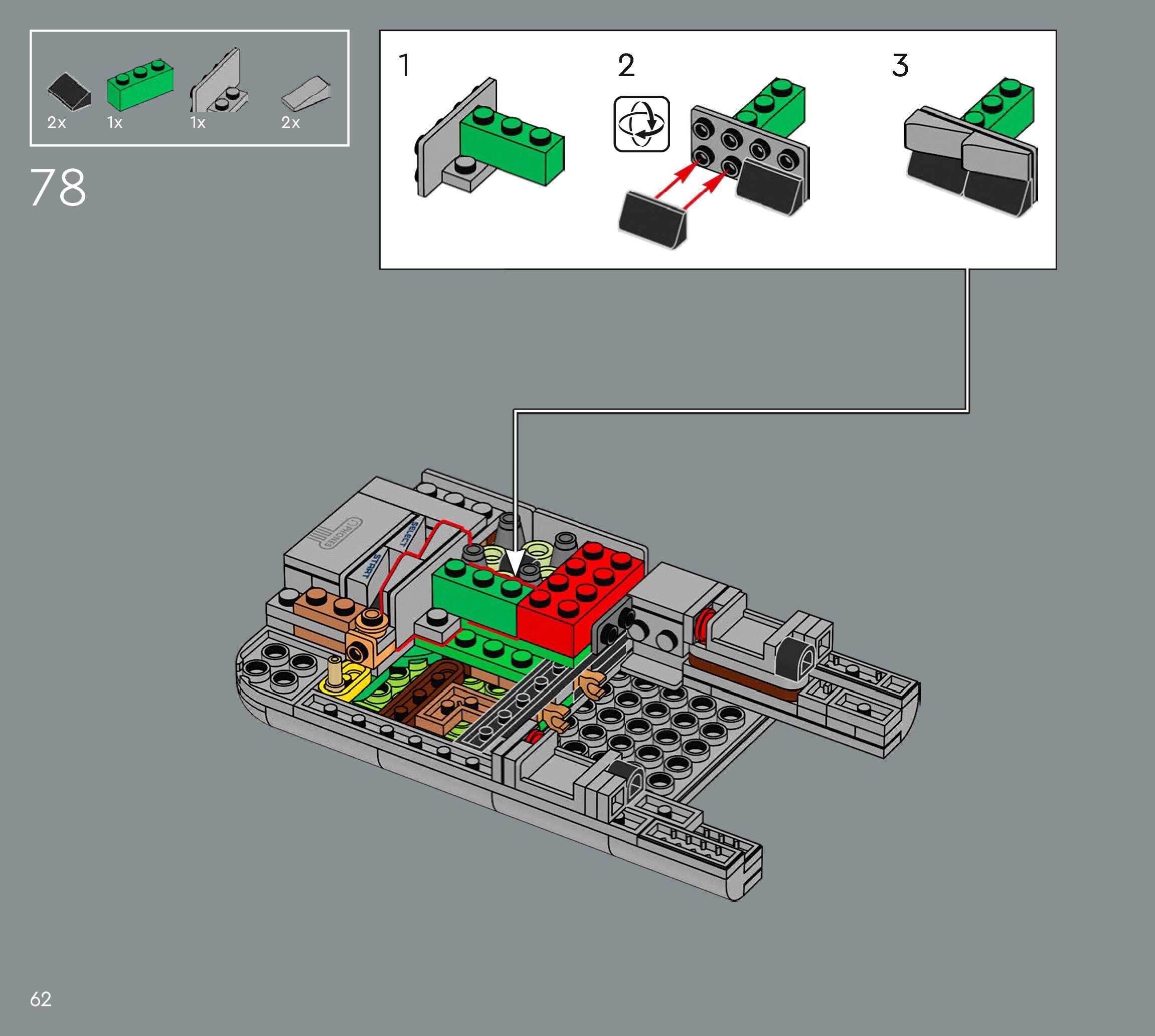 The assembly guide is prepared in a very understandable way for children and adult LEGO enthusiasts. A total of 108 picture galleries are shown, explaining the step-by-step construction stages for 1 different structures.