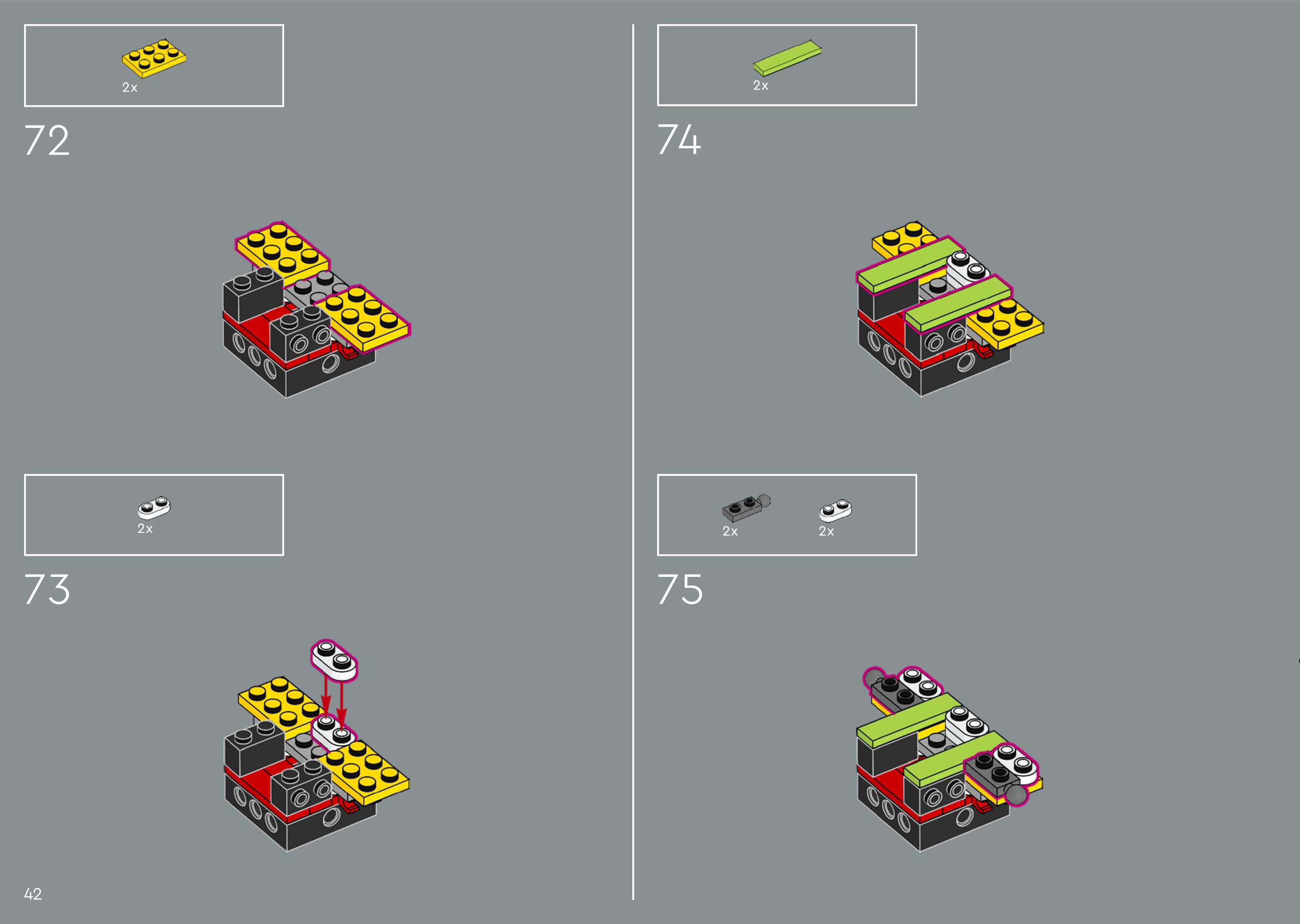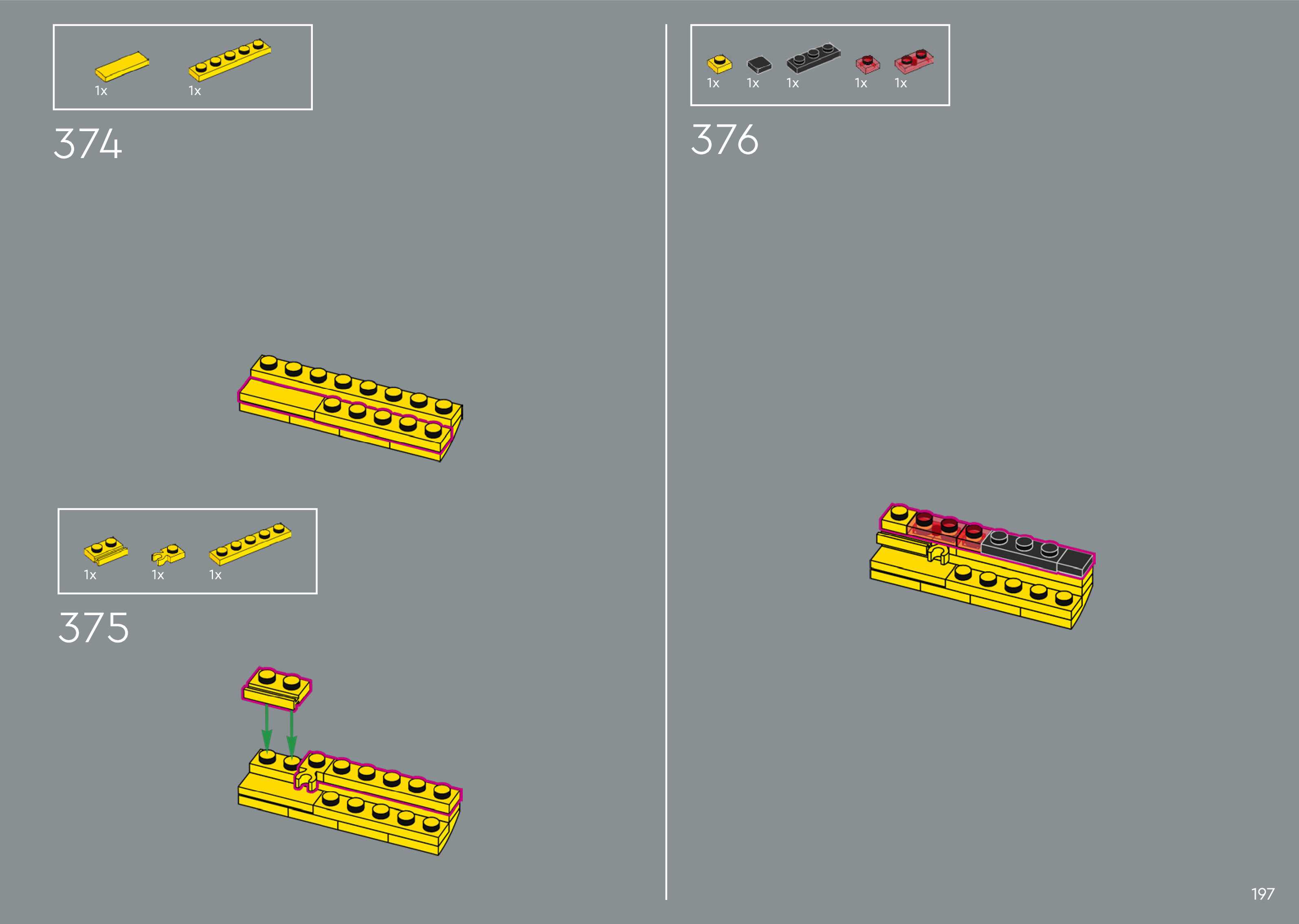 The assembly guide is prepared in a very understandable way for children and adult LEGO enthusiasts. A total of 372 picture galleries are shown, explaining the step-by-step construction stages for 1 different structures.