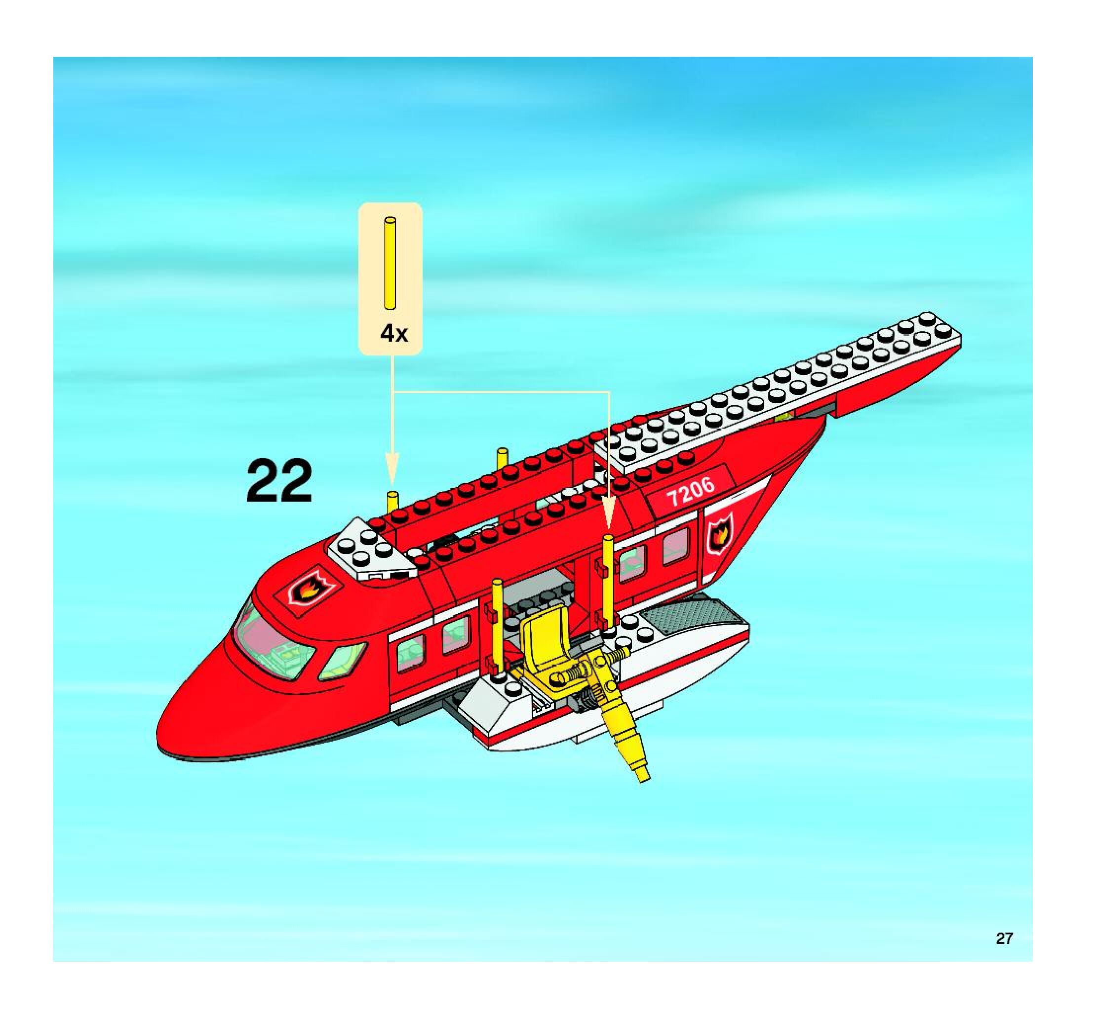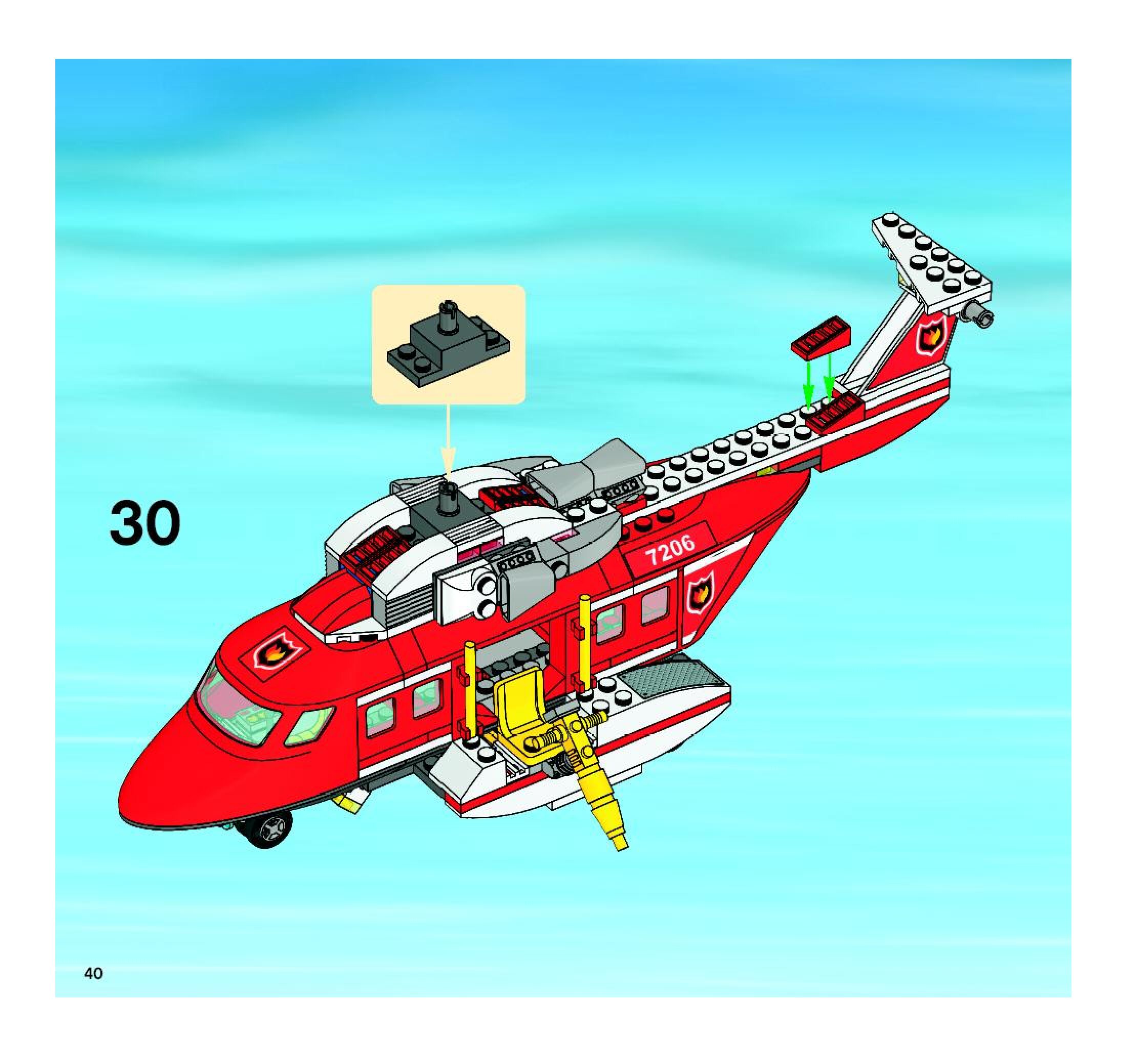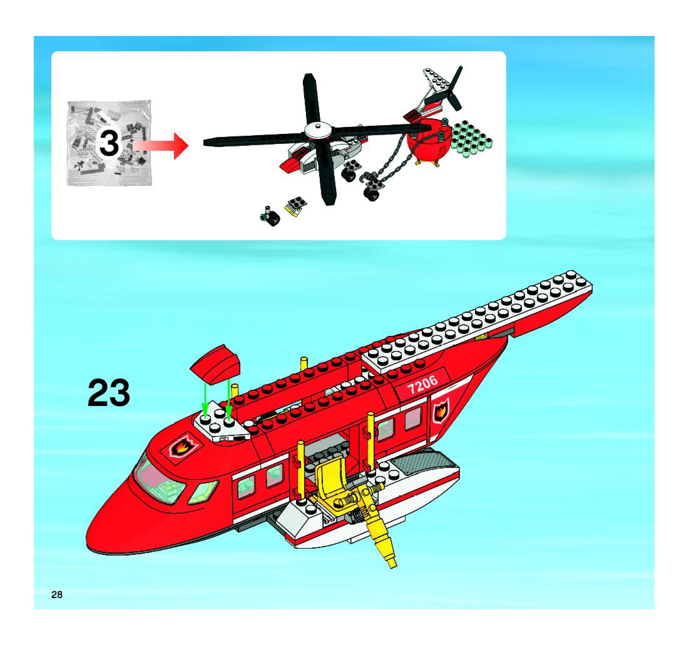 This page shares information about LEGO 7206 Fire Helicopter manual, LEGO 7206 PDF instructions, LEGO 7206 Fire Helicopter building guide online, How to build 7206 Fire Helicopter LEGO.
