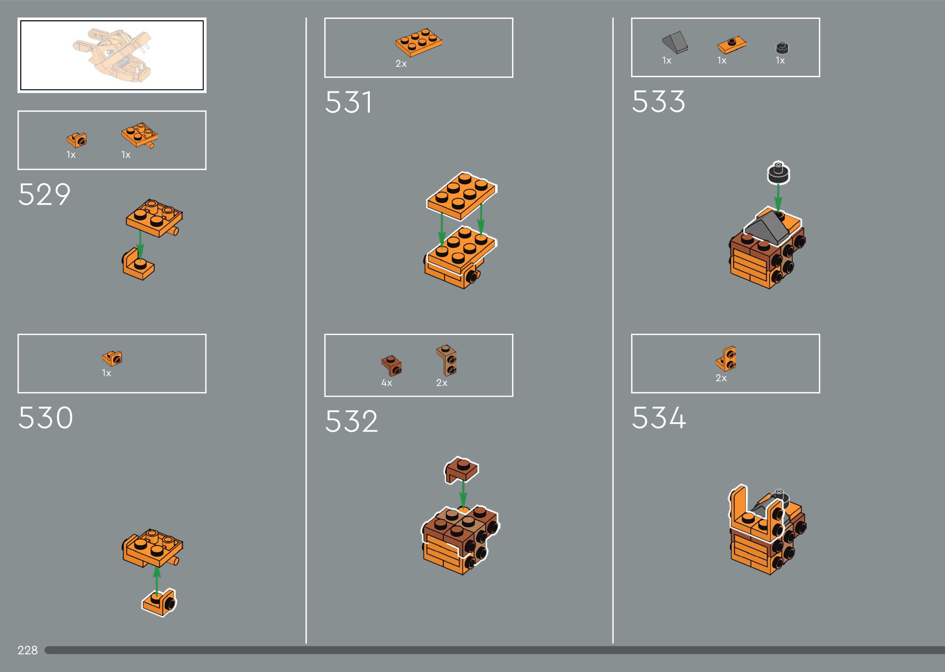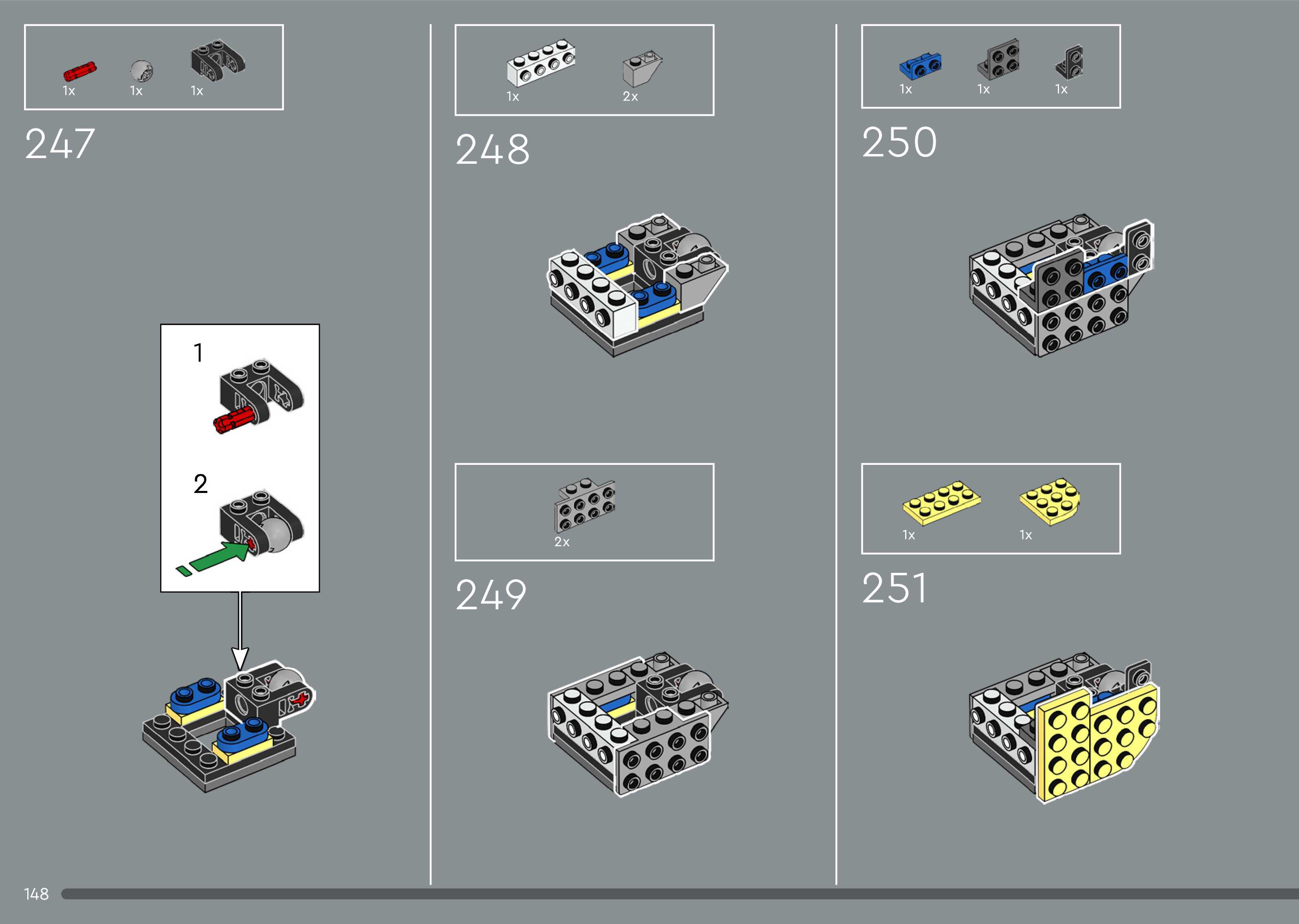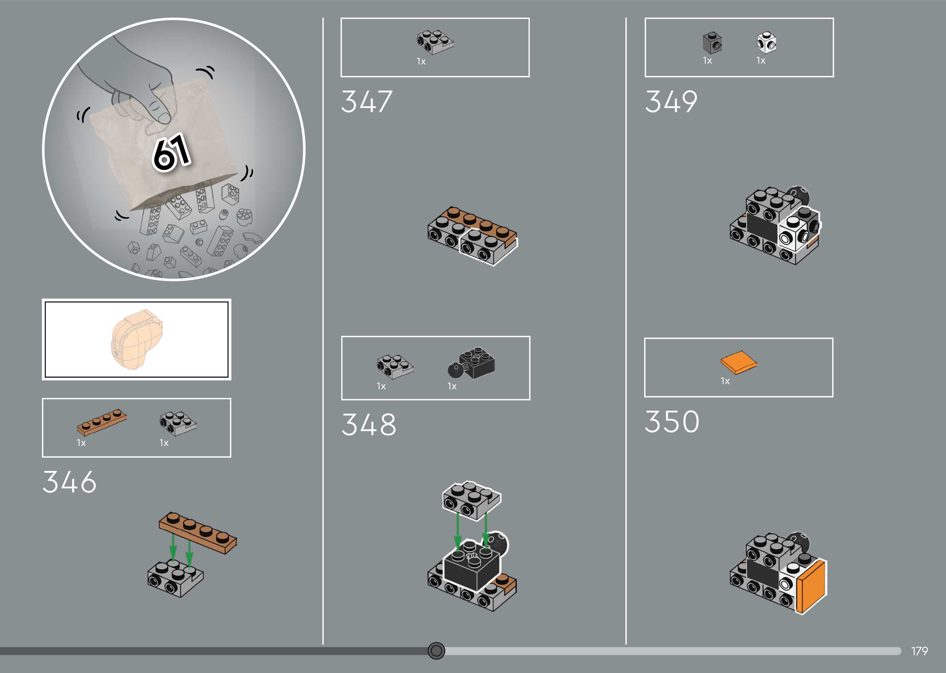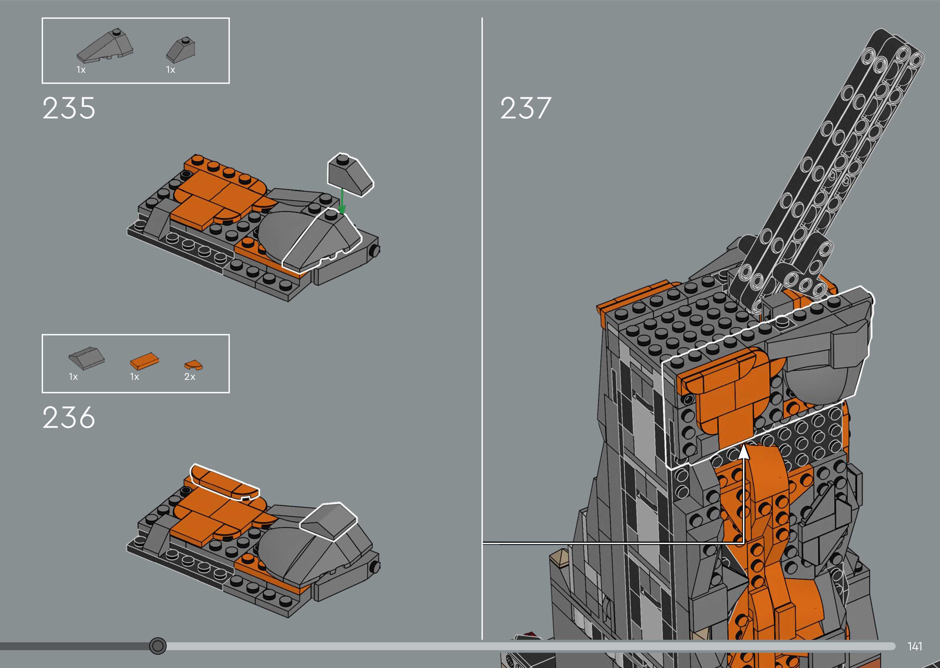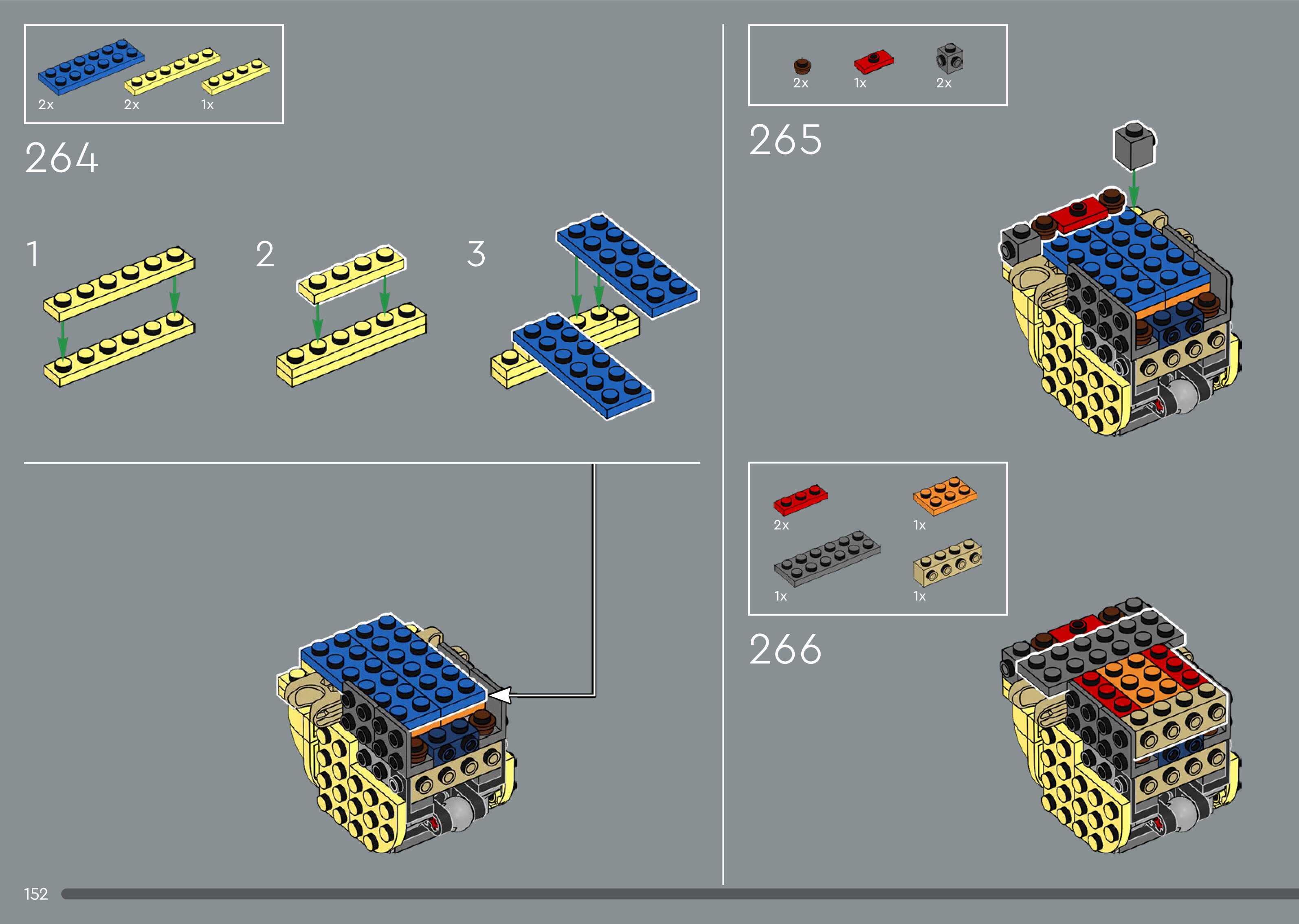 The assembly guide is prepared in a very understandable way for children and adult LEGO enthusiasts. A total of 252 picture galleries are shown, explaining the step-by-step construction stages for 1 different structures.