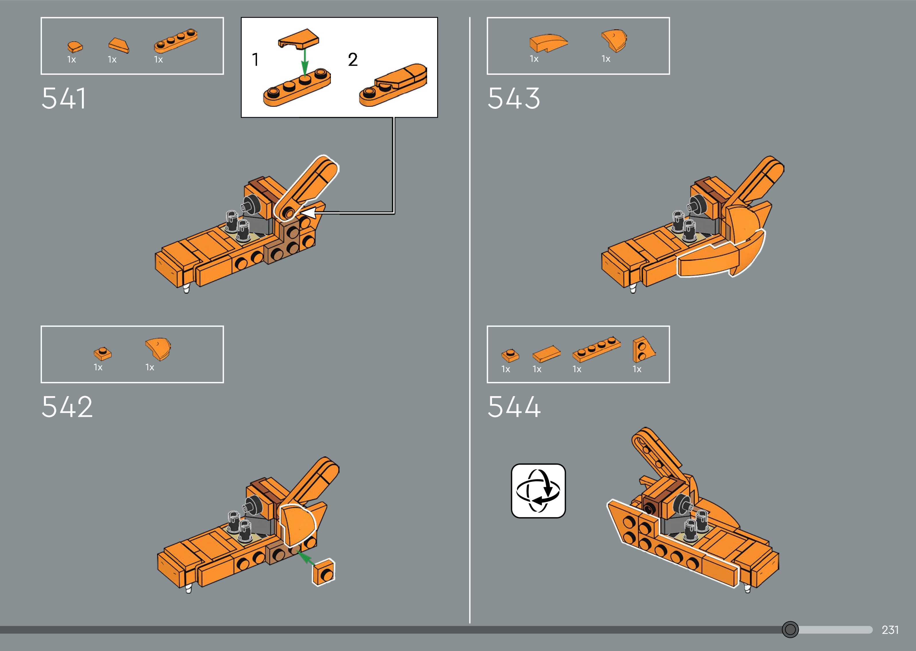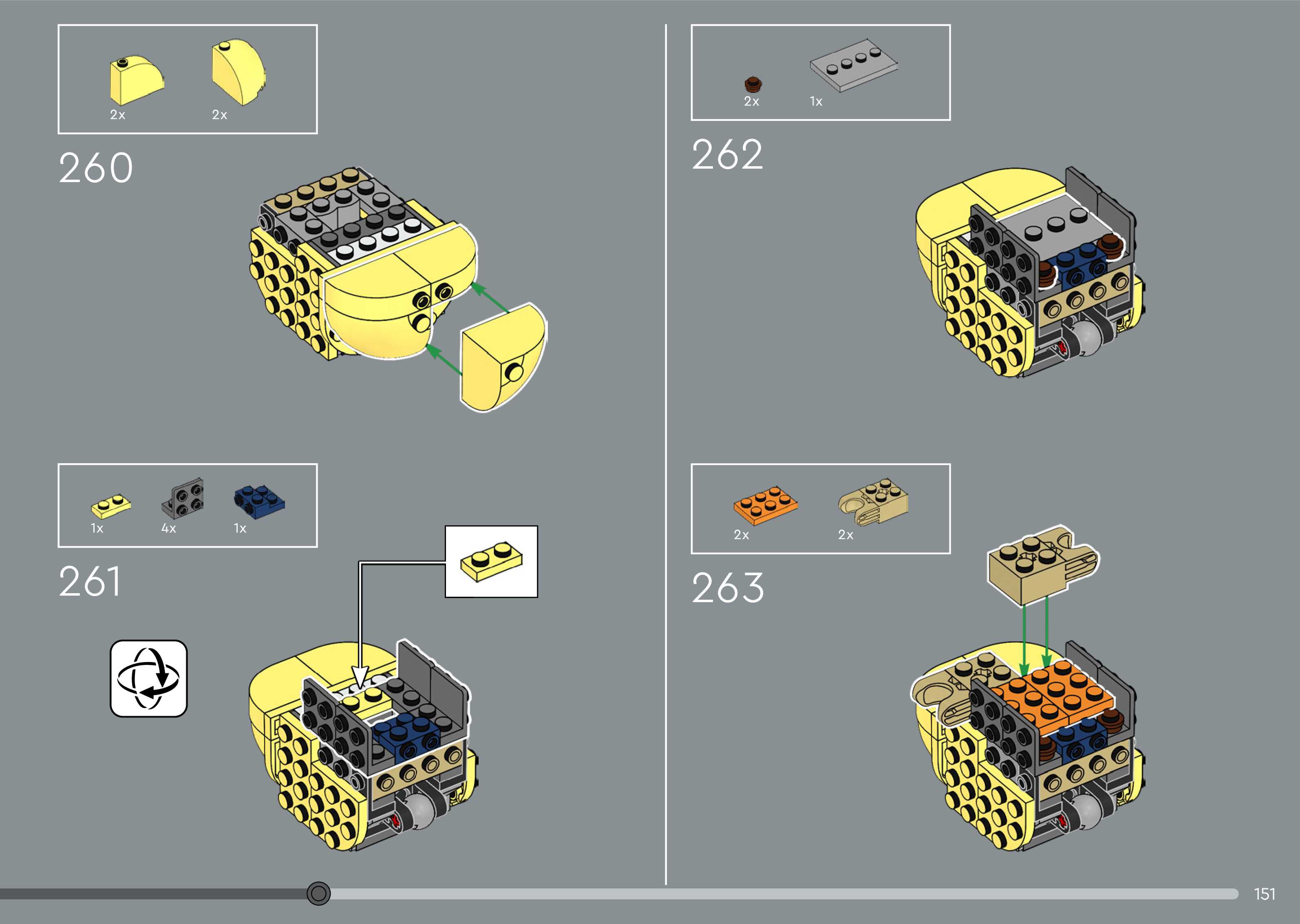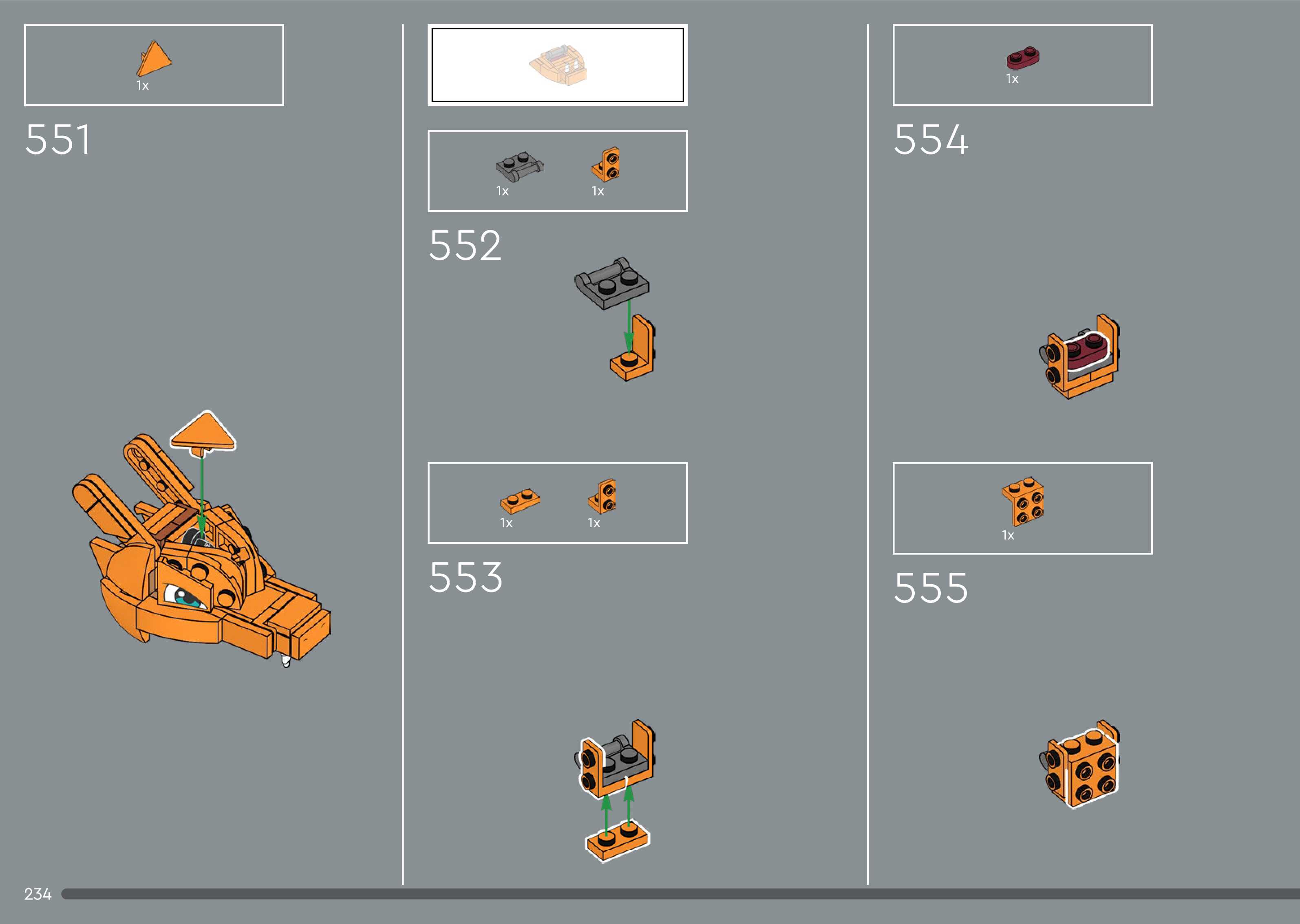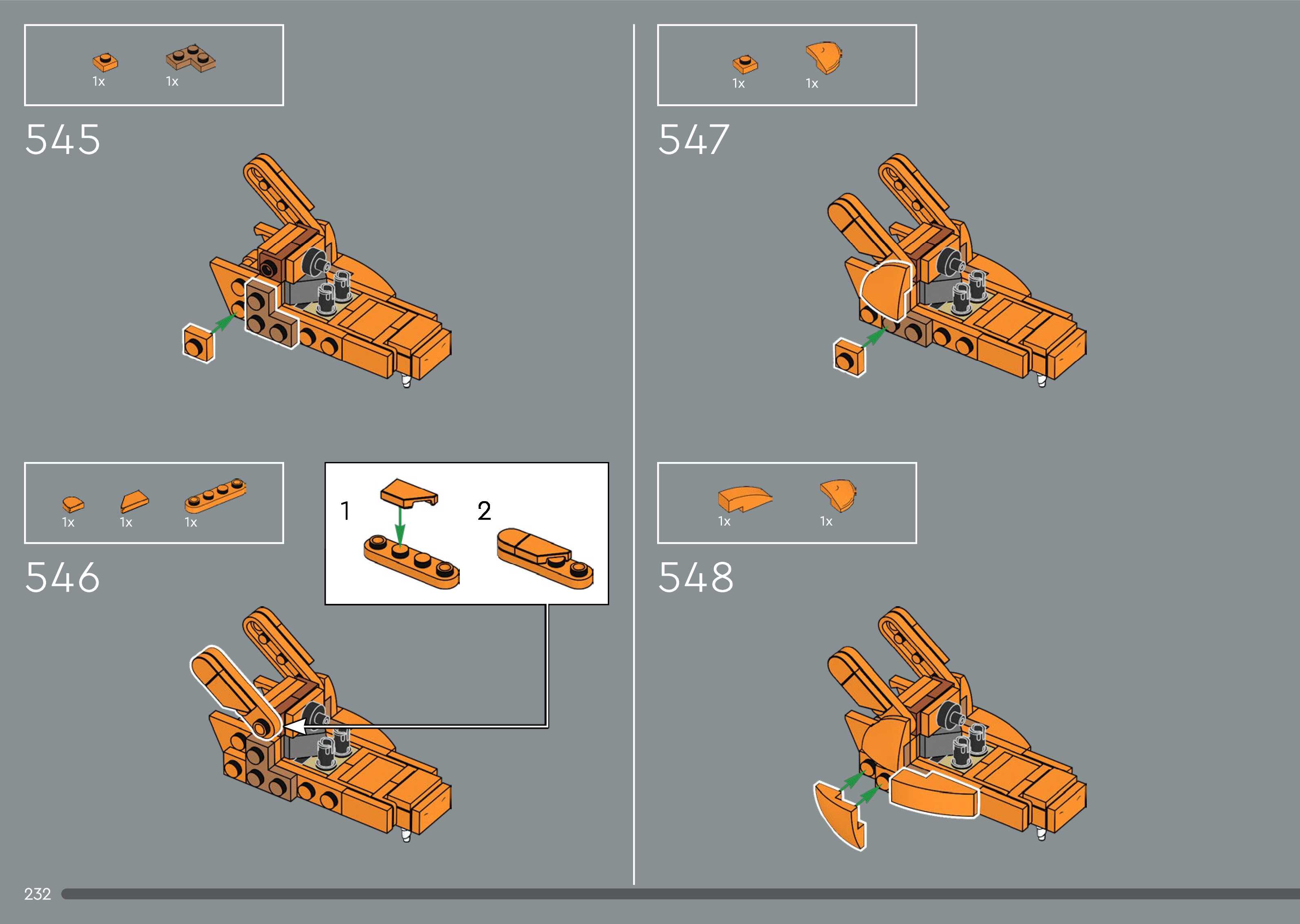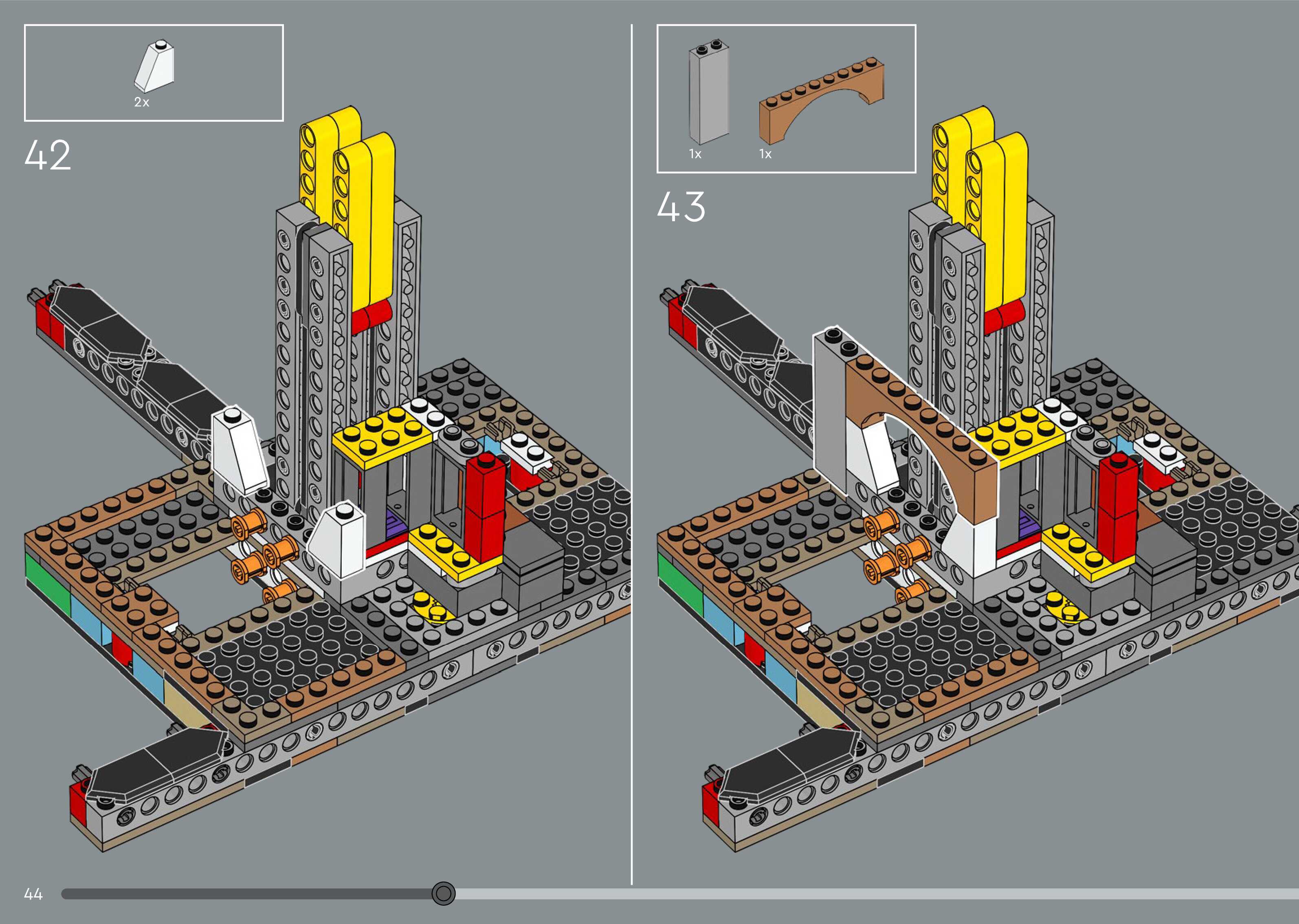 The assembly guide is prepared in a very understandable way for children and adult LEGO enthusiasts. A total of 252 picture galleries are shown, explaining the step-by-step construction stages for 1 different structures.