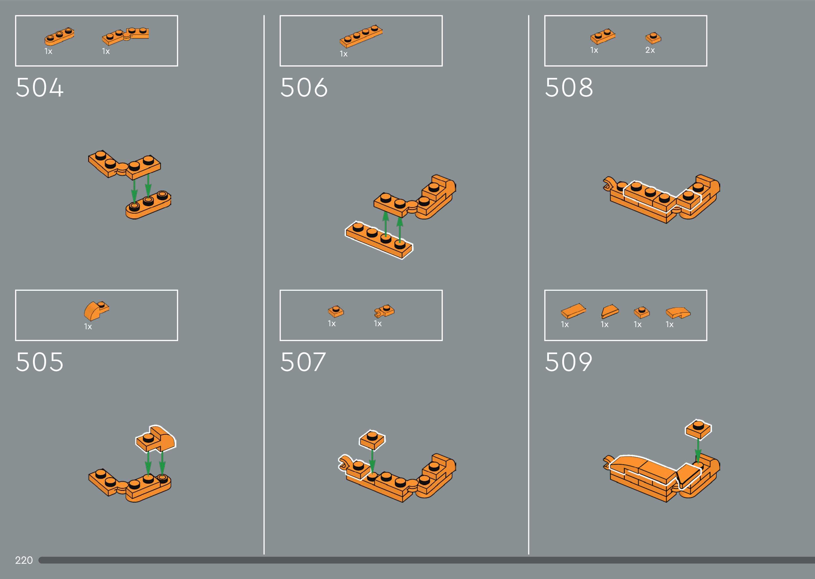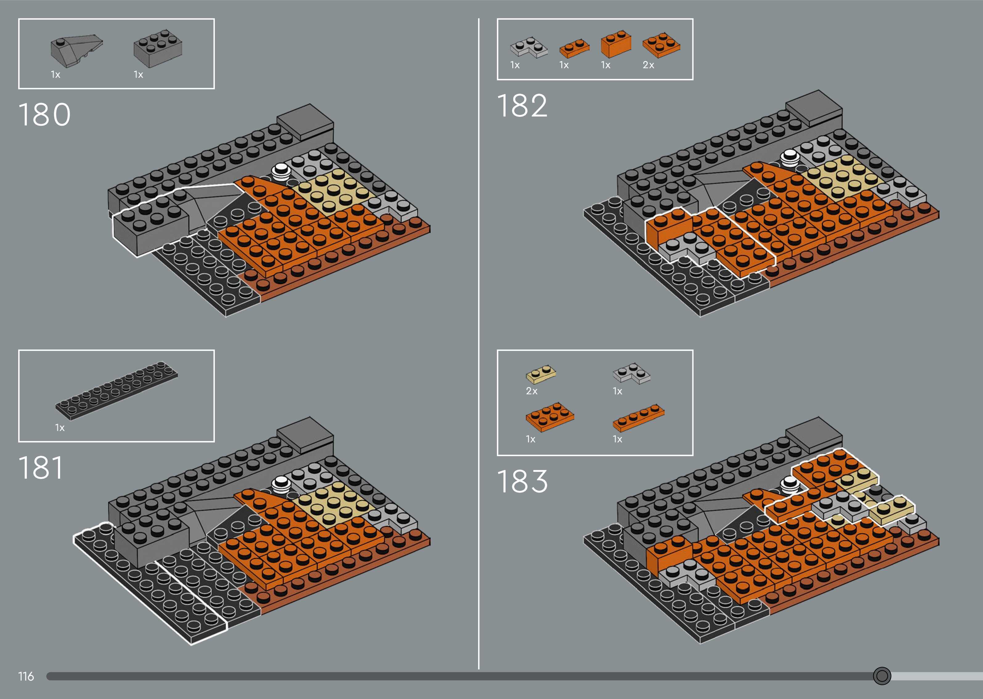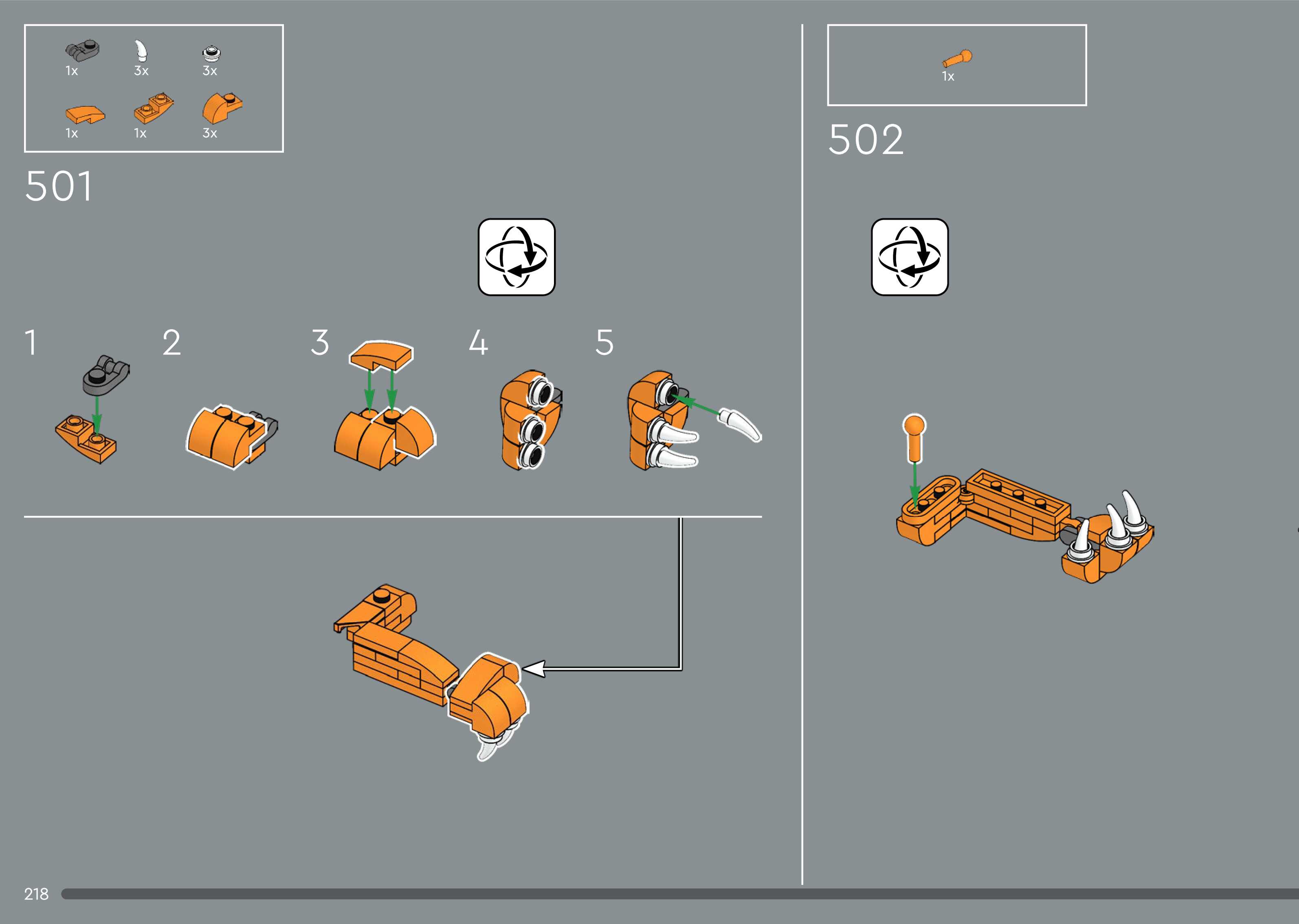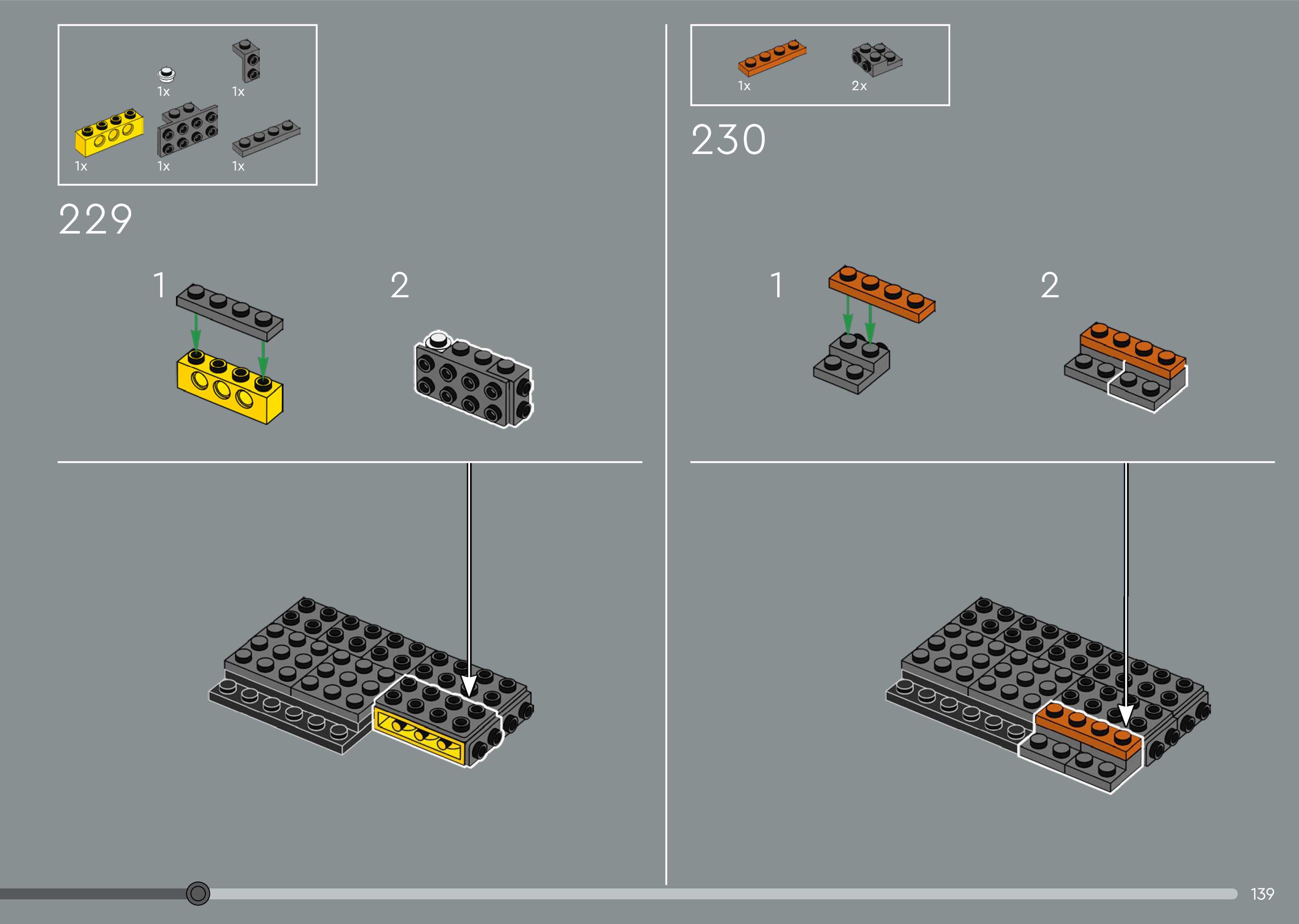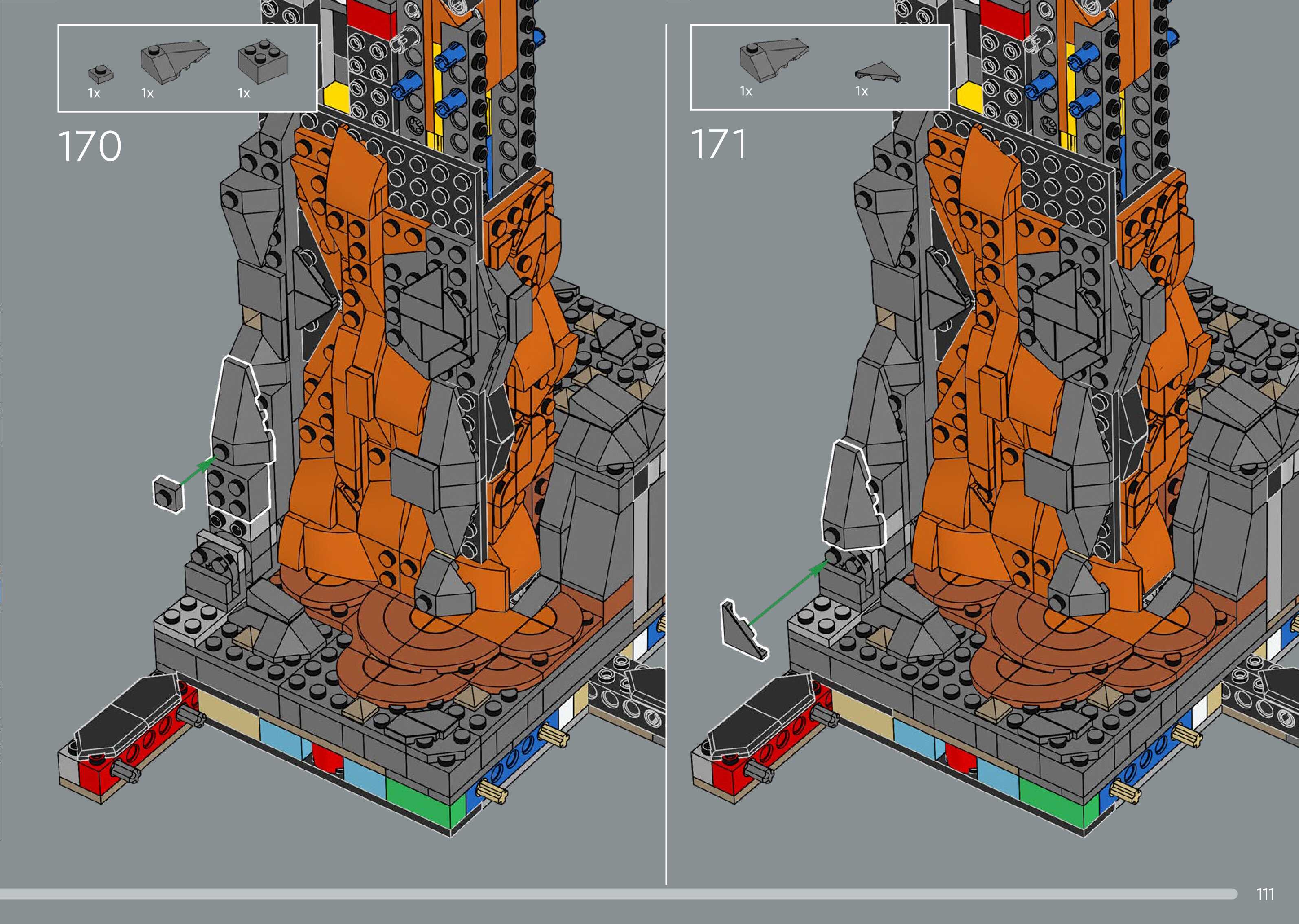 The assembly guide is prepared in a very understandable way for children and adult LEGO enthusiasts. A total of 252 picture galleries are shown, explaining the step-by-step construction stages for 1 different structures.