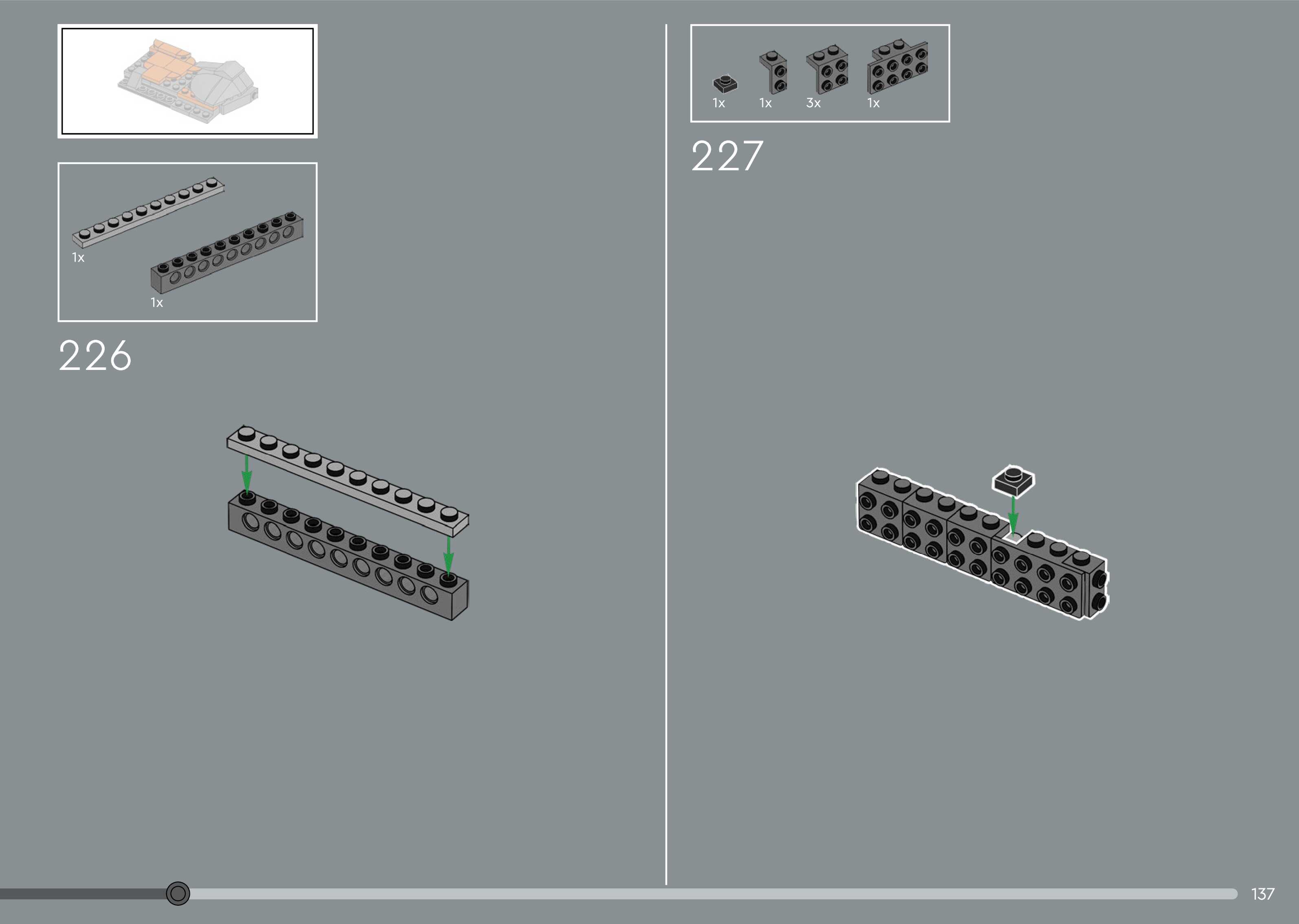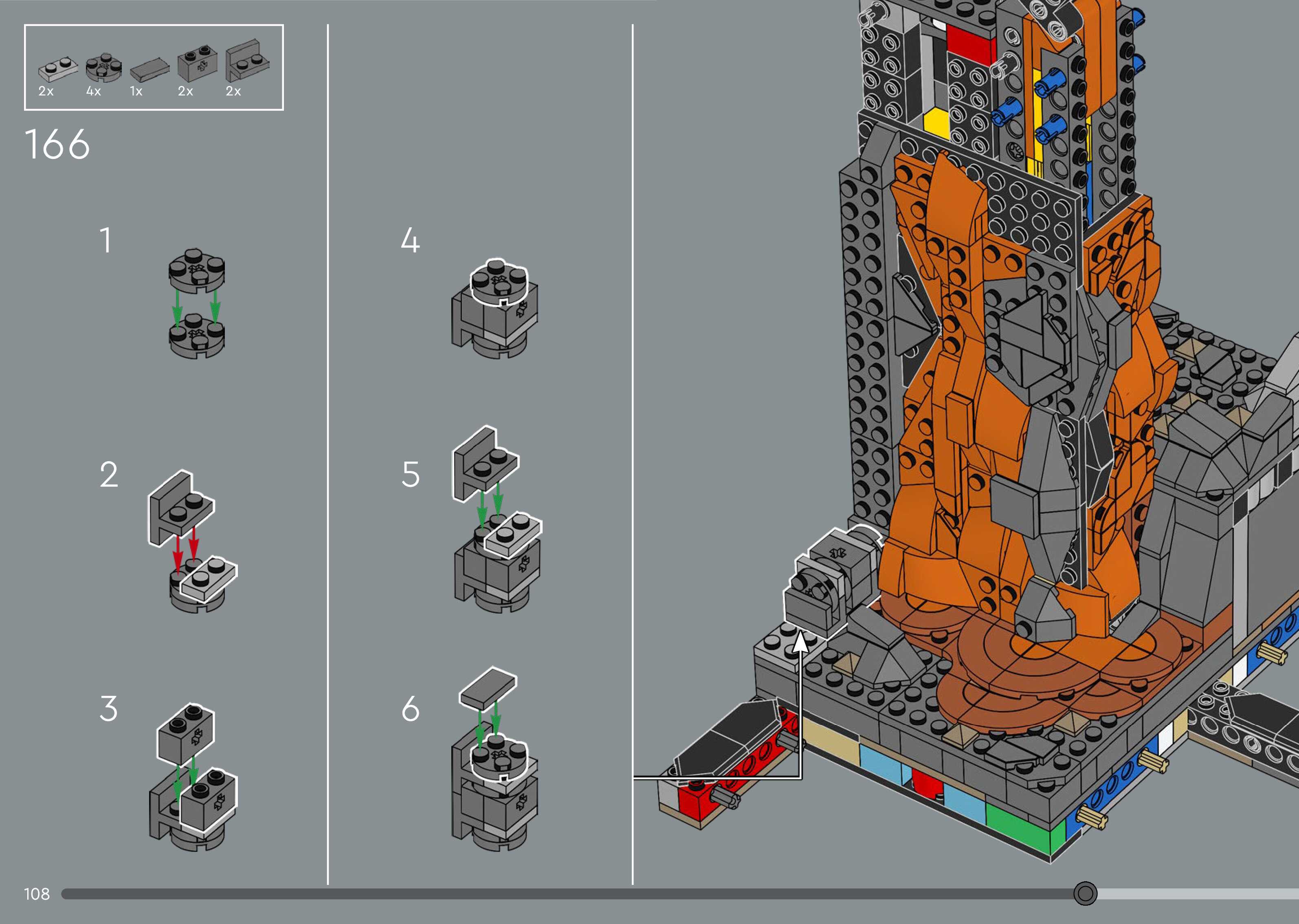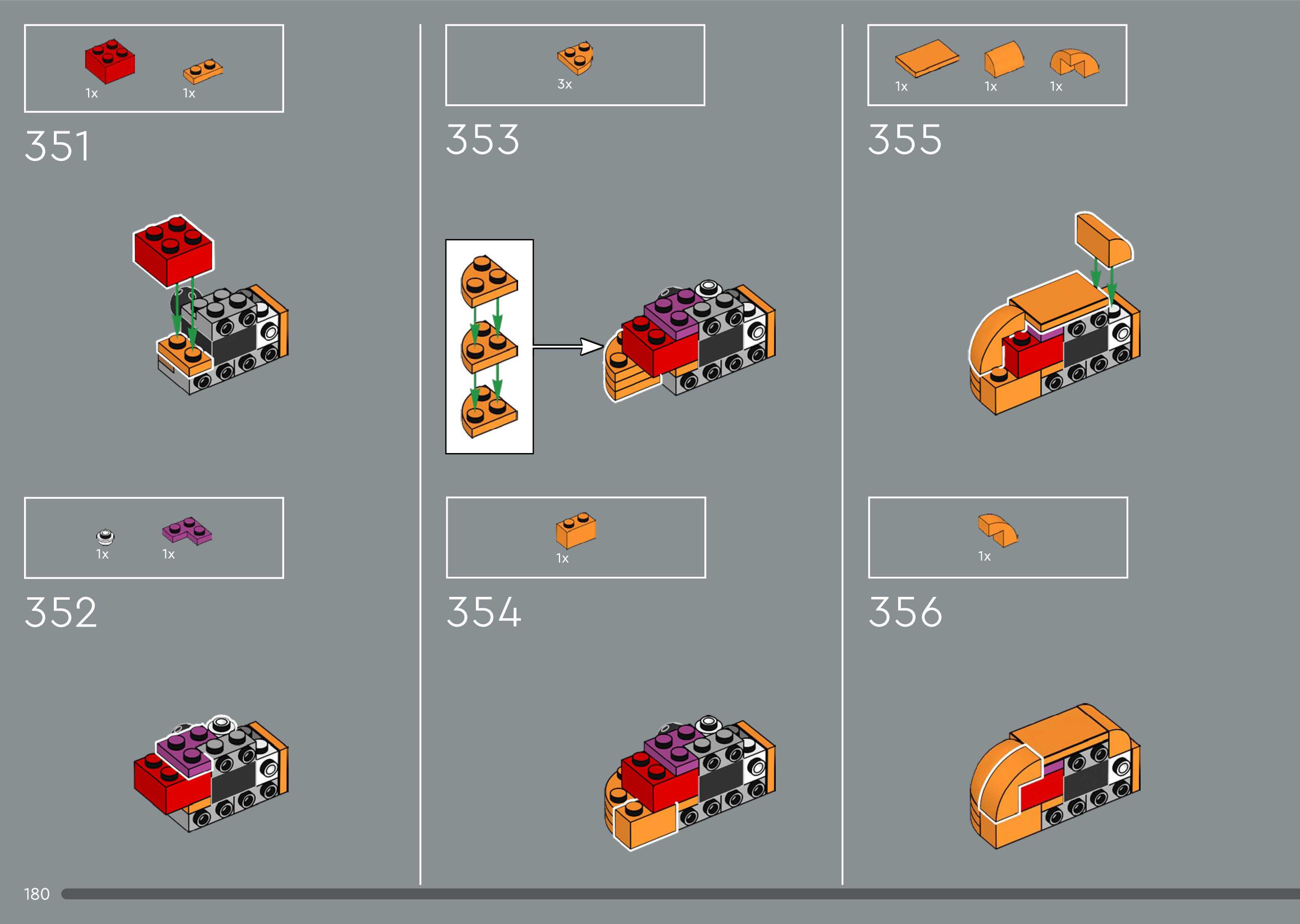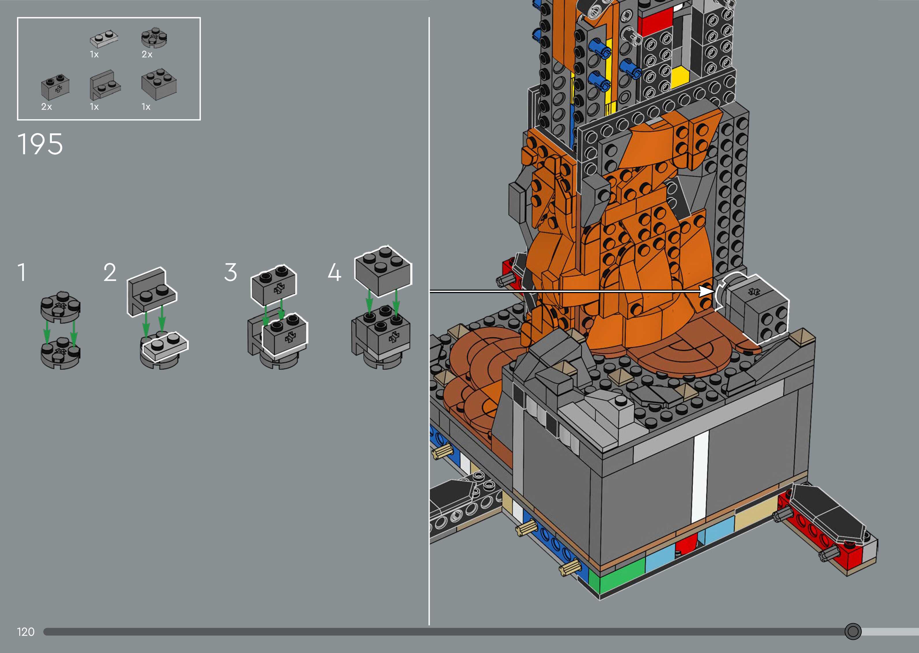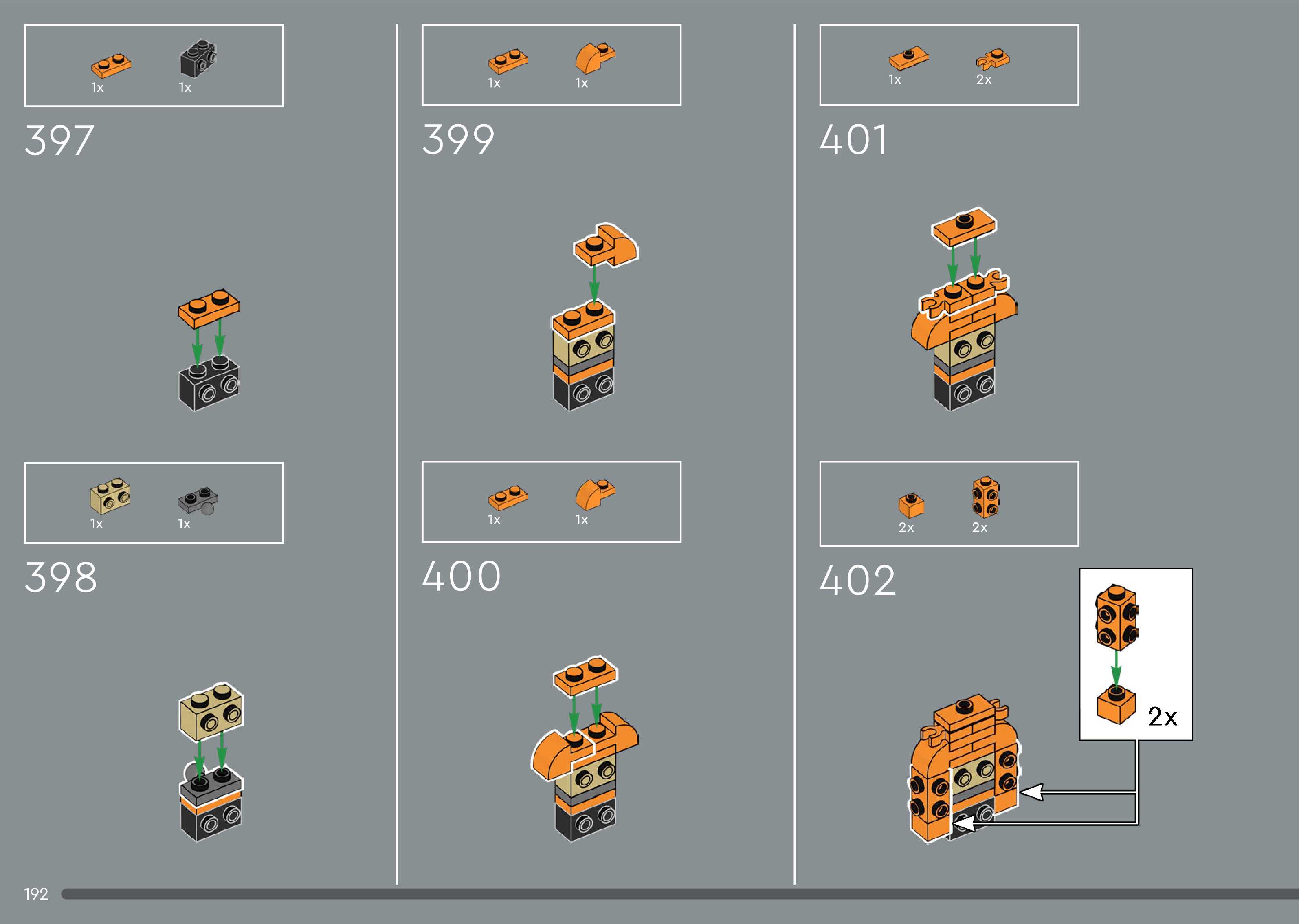 The assembly guide is prepared in a very understandable way for children and adult LEGO enthusiasts. A total of 252 picture galleries are shown, explaining the step-by-step construction stages for 1 different structures.