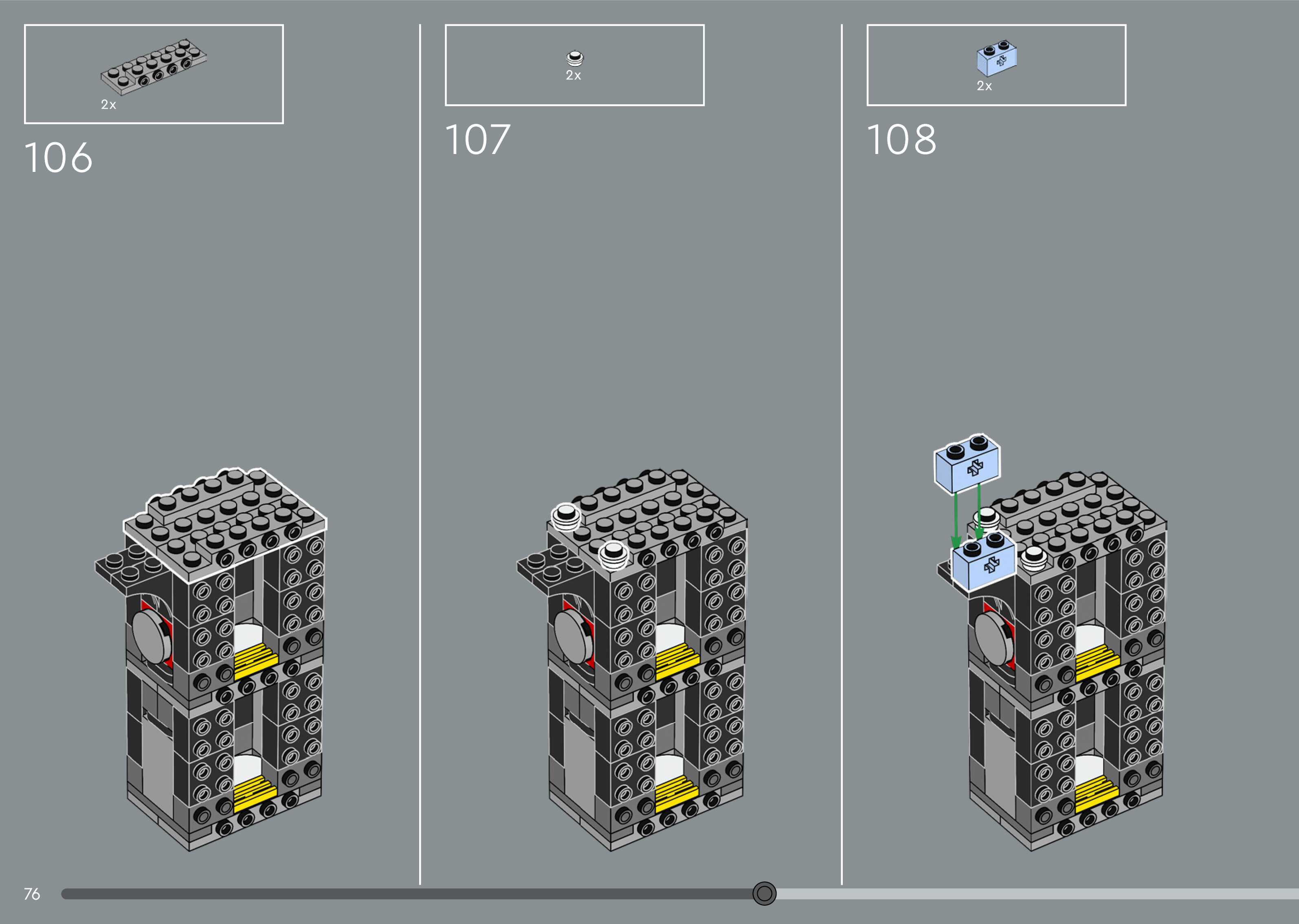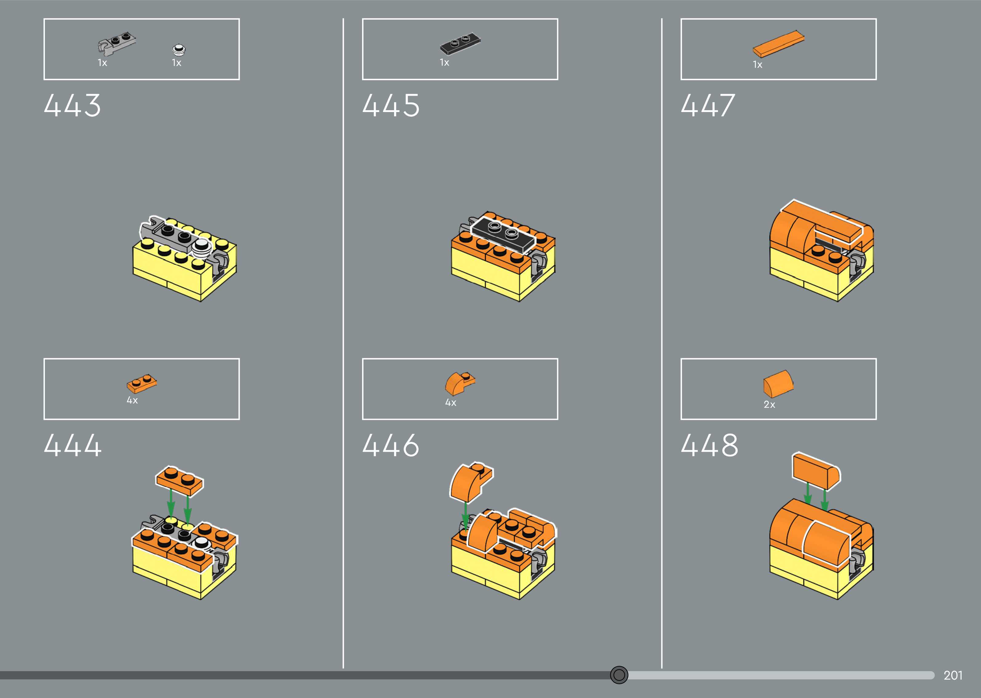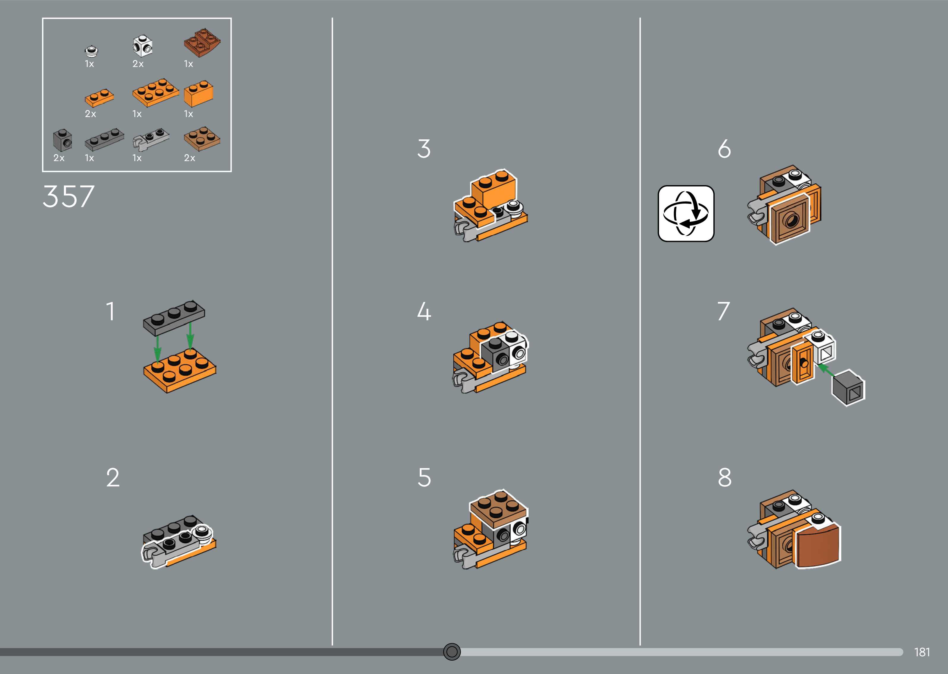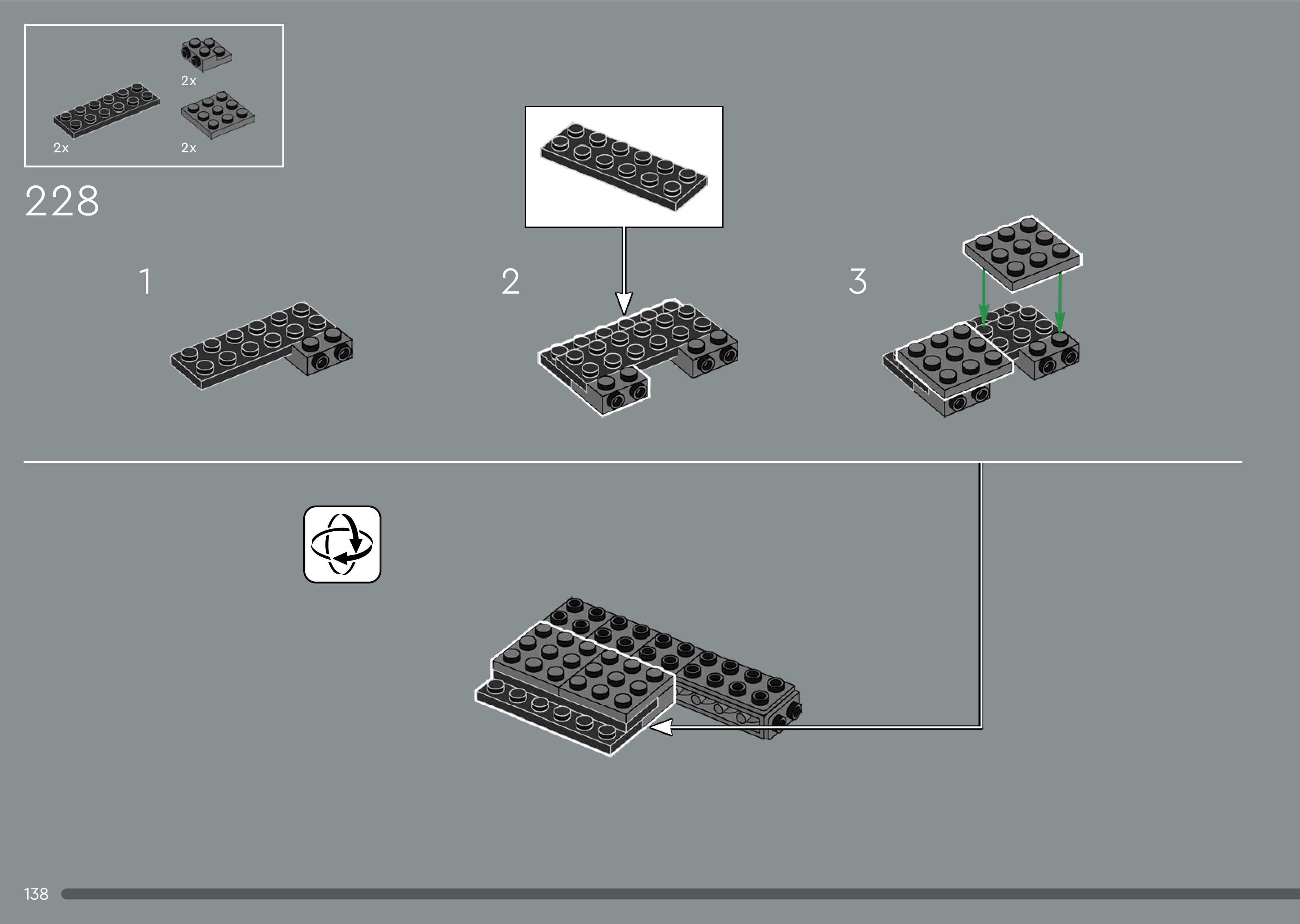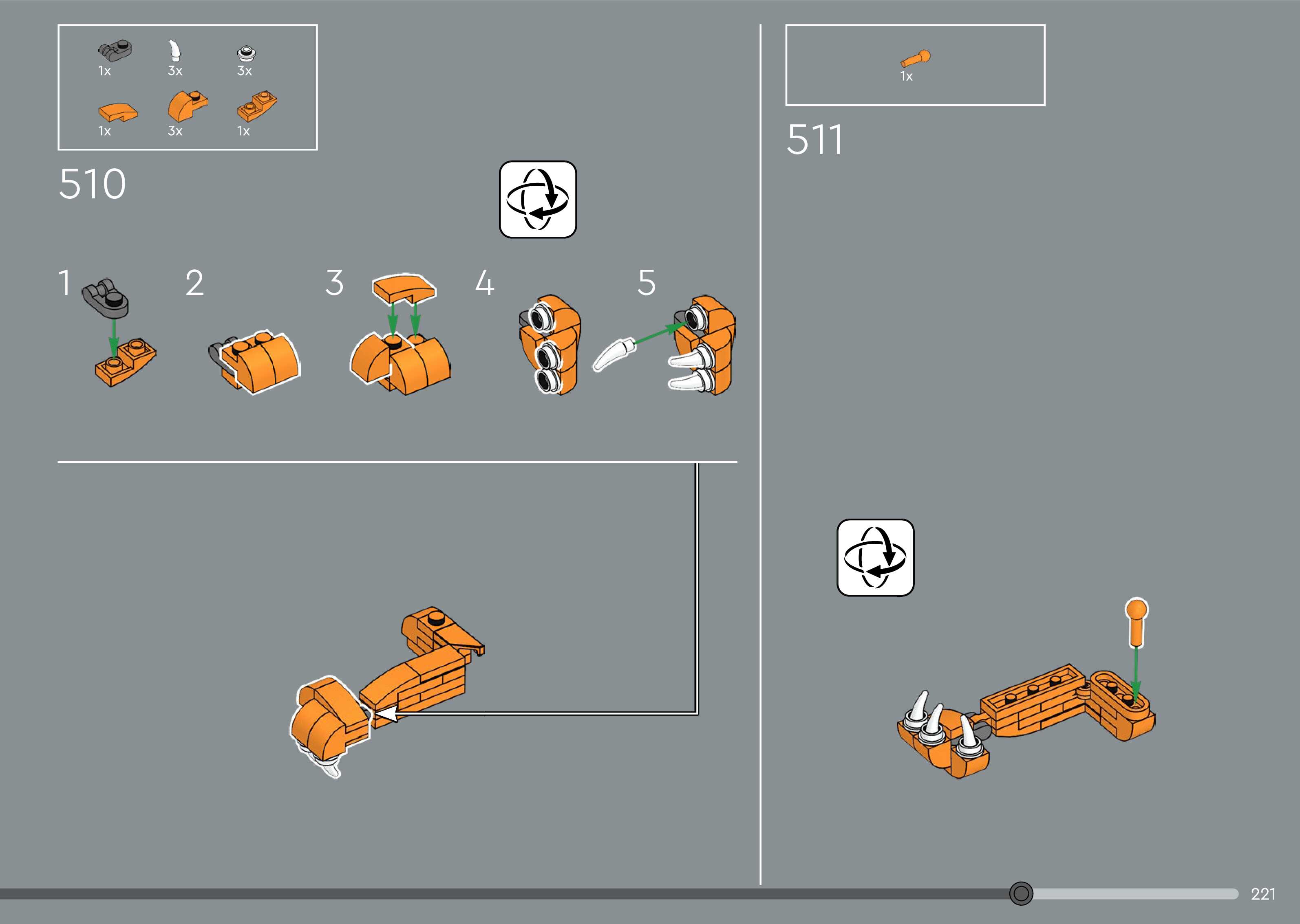 The assembly guide is prepared in a very understandable way for children and adult LEGO enthusiasts. A total of 252 picture galleries are shown, explaining the step-by-step construction stages for 1 different structures.