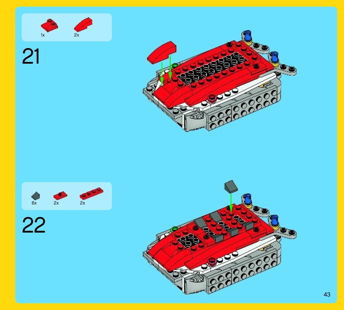 The assembly guide is prepared in a very understandable way for children and adult LEGO enthusiasts. A total of 146 picture galleries are shown, explaining the step-by-step construction stages for 3 different structures.