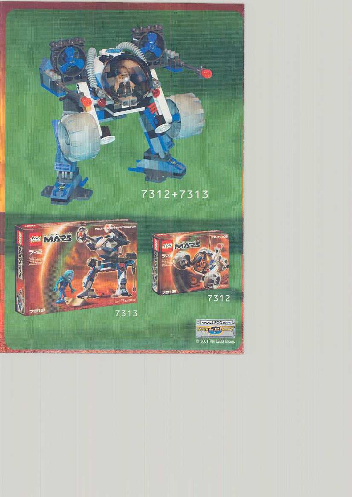 On this page you can find the original construction manual for the LEGO 7313 set. With the assembly manual you can easily learn how to build the 7313 Red Planet Protector step by step. The set was released in 2001.