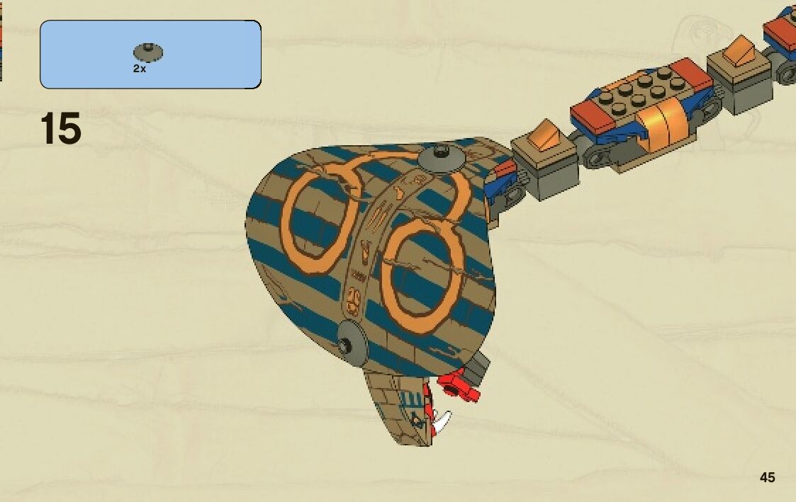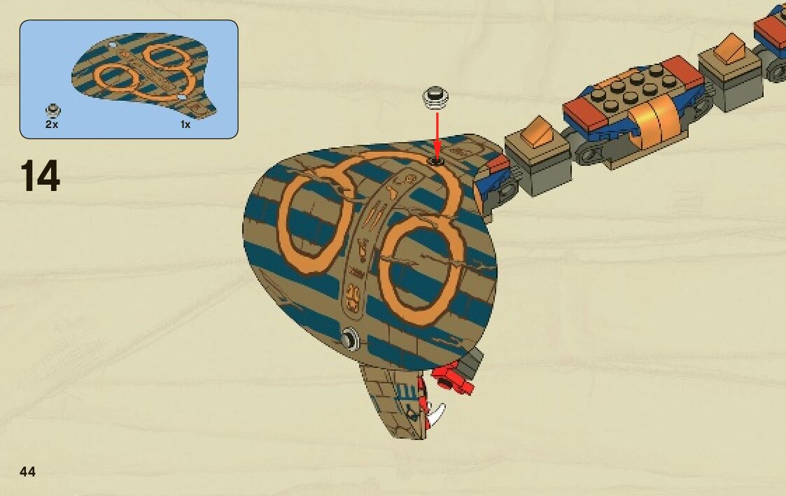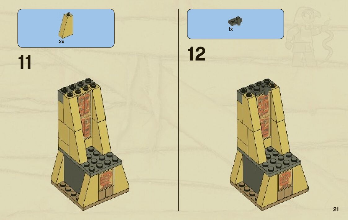 On this page you can find the original construction manual for the LEGO 7325 set. With the assembly manual you can easily learn how to build the 7325 Cursed Cobra Statue step by step. The set was released in 2010.