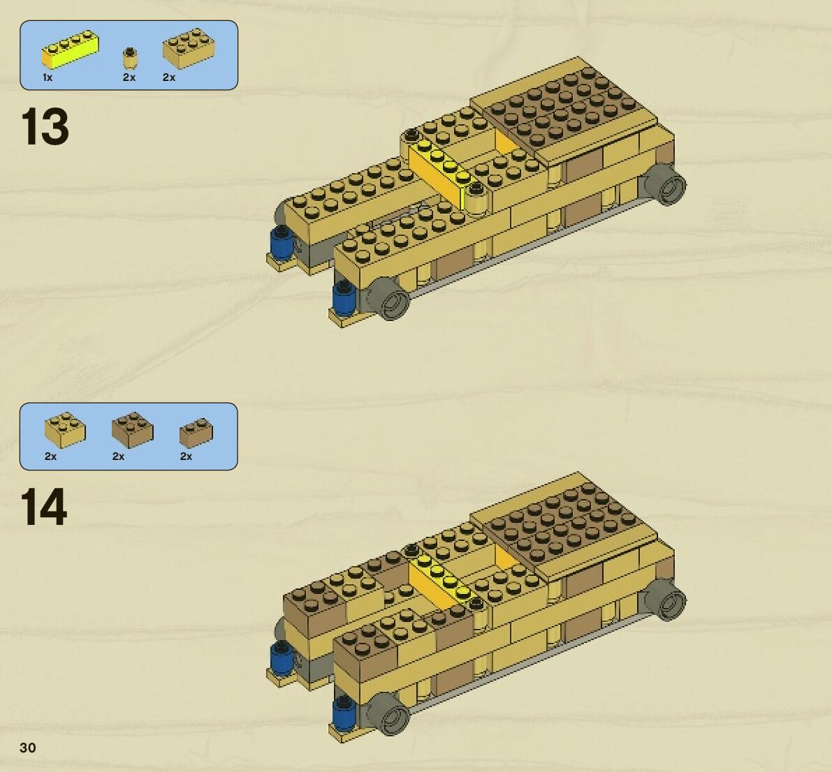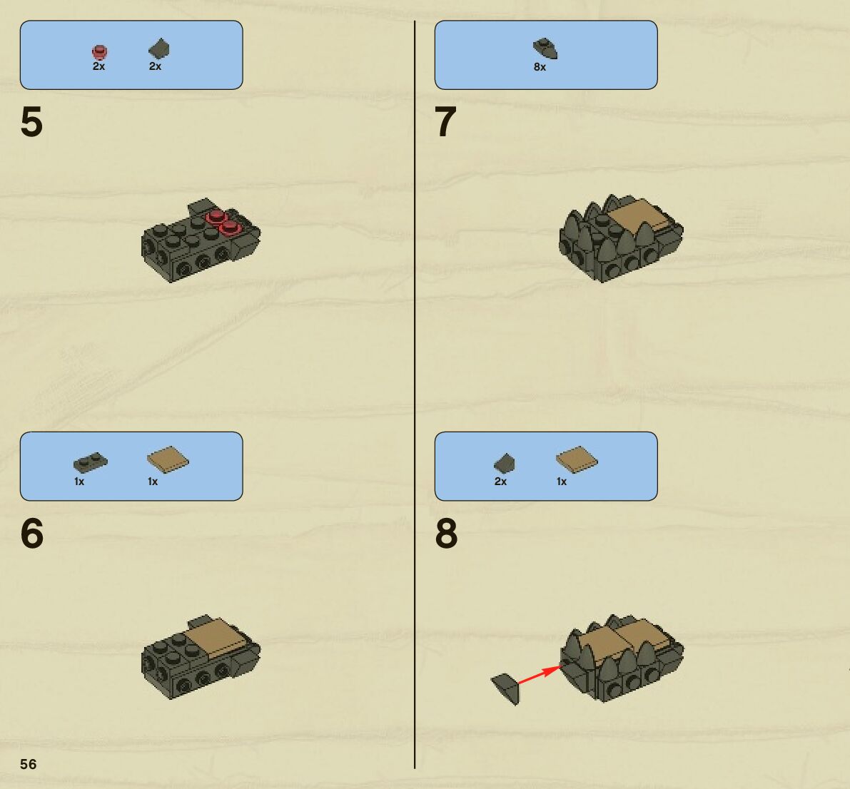 The assembly guide is prepared in a very understandable way for children and adult LEGO enthusiasts. A total of 900 picture galleries are shown, explaining the step-by-step construction stages for 2 different structures.