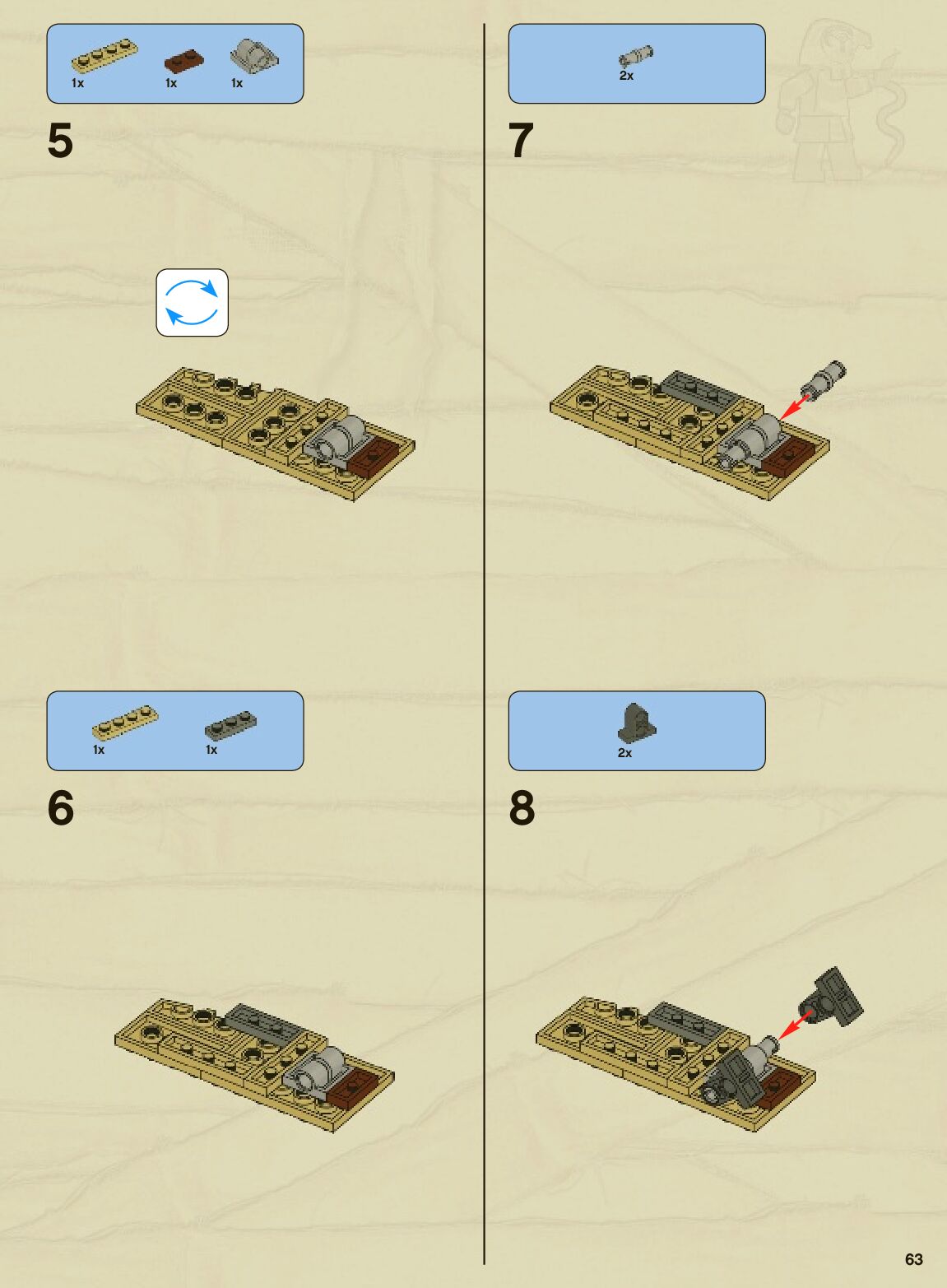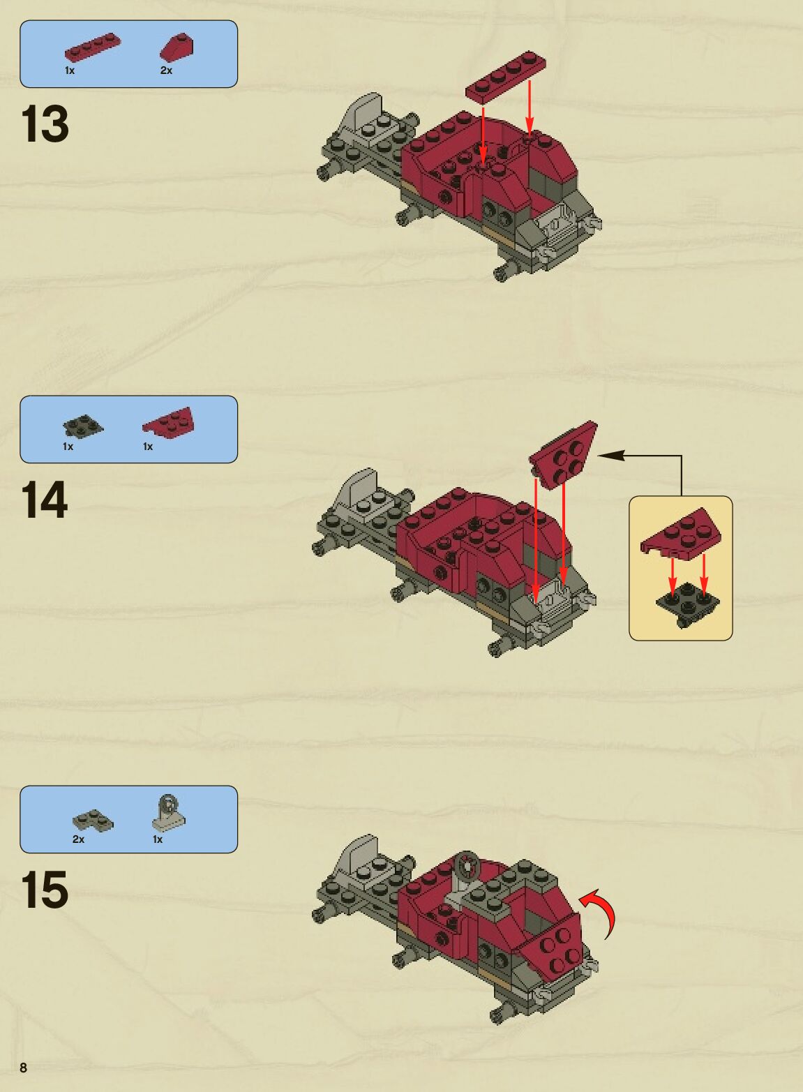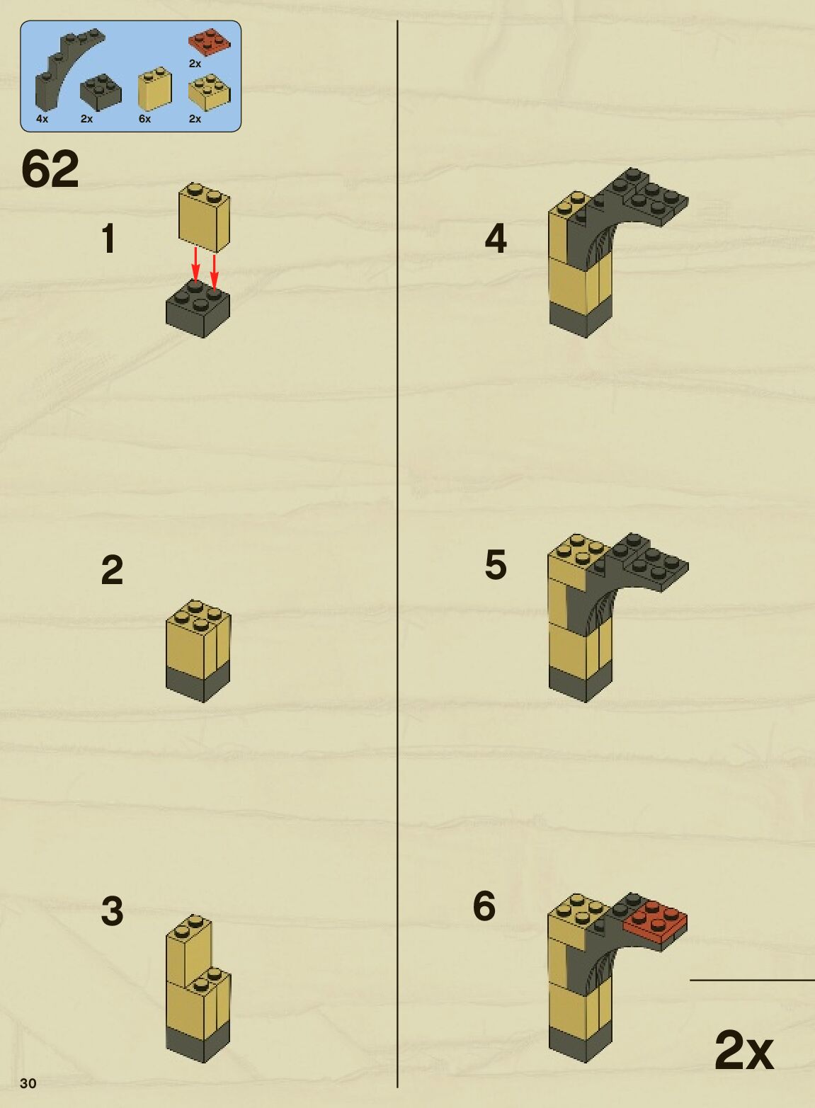 The assembly guide is prepared in a very understandable way for children and adult LEGO enthusiasts. A total of 160 picture galleries are shown, explaining the step-by-step construction stages for 2 different structures.