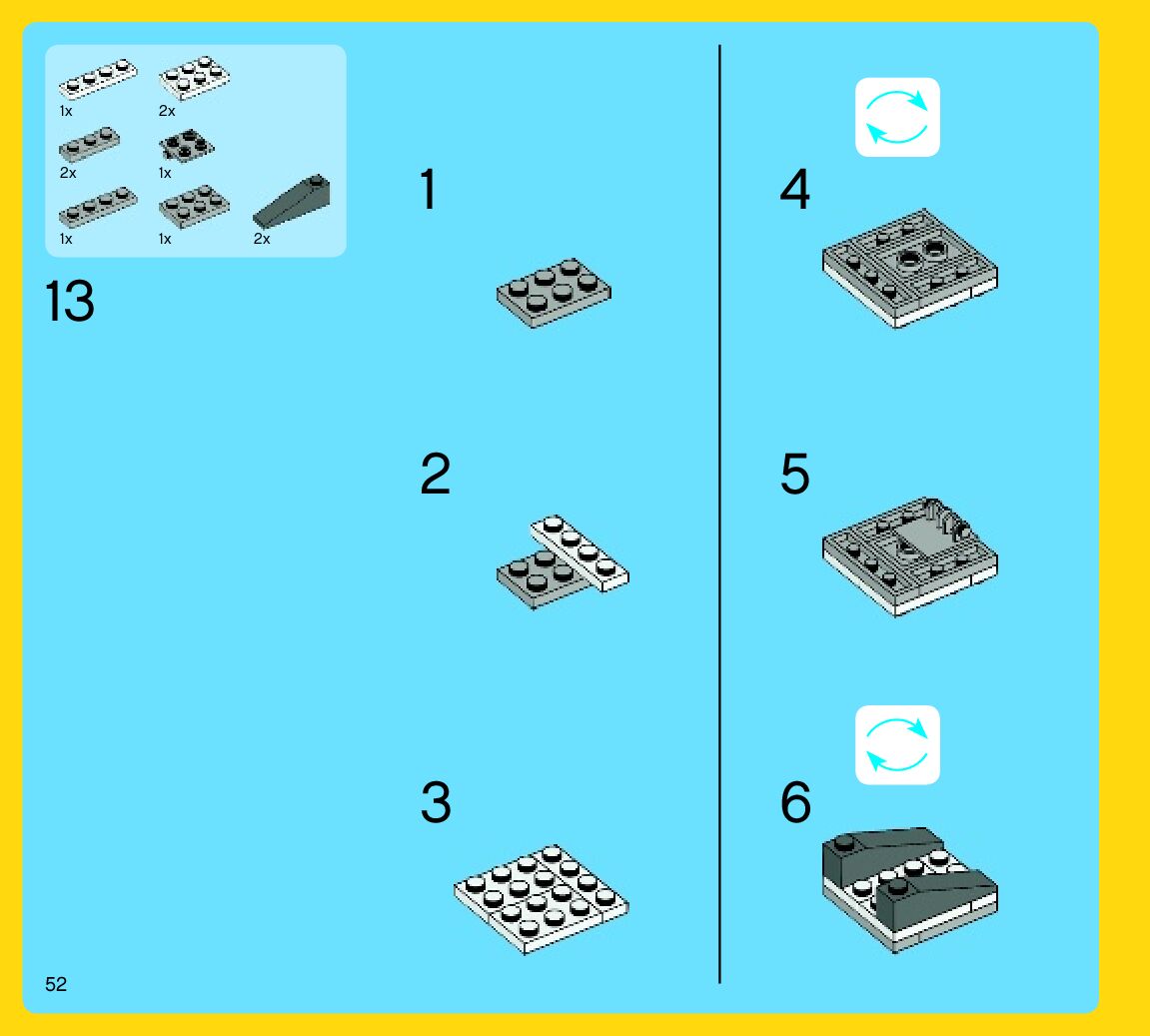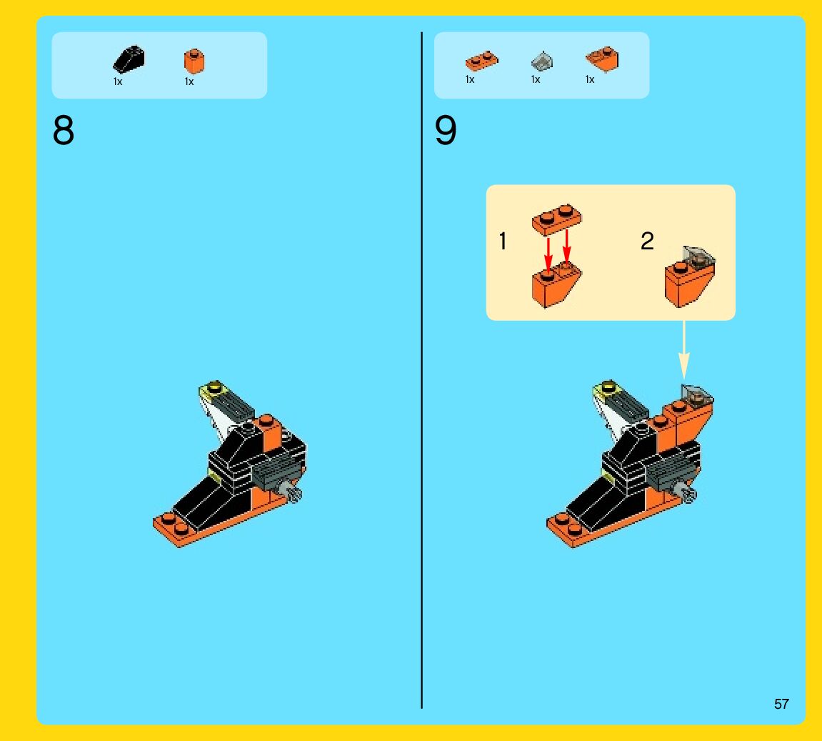 The assembly guide is prepared in a very understandable way for children and adult LEGO enthusiasts. A total of 160 picture galleries are shown, explaining the step-by-step construction stages for 2 different structures.