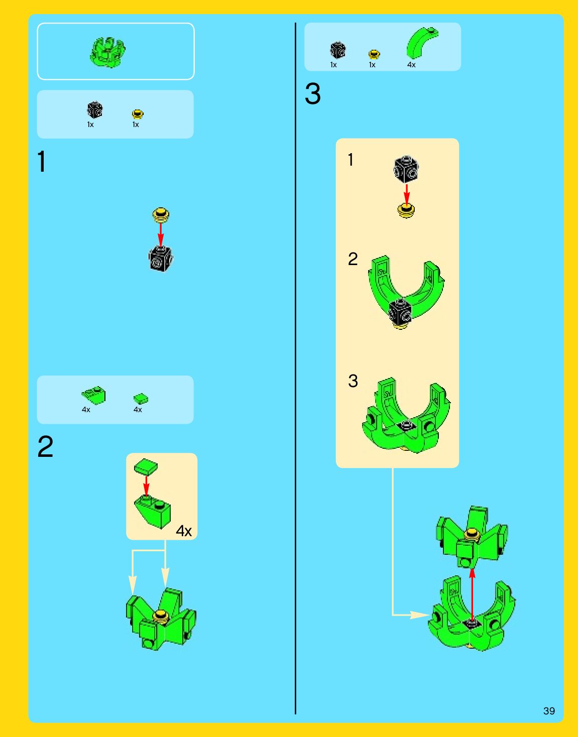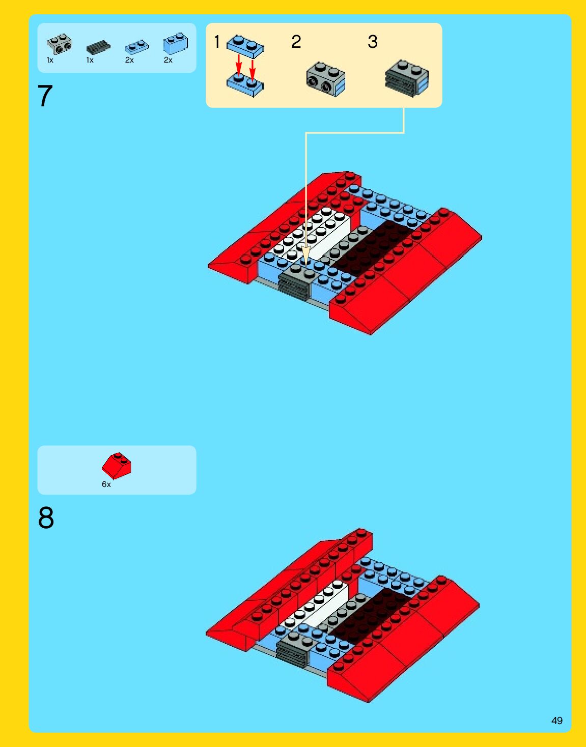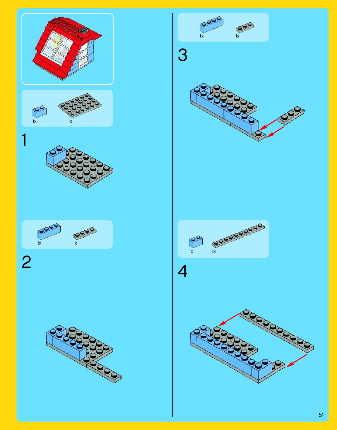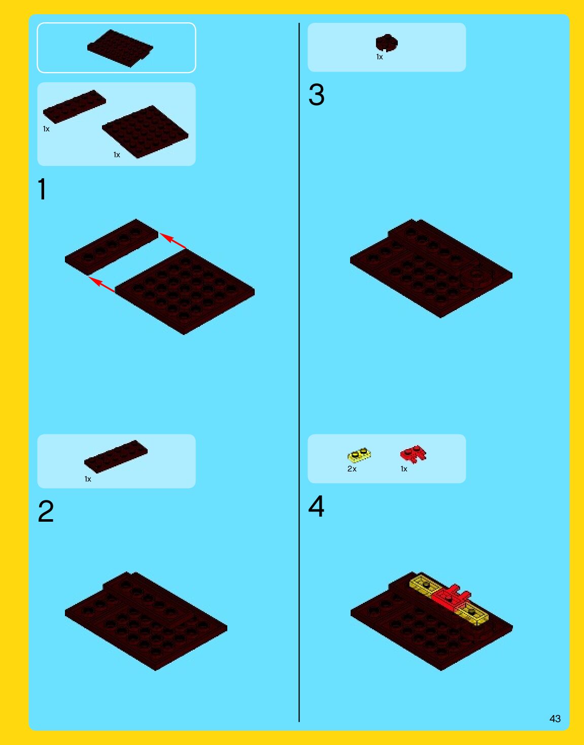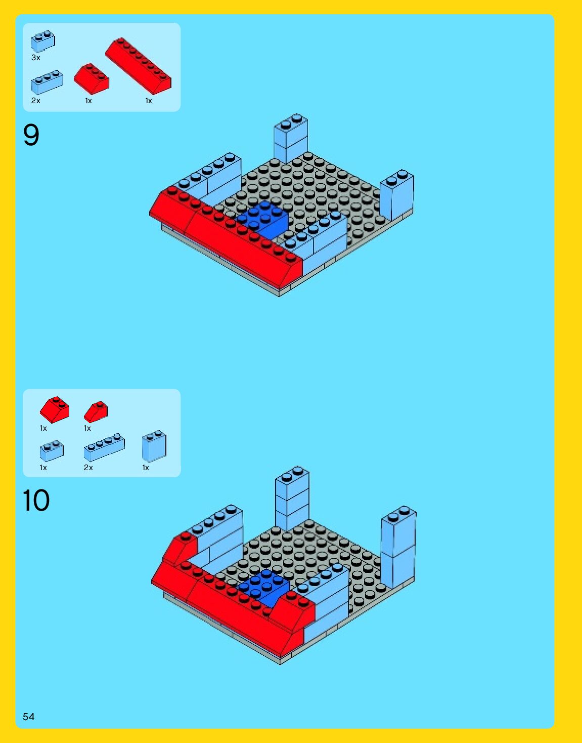 The assembly guide is prepared in a very understandable way for children and adult LEGO enthusiasts. A total of 188 picture galleries are shown, explaining the step-by-step construction stages for 3 different structures.