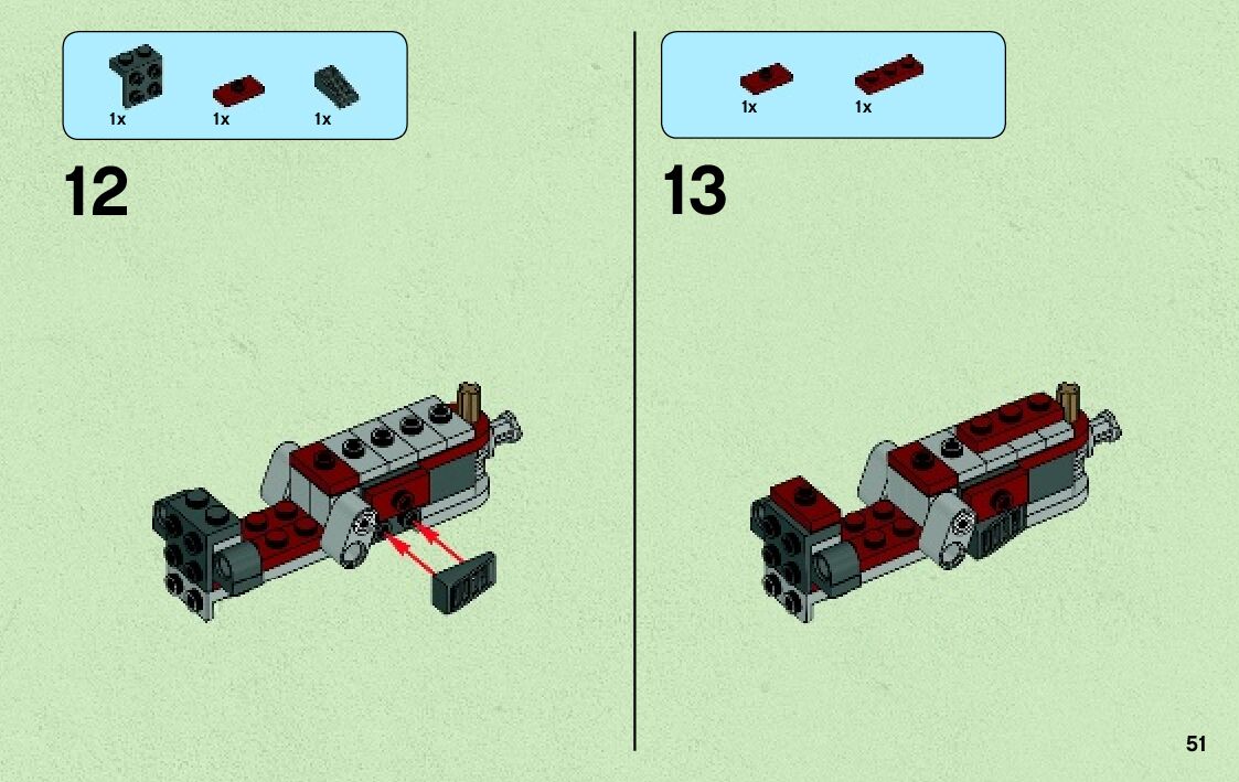 On this page you can find the original construction manual for the LEGO 75012 set. With the assembly manual you can easily learn how to build the 75012 BARC Speeder with Sidecar step by step. The set was released in 2013.