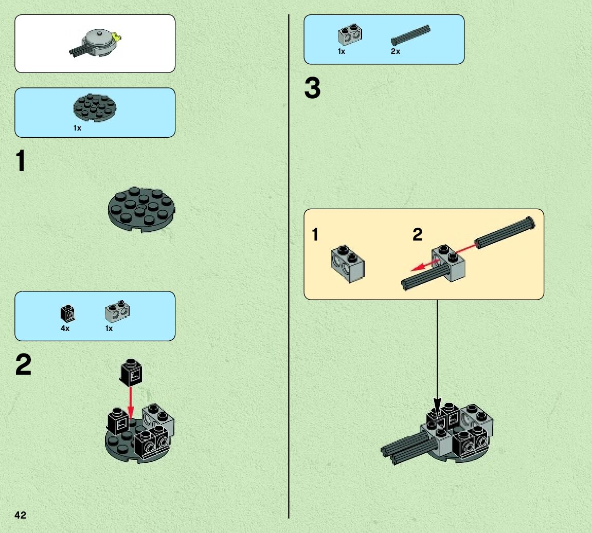 The assembly guide is prepared in a very understandable way for children and adult LEGO enthusiasts. A total of 72 picture galleries are shown, explaining the step-by-step construction stages for 1 different structures.