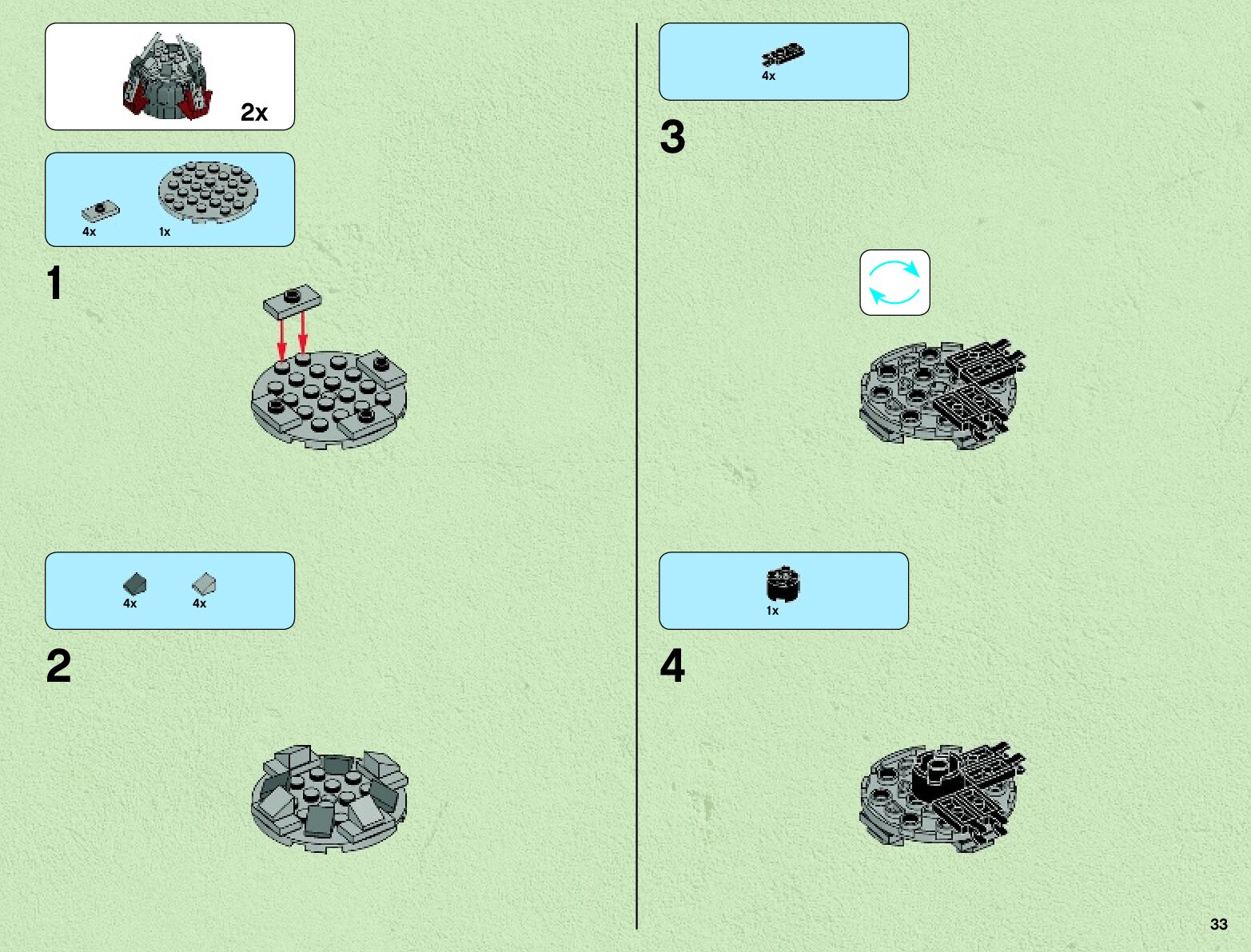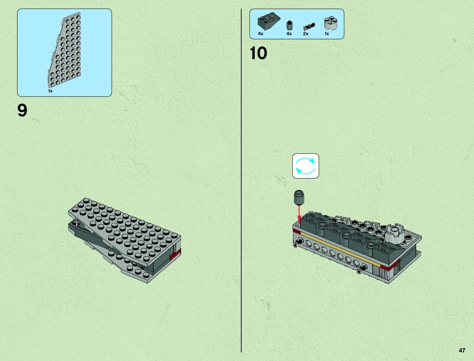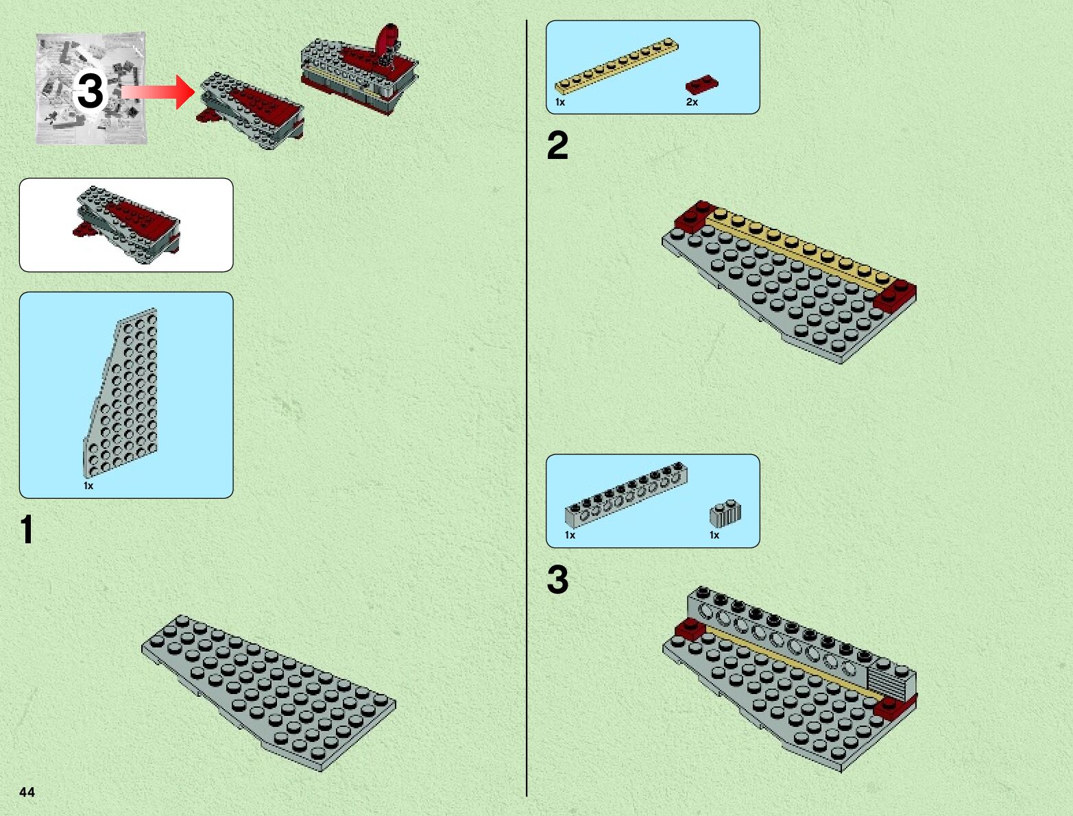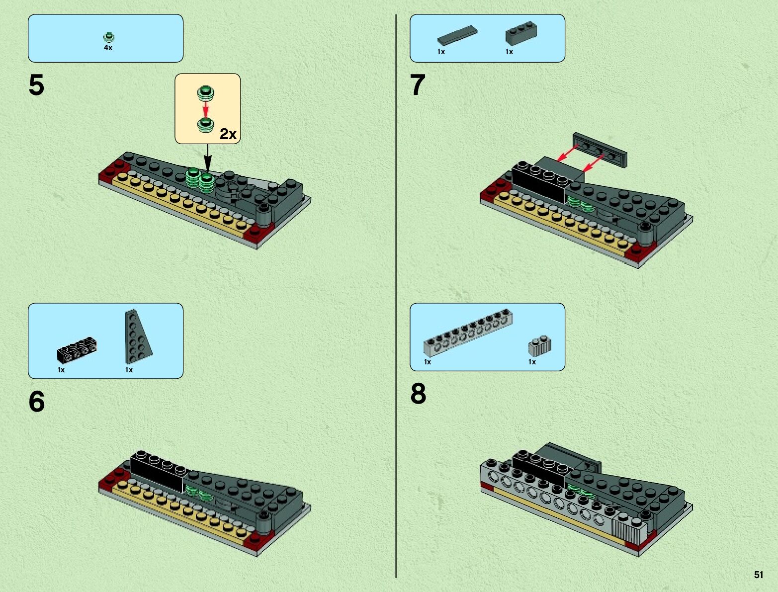The assembly guide is prepared in a very understandable way for children and adult LEGO enthusiasts. A total of 124 picture galleries are shown, explaining the step-by-step construction stages for 2 different structures.