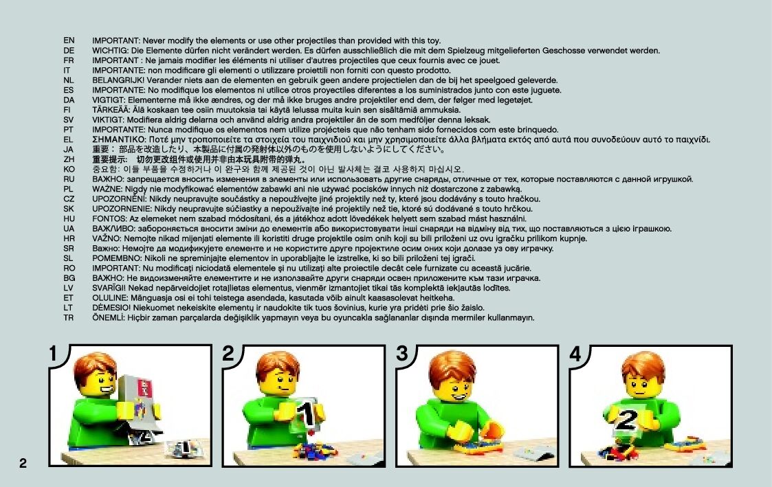 The assembly guide is prepared in a very understandable way for children and adult LEGO enthusiasts. A total of 64 picture galleries are shown, explaining the step-by-step construction stages for 1 different structures.