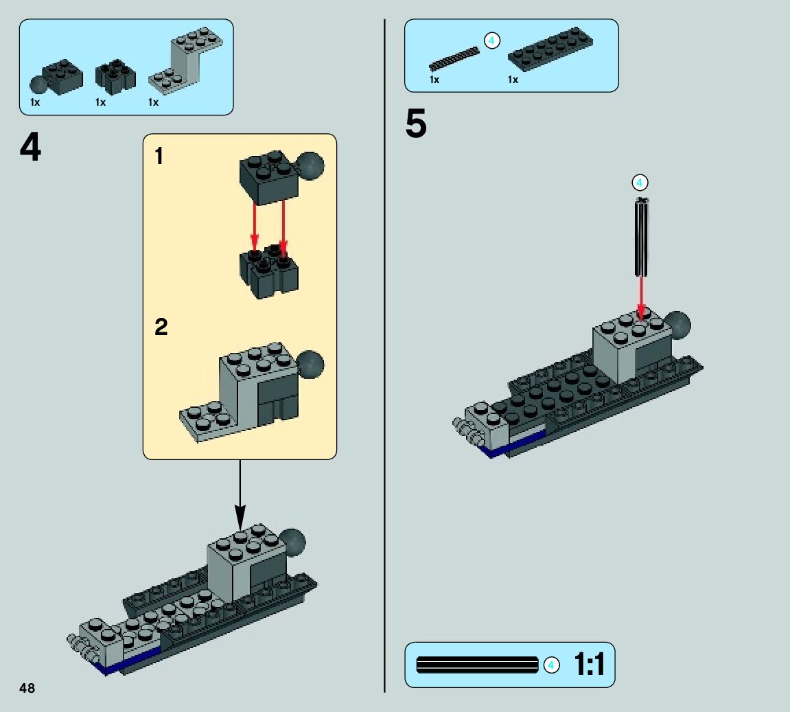 The assembly guide is prepared in a very understandable way for children and adult LEGO enthusiasts. A total of 72 picture galleries are shown, explaining the step-by-step construction stages for 1 different structures.